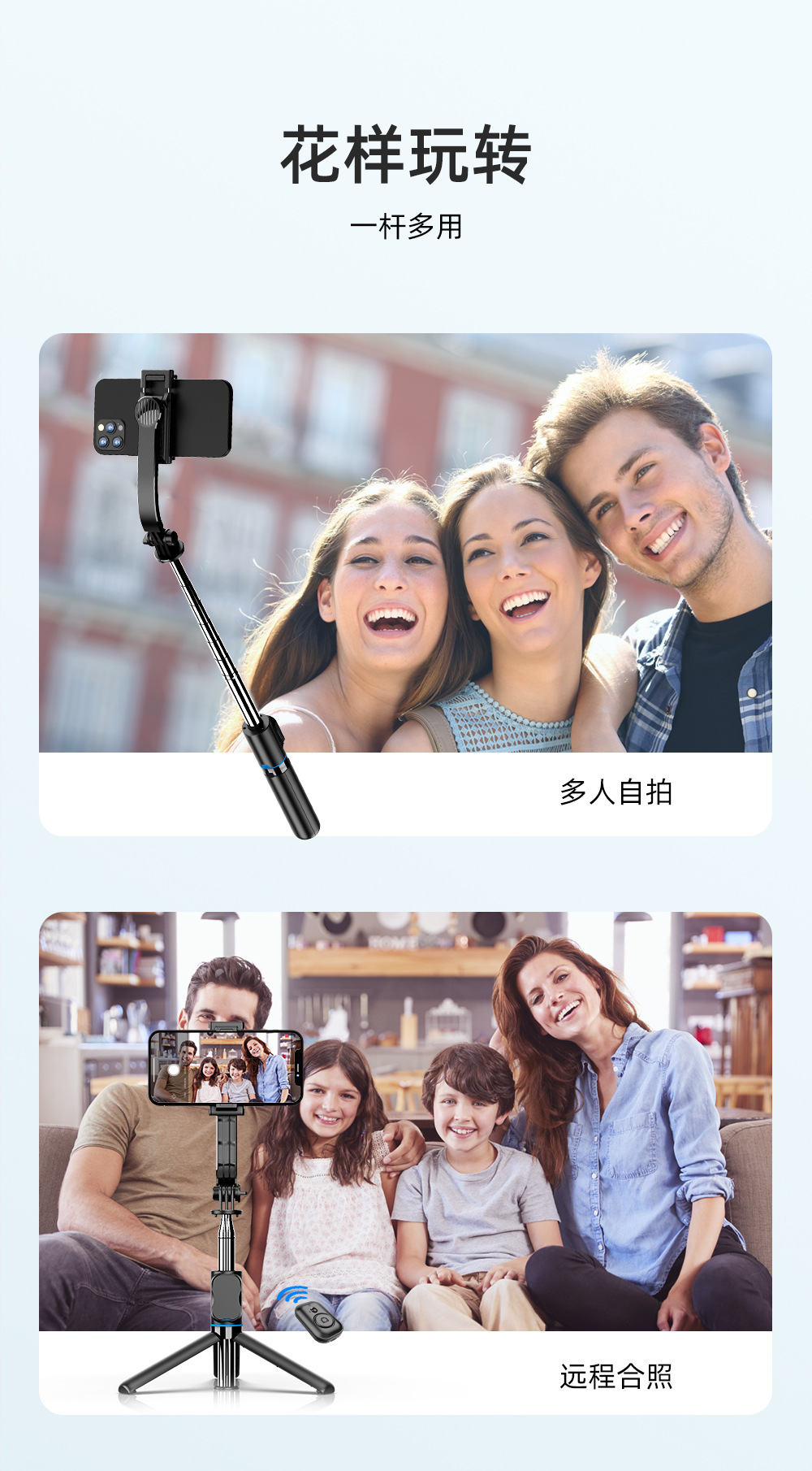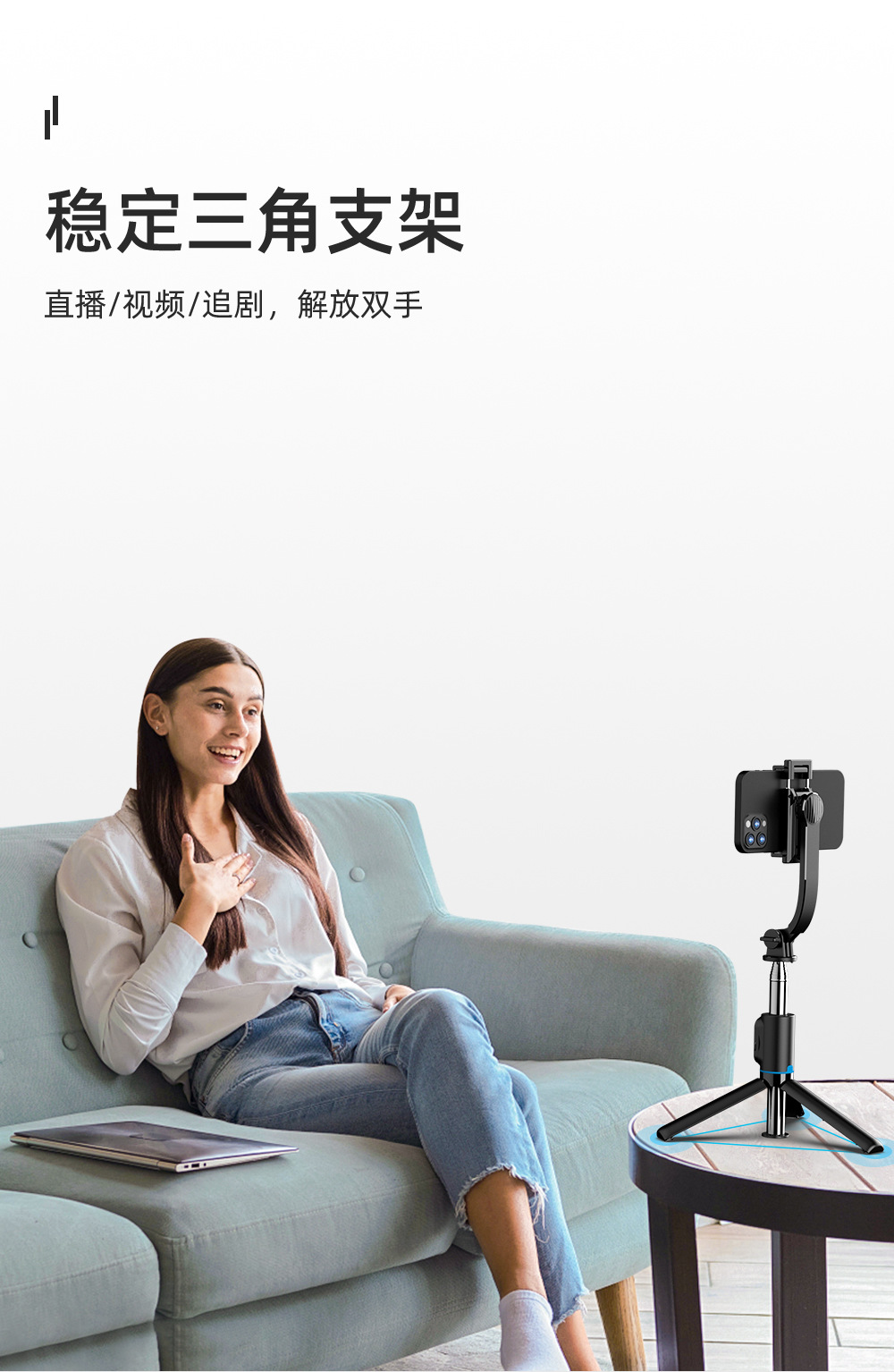 TOKQI 手機自拍桿 C01可拆卸桌面支架多功能藍牙自拍神器直播支架