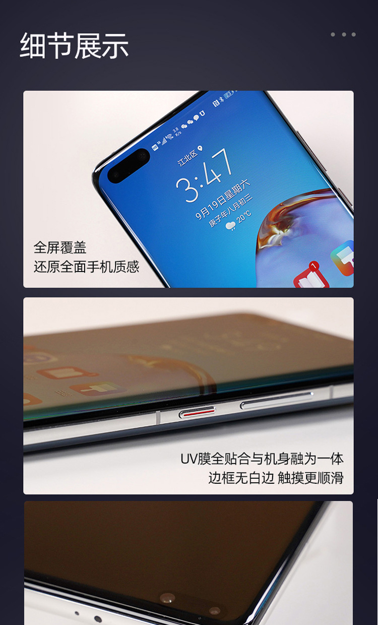適用華爲鋼化膜Mate60/50曲面UV全膠手機貼膜P70/30Pro爽滑高清膜