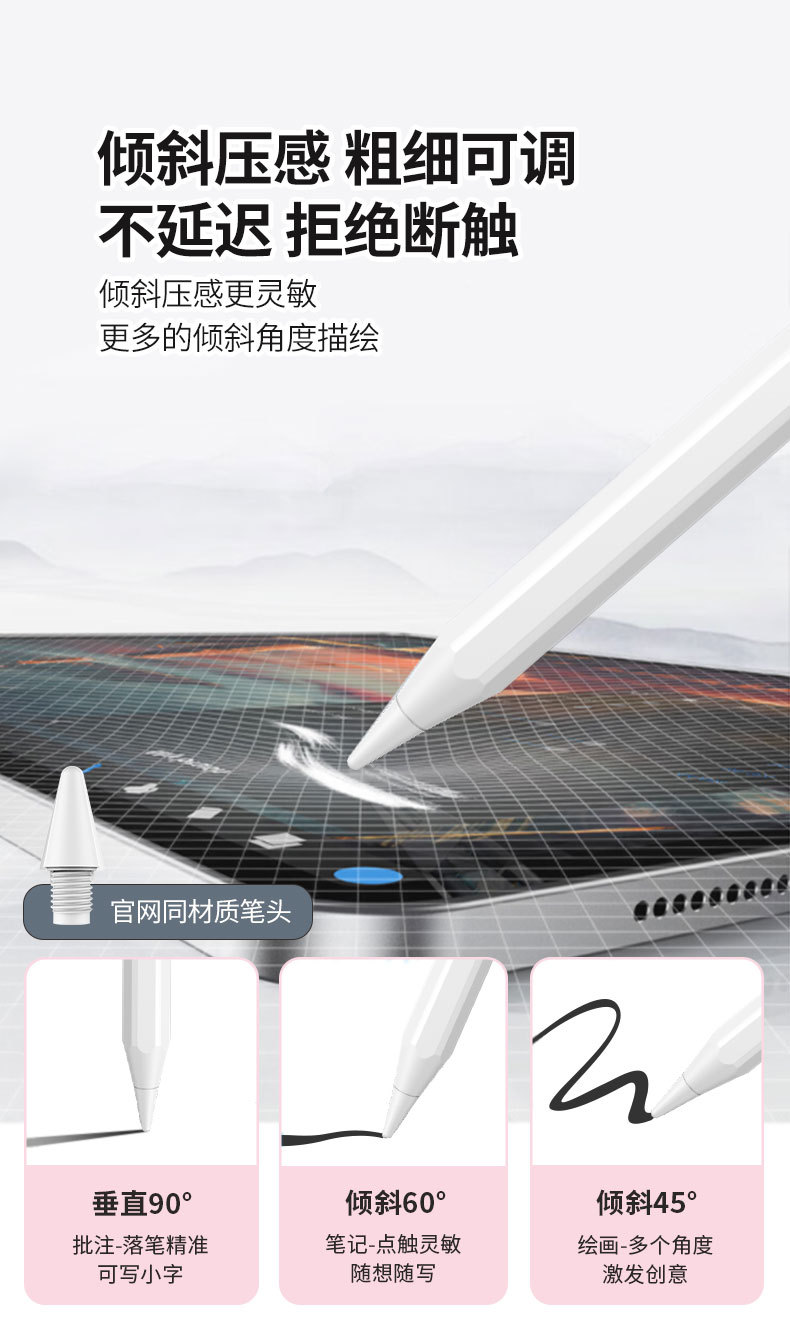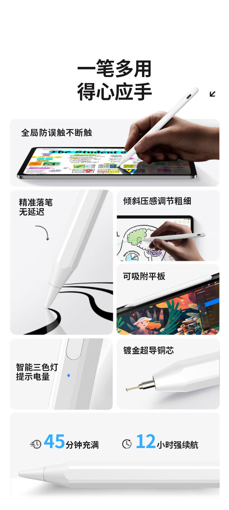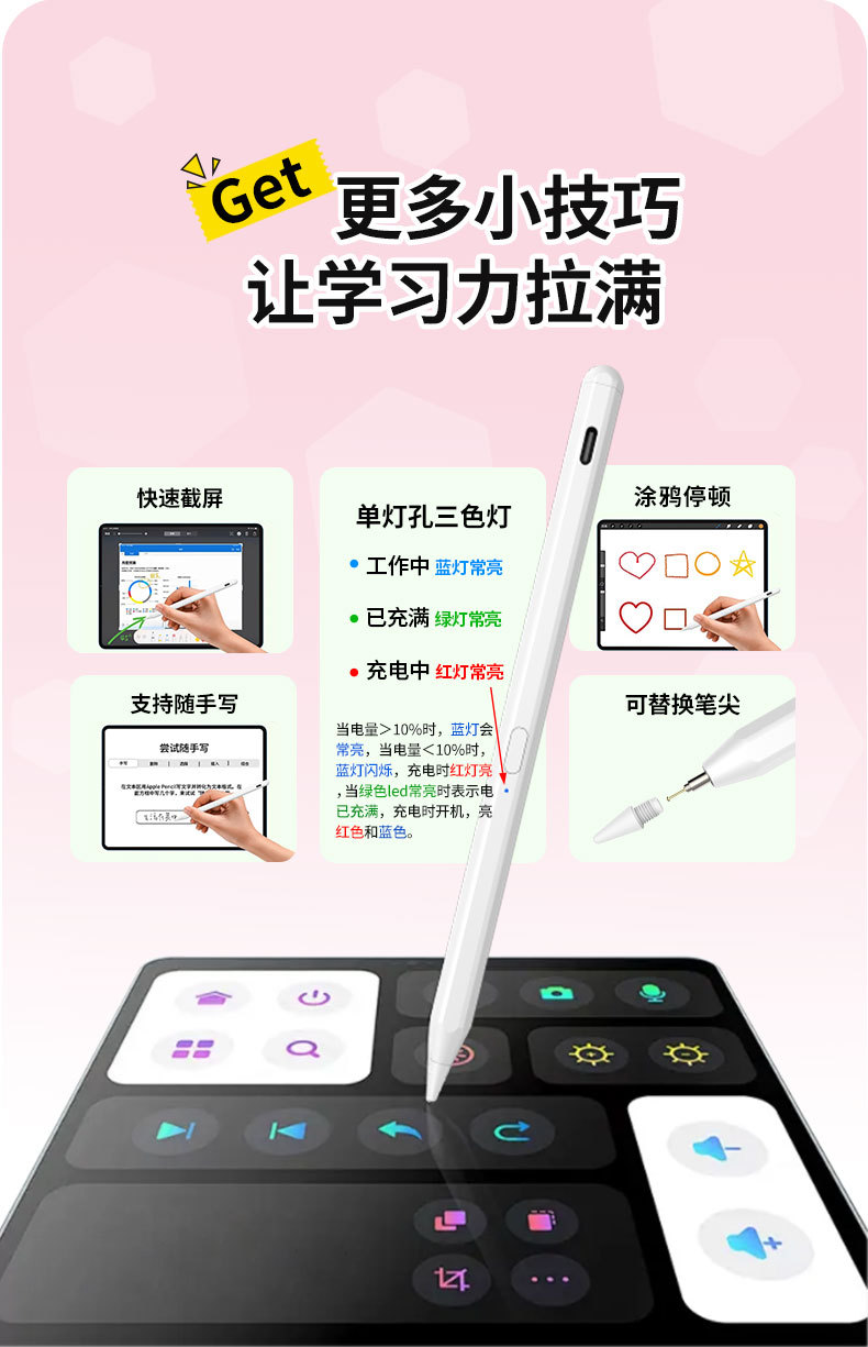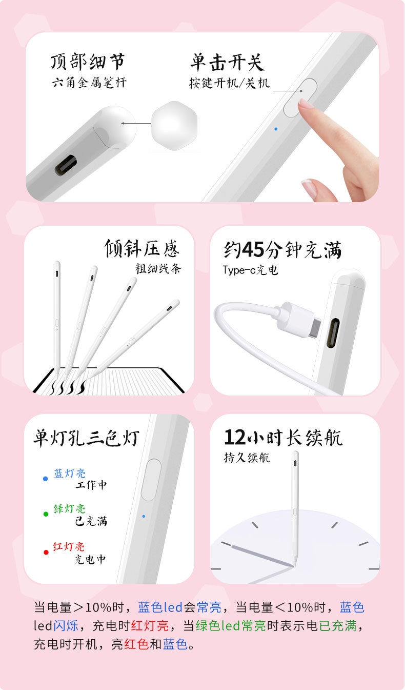 ipadpencil六角桿側按鍵開關適用蘋果手寫筆觸控螢幕筆iPadA16兼容