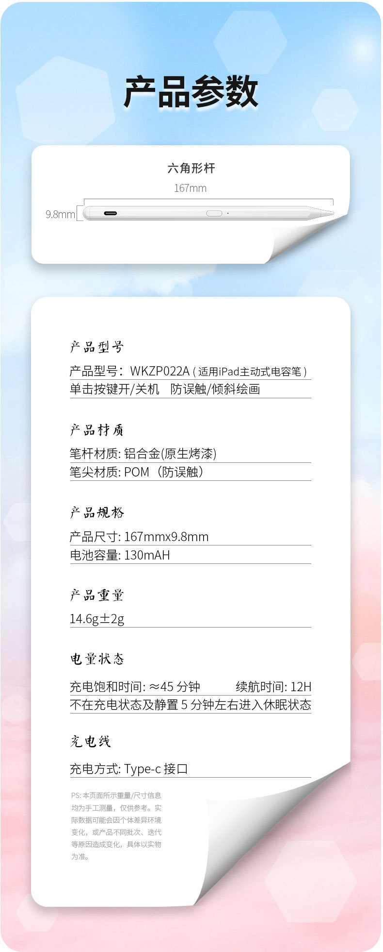 | 顔色 | 六角桿側按鍵開關/Type-c充電/吸附/防誤觸專用蘋果筆白 |