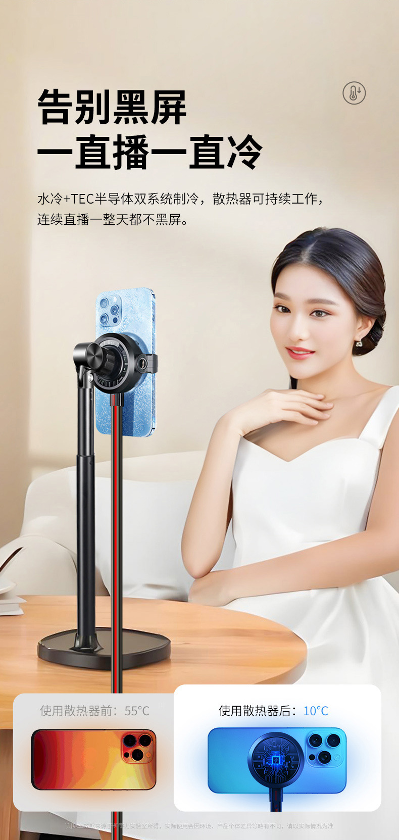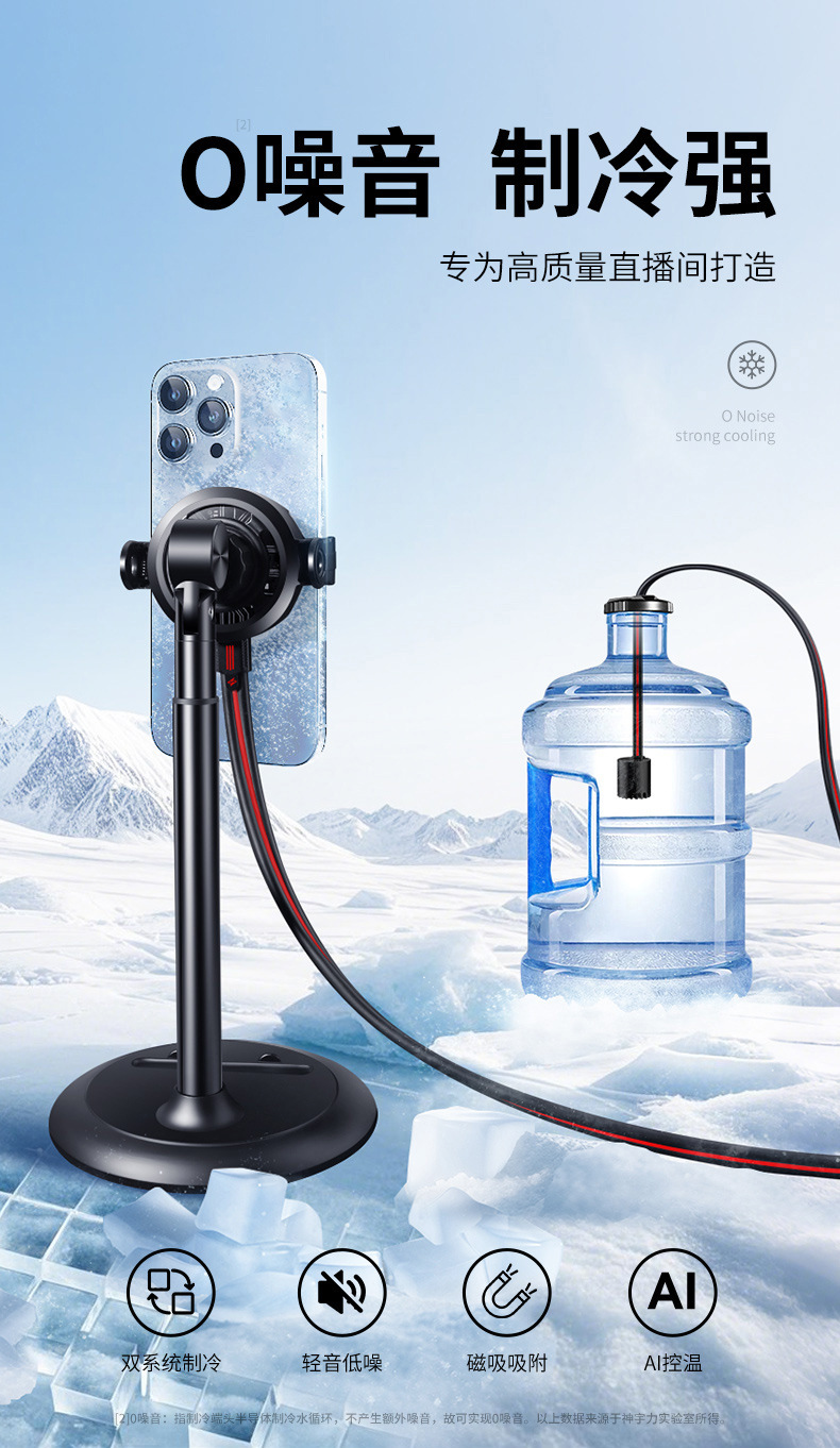 神宇力手機水冷散熱器直播支架一體靜音半導體製冷片結冰款磁吸式