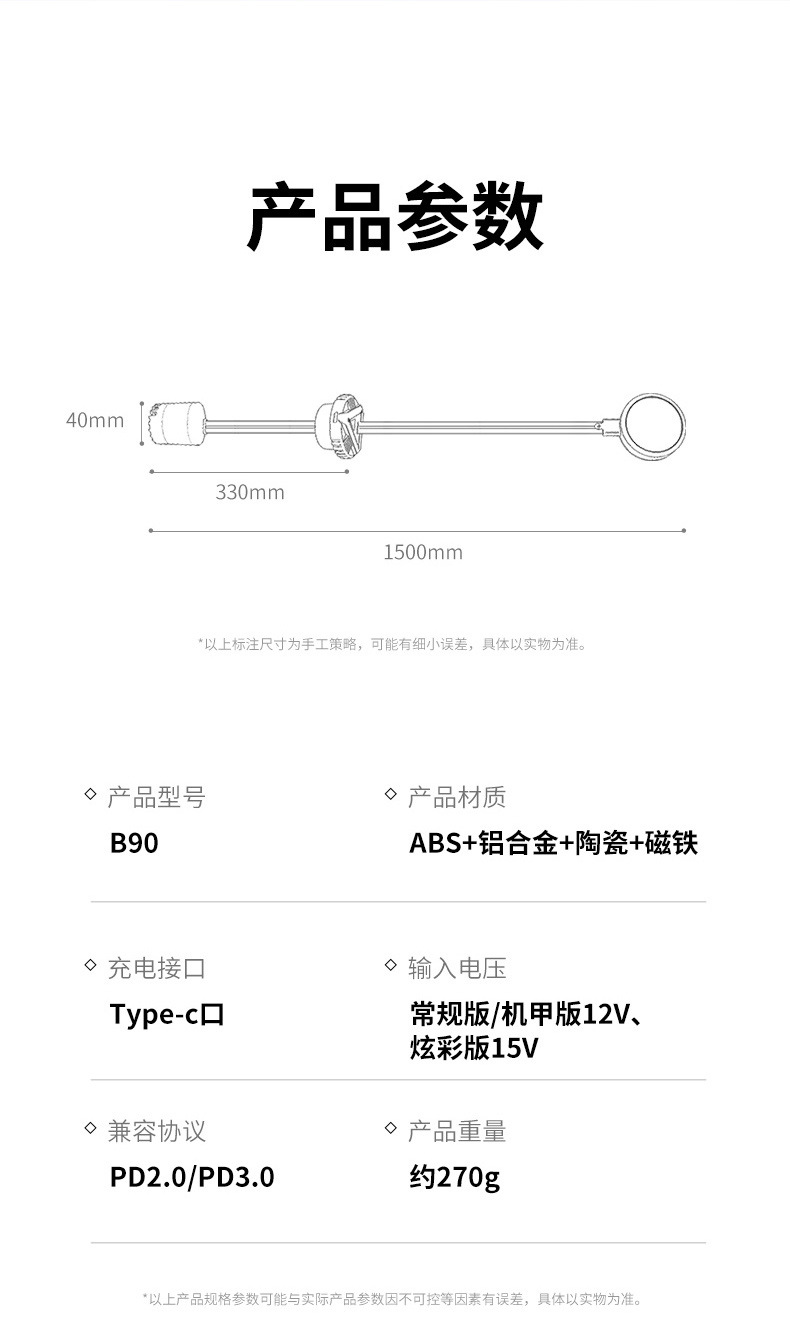 | 顔色 | B90(55W炫彩款)+螺絲夾+65W氮化鎵充電頭+18L水桶 |