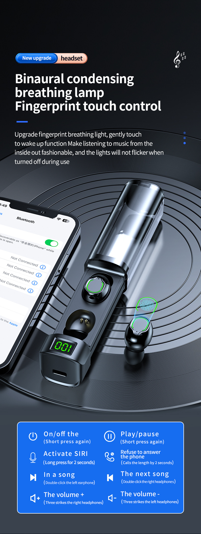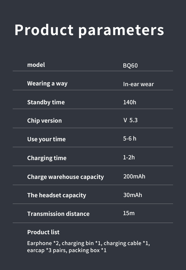 BQ60無線藍牙耳機抽拉倉數顯透明殼入耳式透明殼觸控運動可攜式