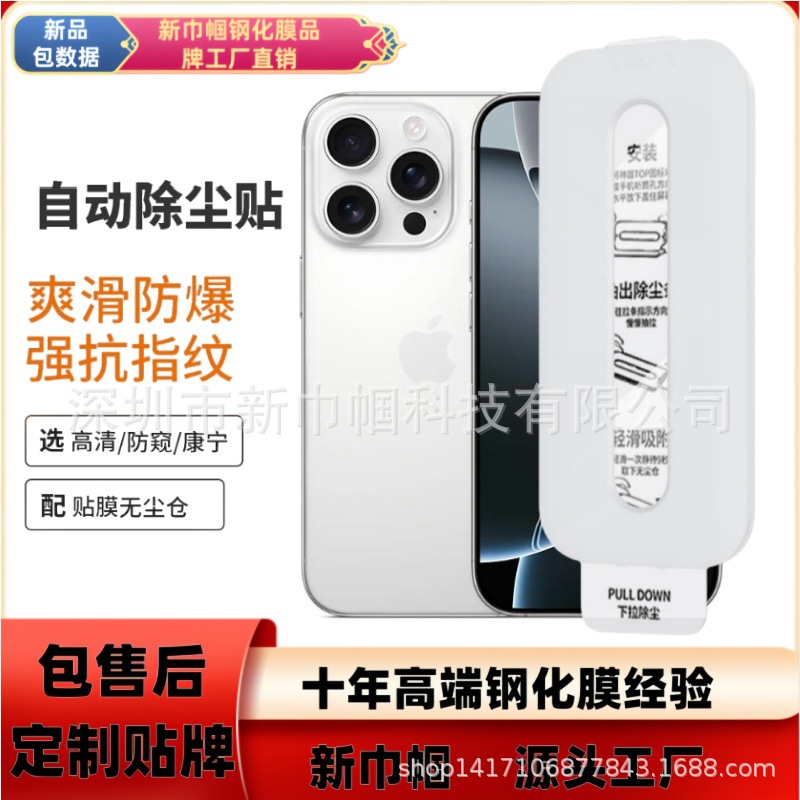 適用蘋果17promax高鋁電鍍無塵倉鋼化膜小白膜iPhone16pro防窺秒