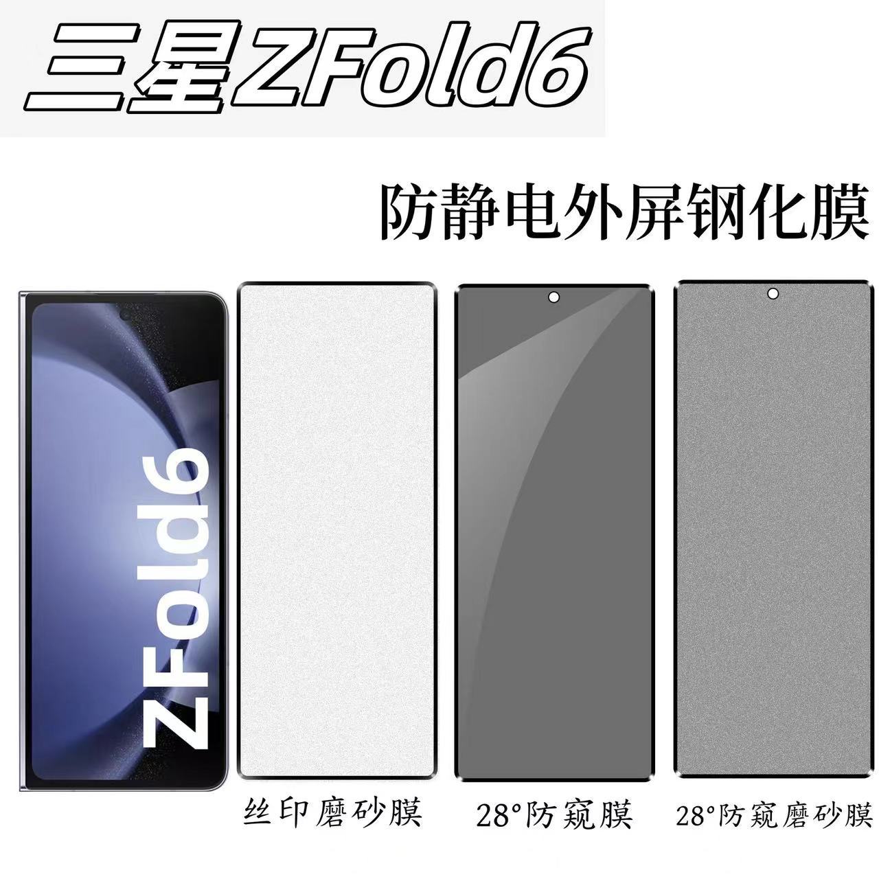 適用三星GalaxyZFold6外屏鋼化膜全屏電鍍高清防窺紫光螢幕保護膜
