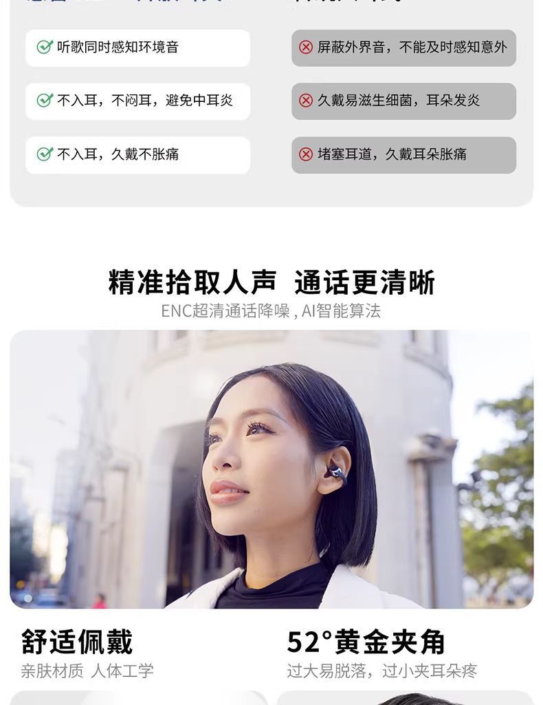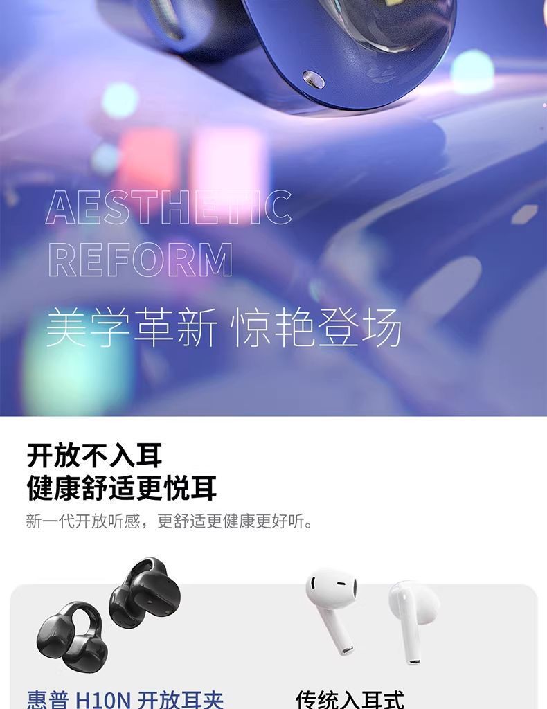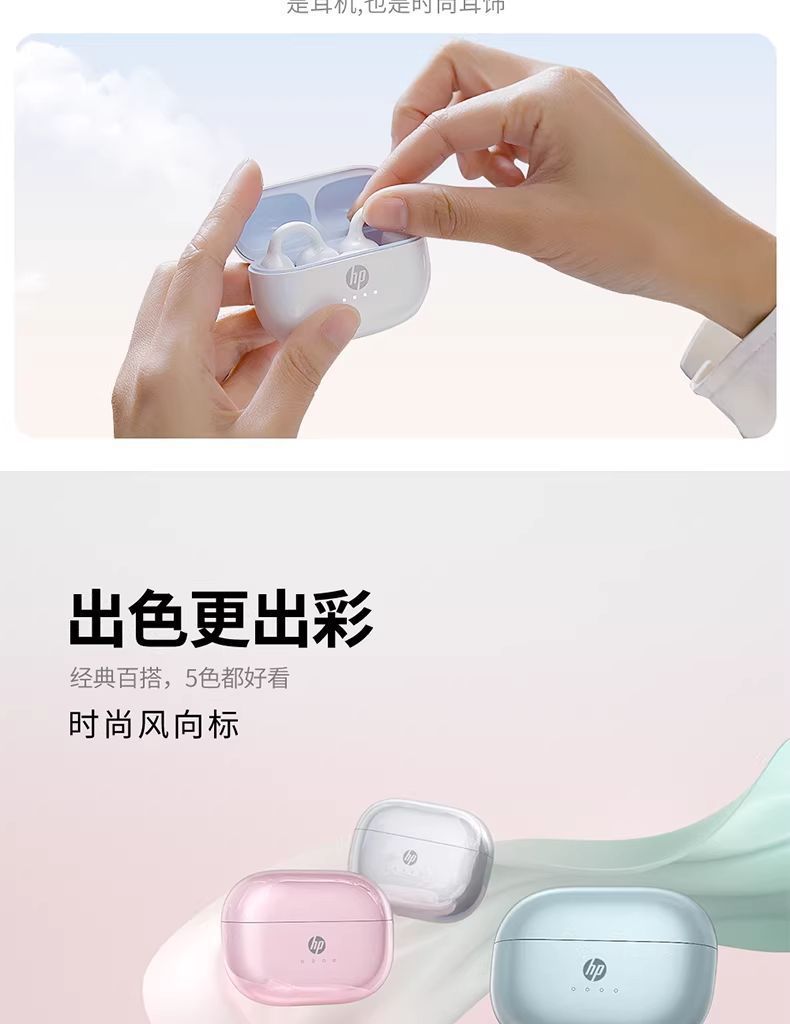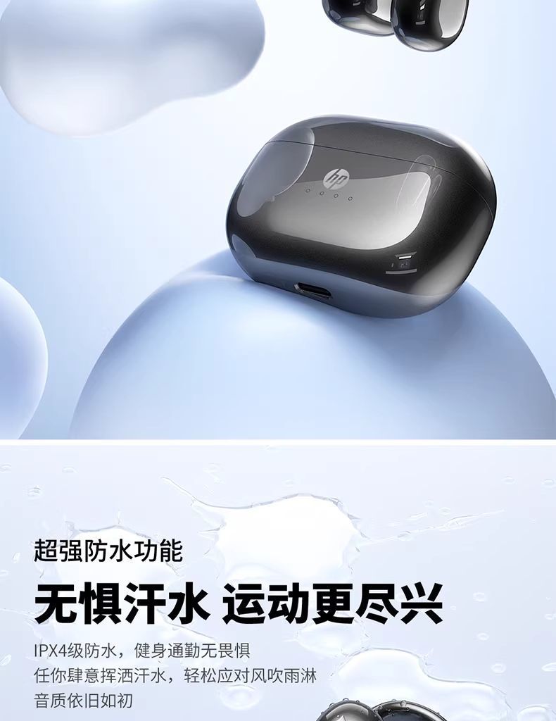 HP/惠普H10N夾耳式藍牙耳機超長續航久戴不痛降噪高音質運動耳機