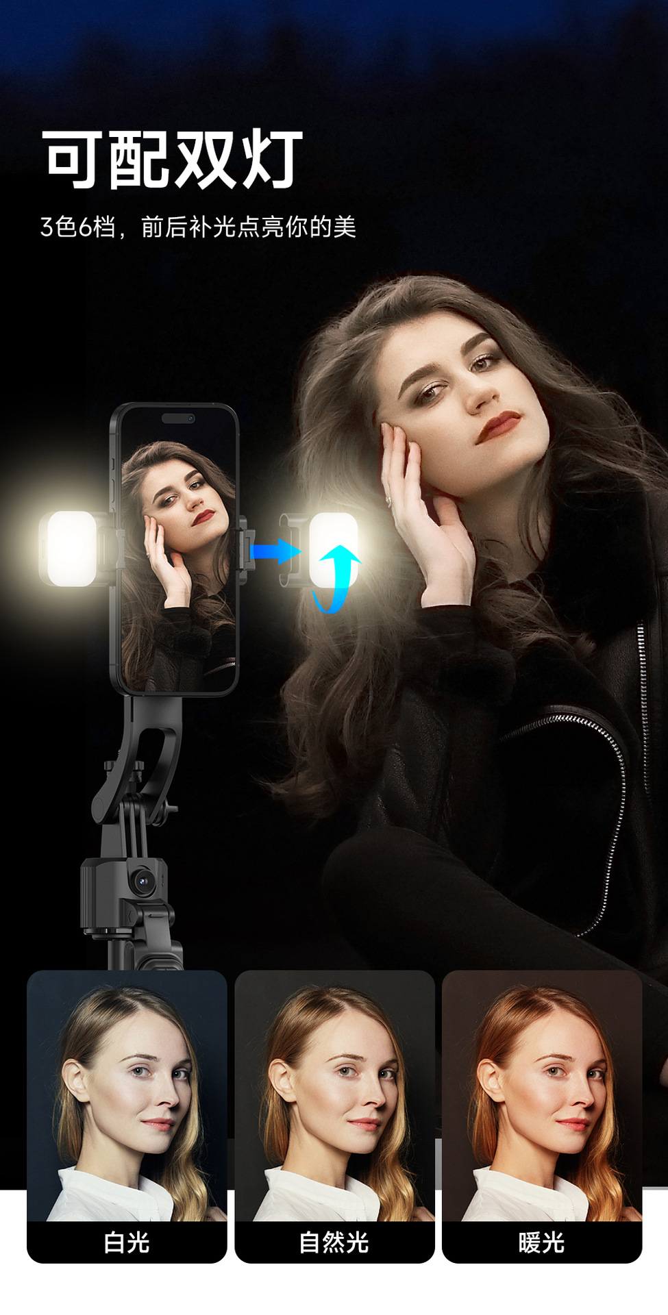 | 顔色 | C17【黑色雙燈版】1.6米鋁合金桿*AI智能人臉跟拍+抖音遙控器 |