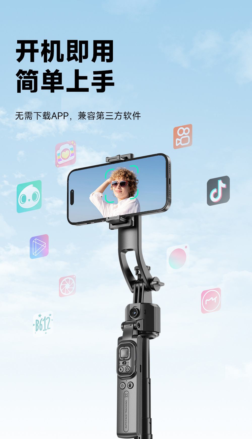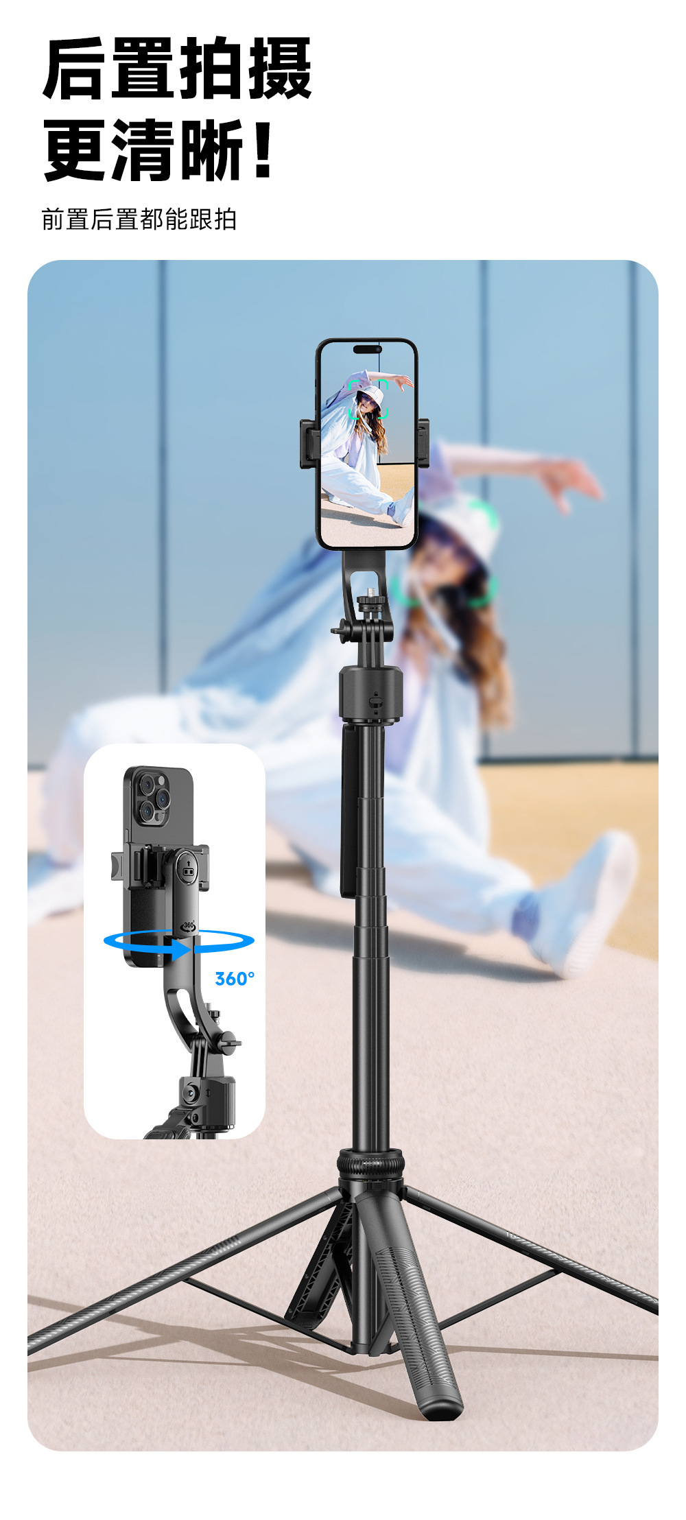 新款手機自拍桿智能AI跟拍防抖雲台四腳架全自動拍照神器竪拍