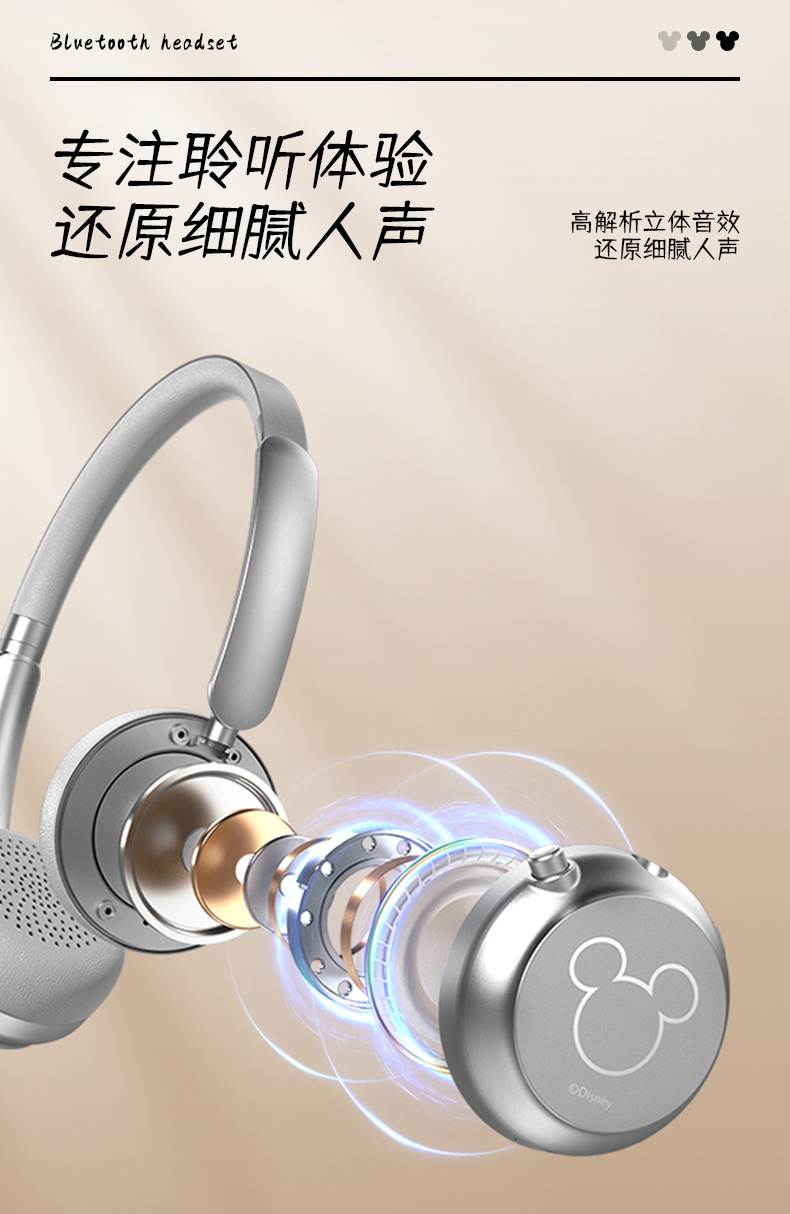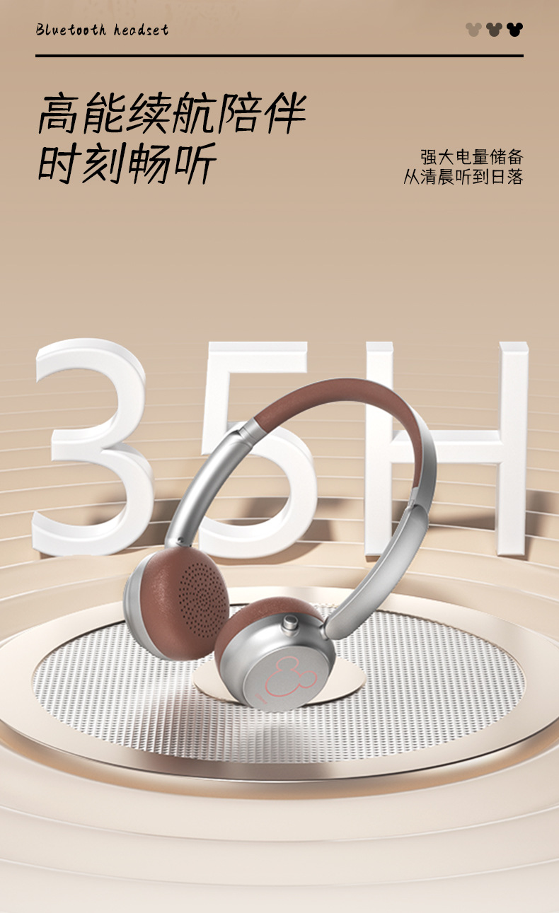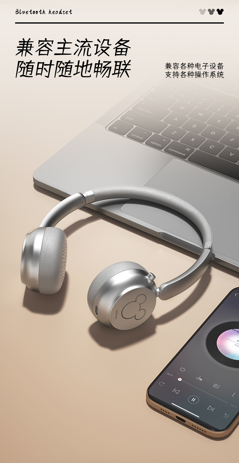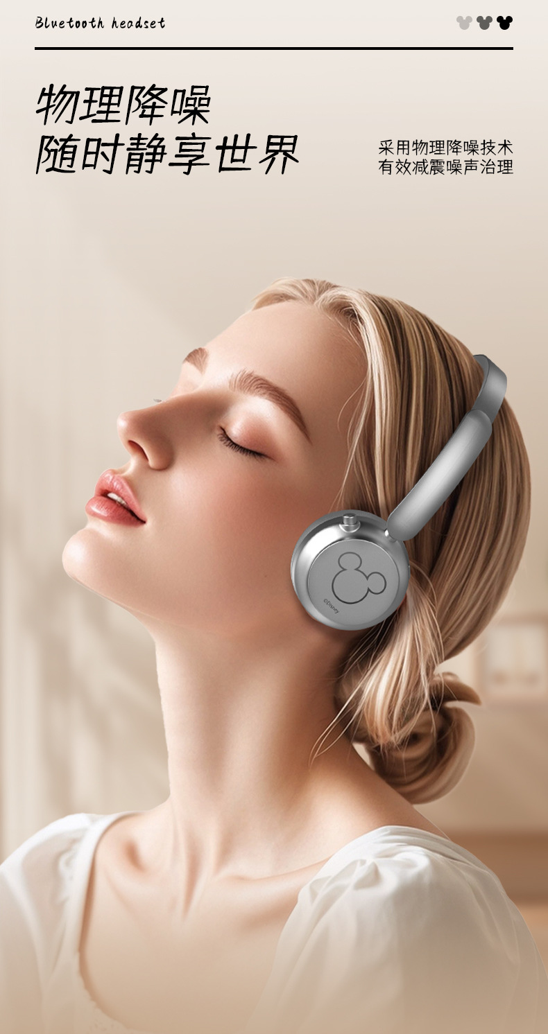 新款頭戴式耳機無線藍牙續航超長立體雙聲道米奇藍牙降噪耳機