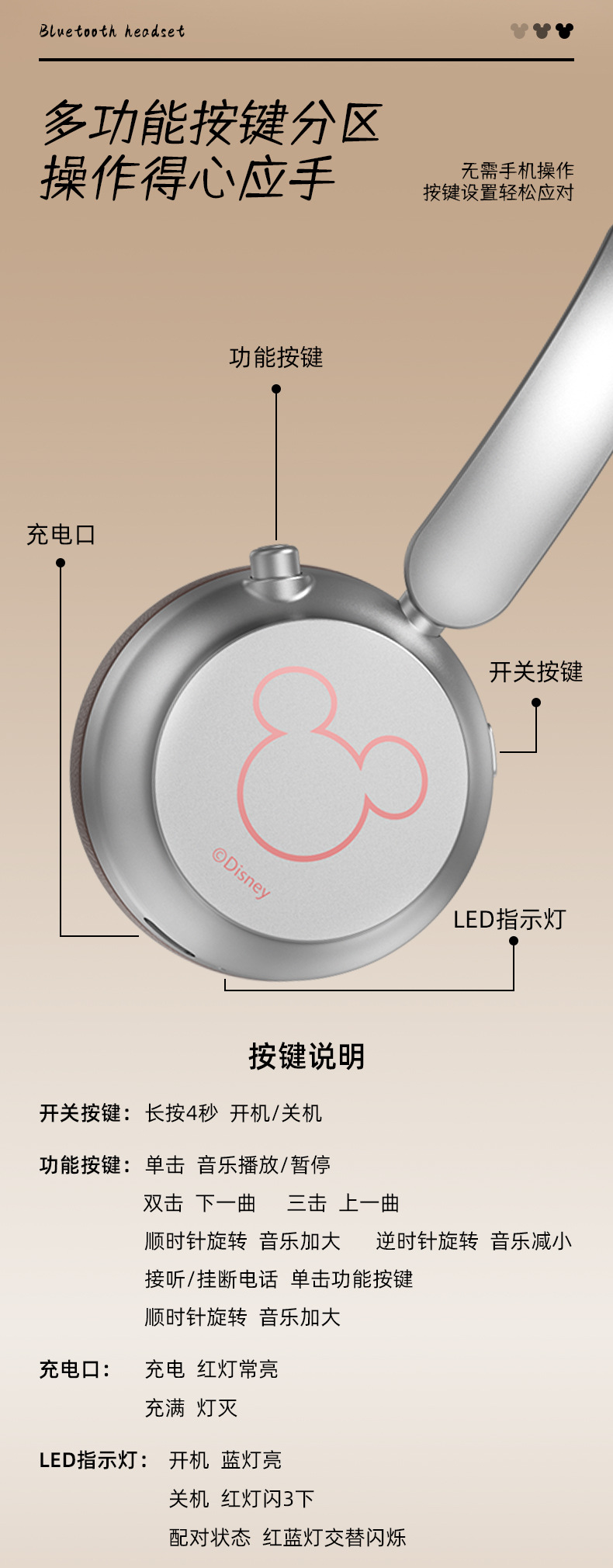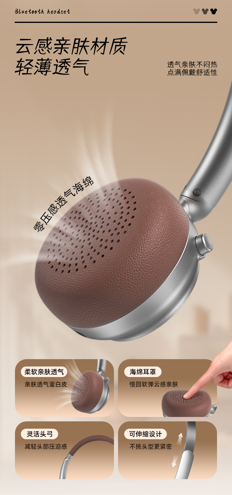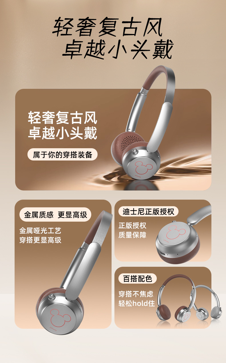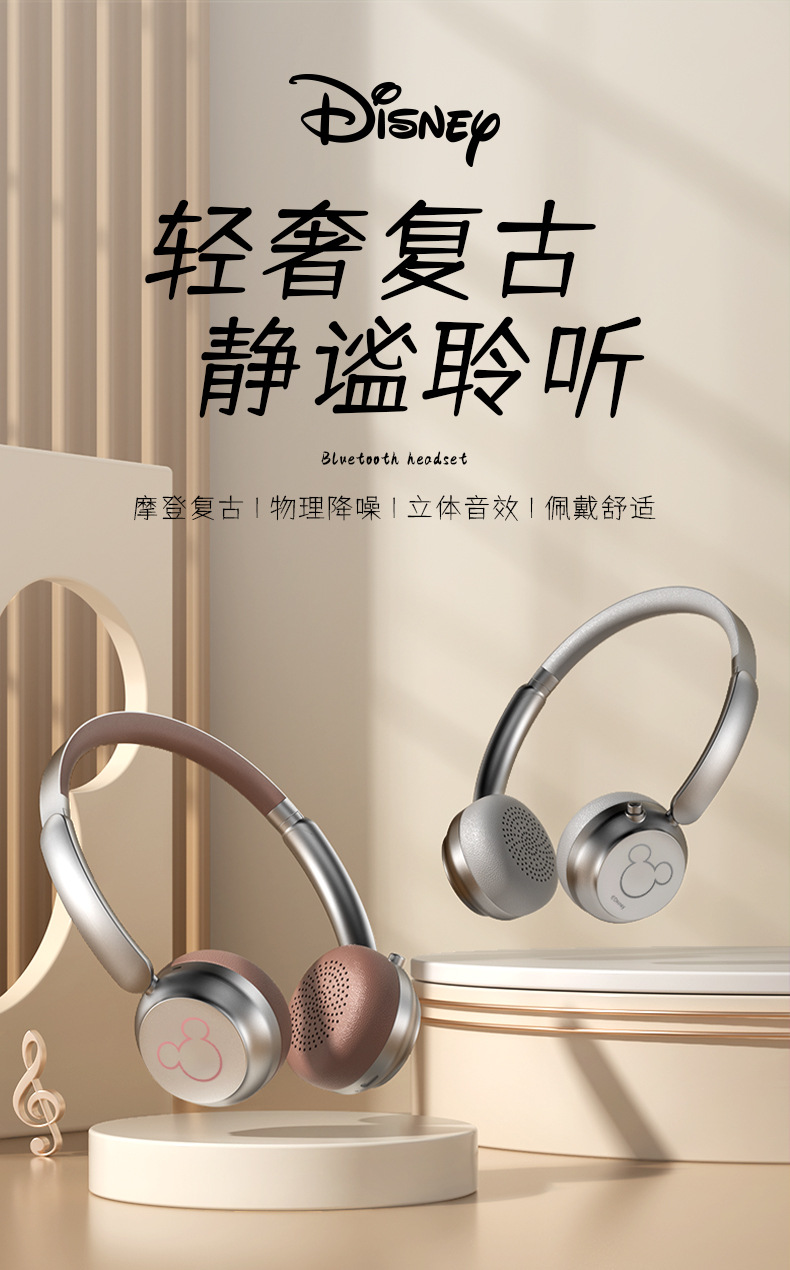新款頭戴式耳機無線藍牙續航超長立體雙聲道米奇藍牙降噪耳機