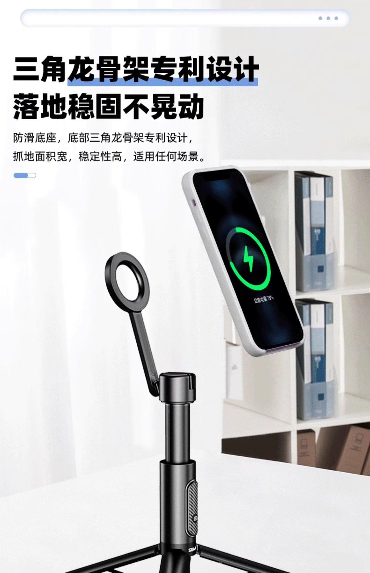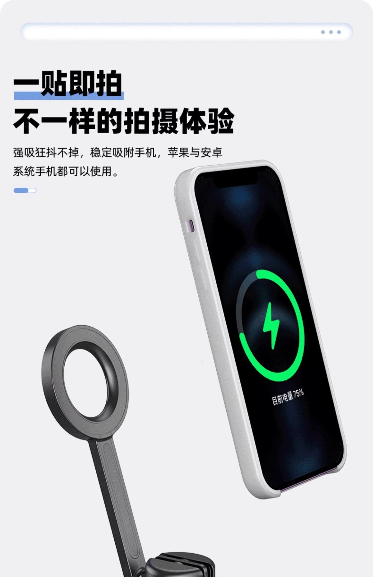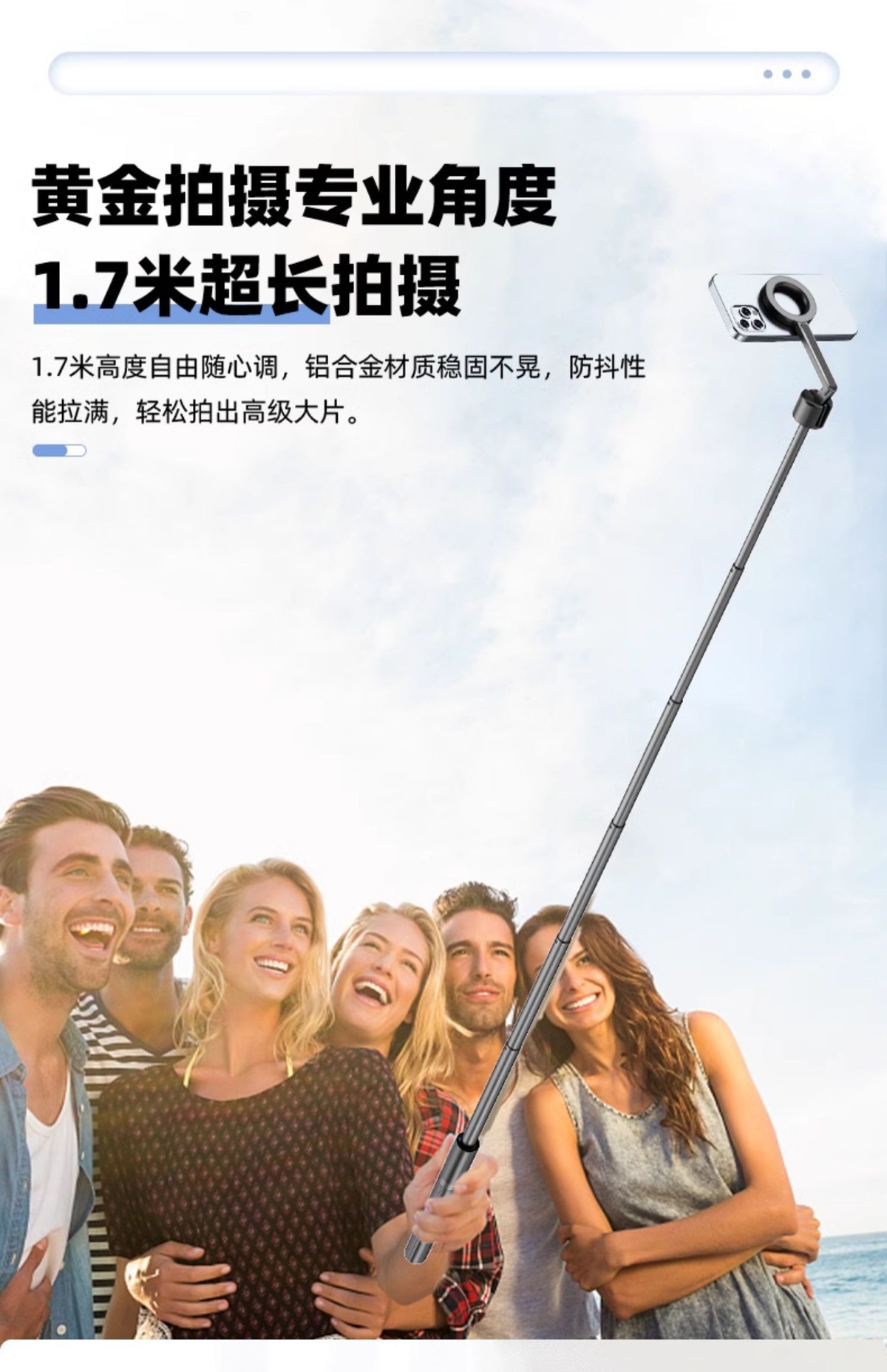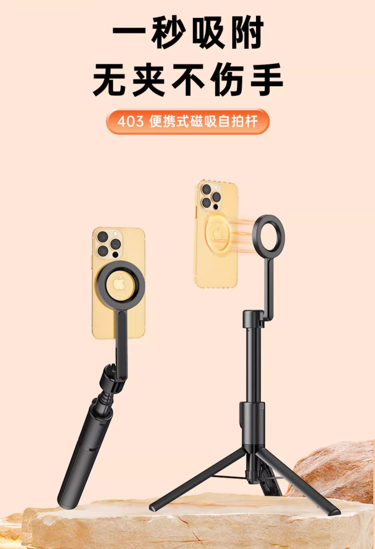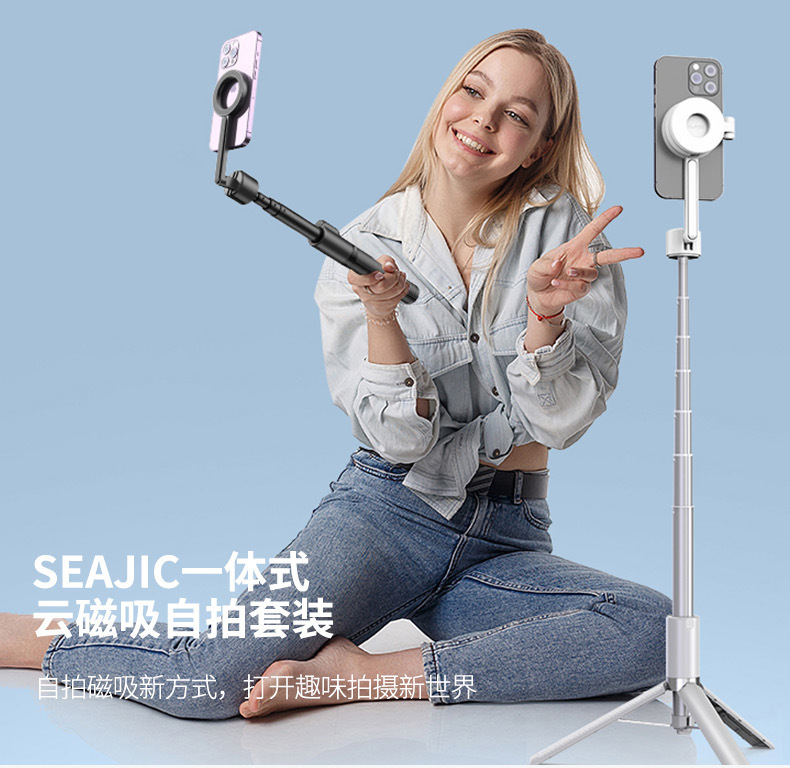 新款磁吸款合金自拍桿一貼即拍無夾手Magsafe磁吸自拍桿三腳架
