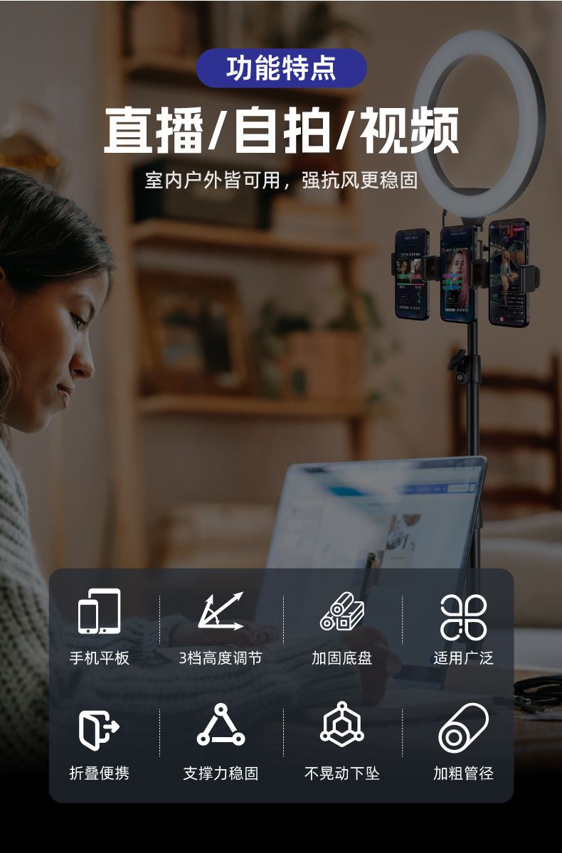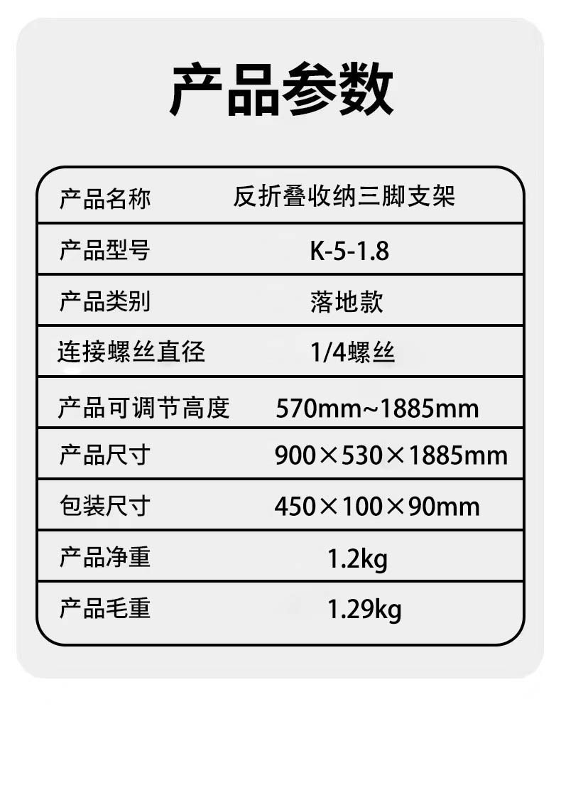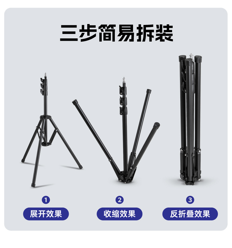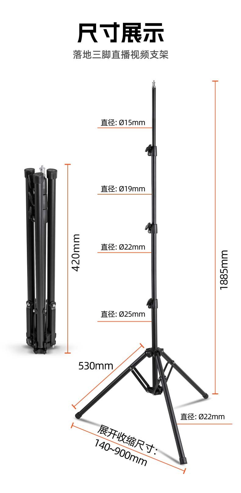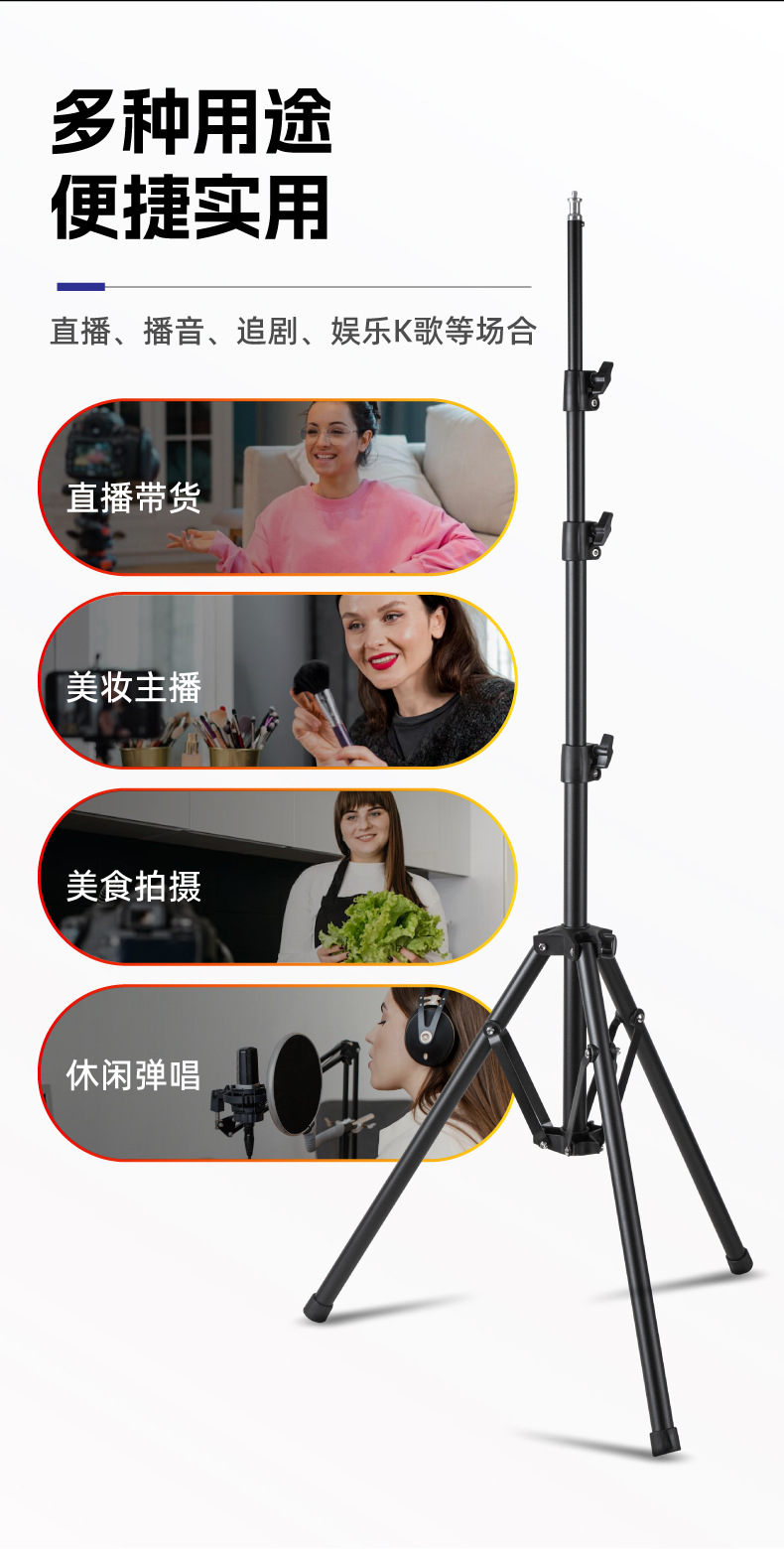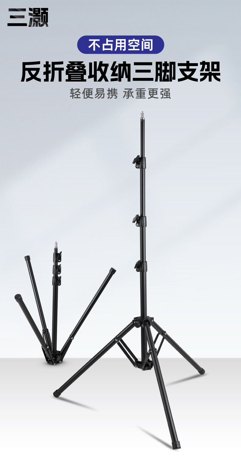 落地支架戶外三檔高度可調節拍攝直播k歌反折疊落地三腳支架