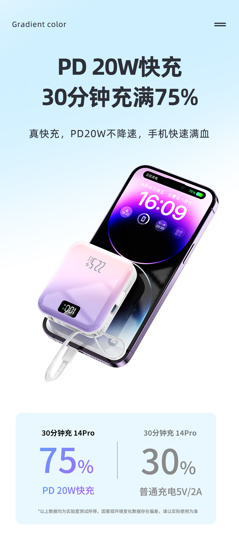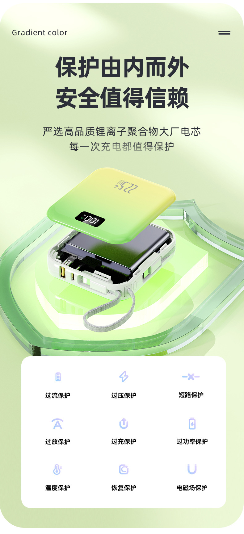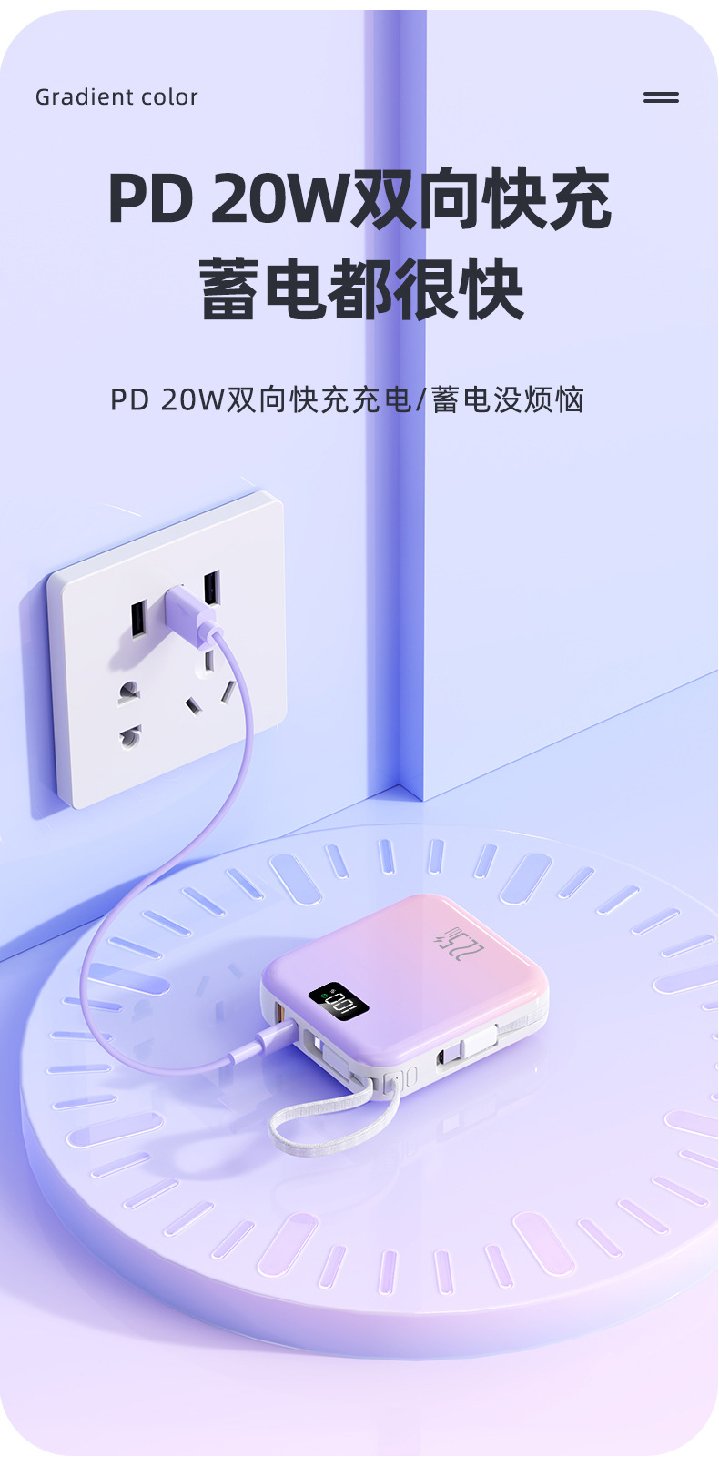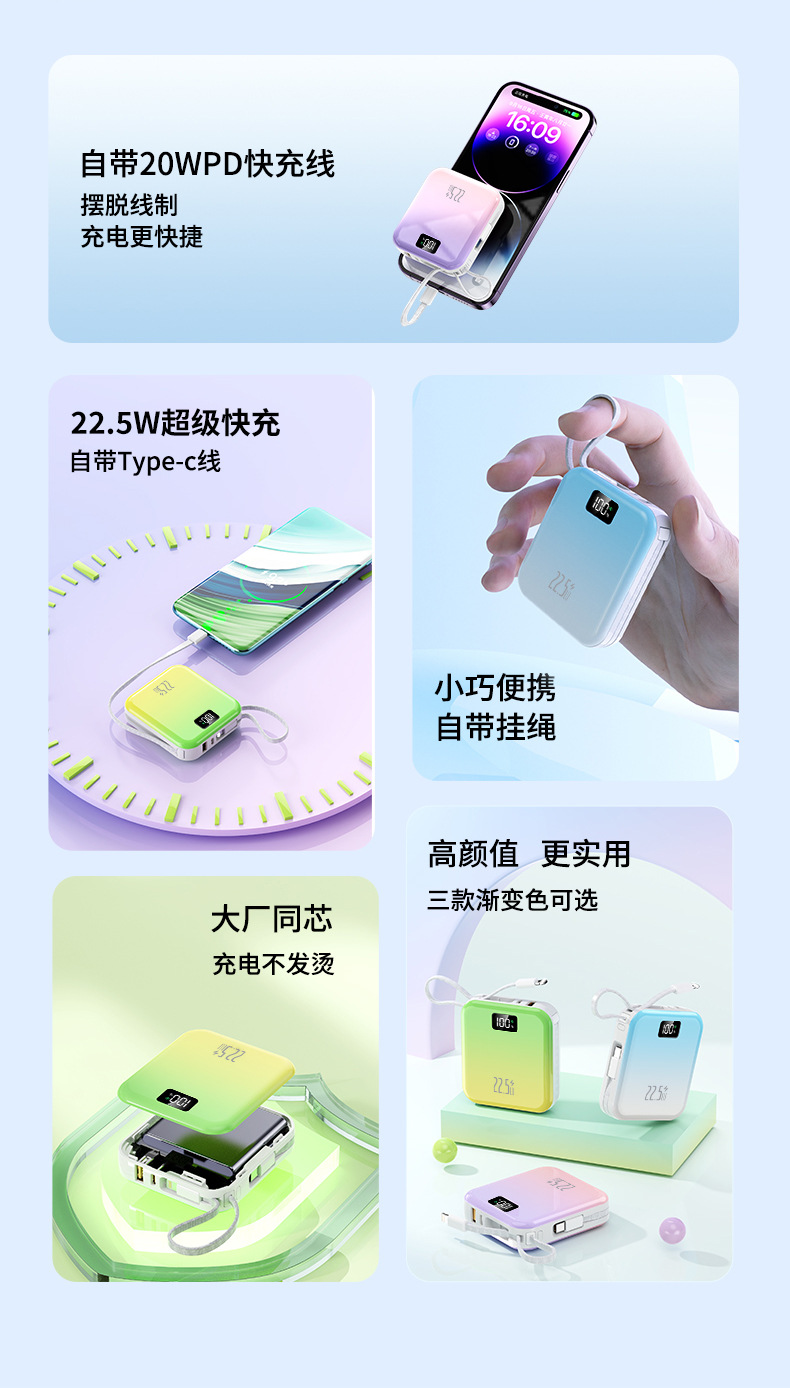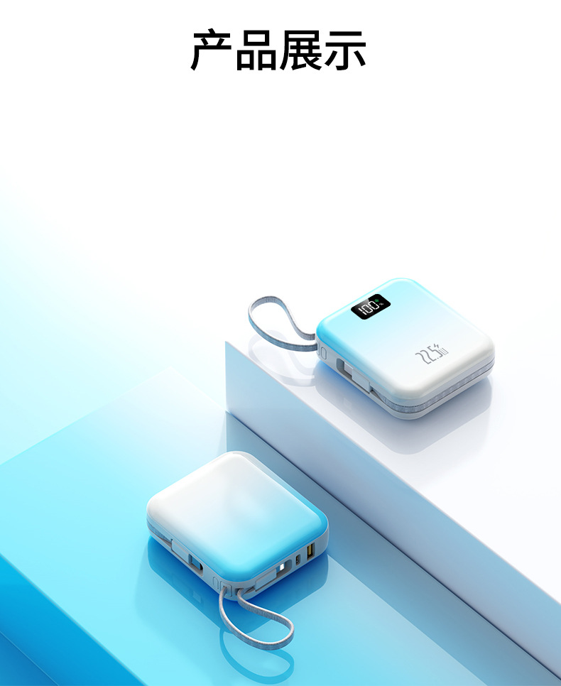 迷你可攜式超級快充3C國標認證行動電源自帶線3C行動電源起定