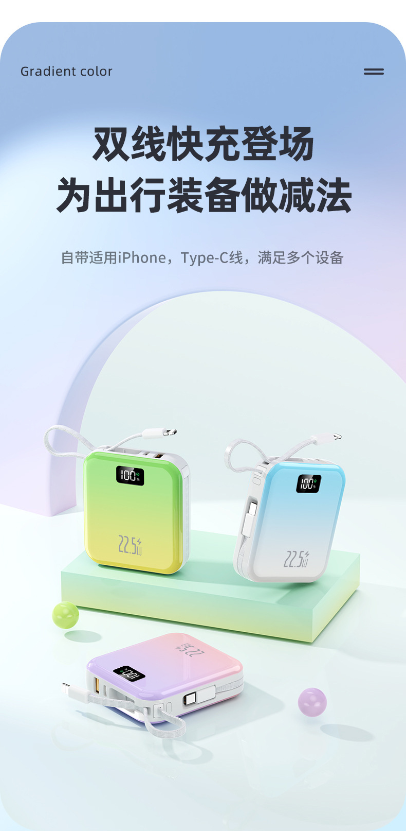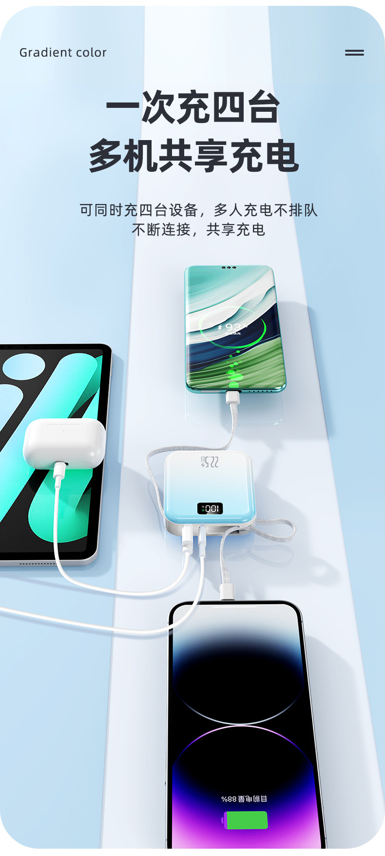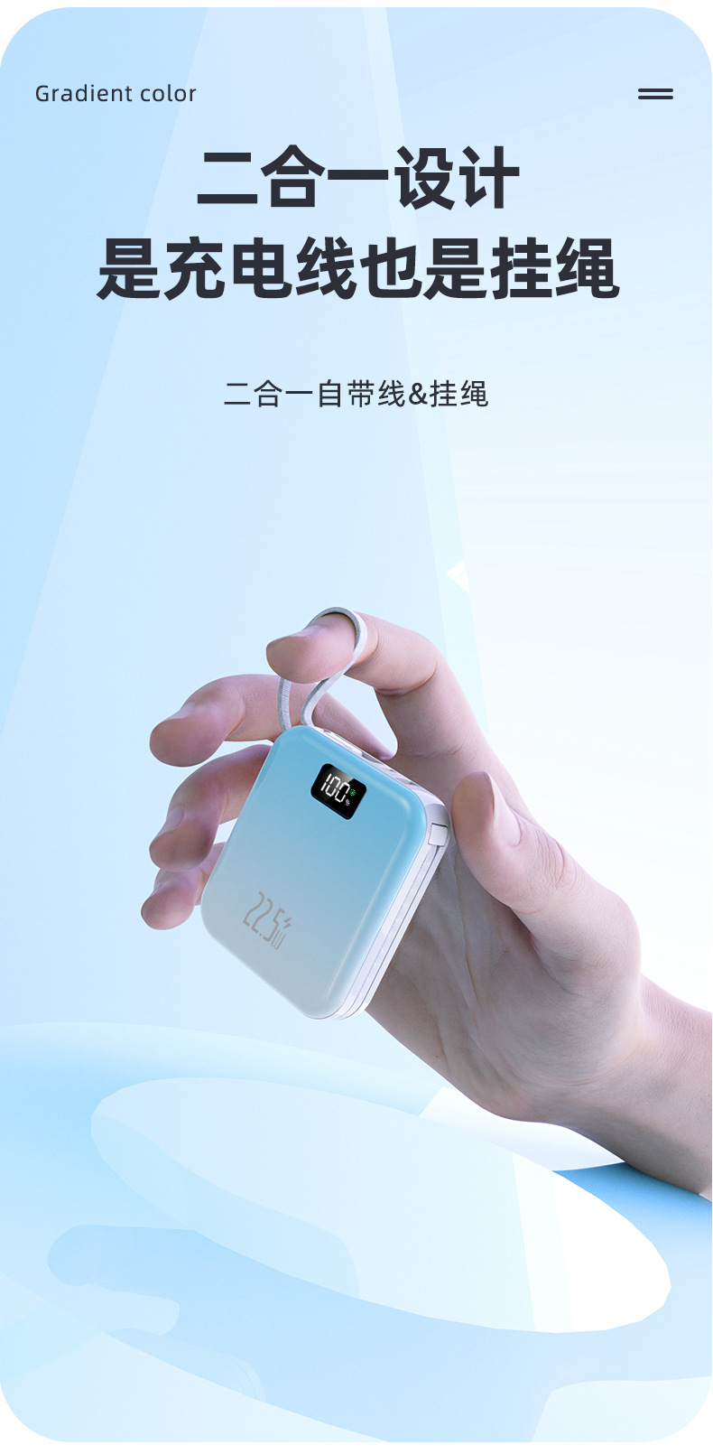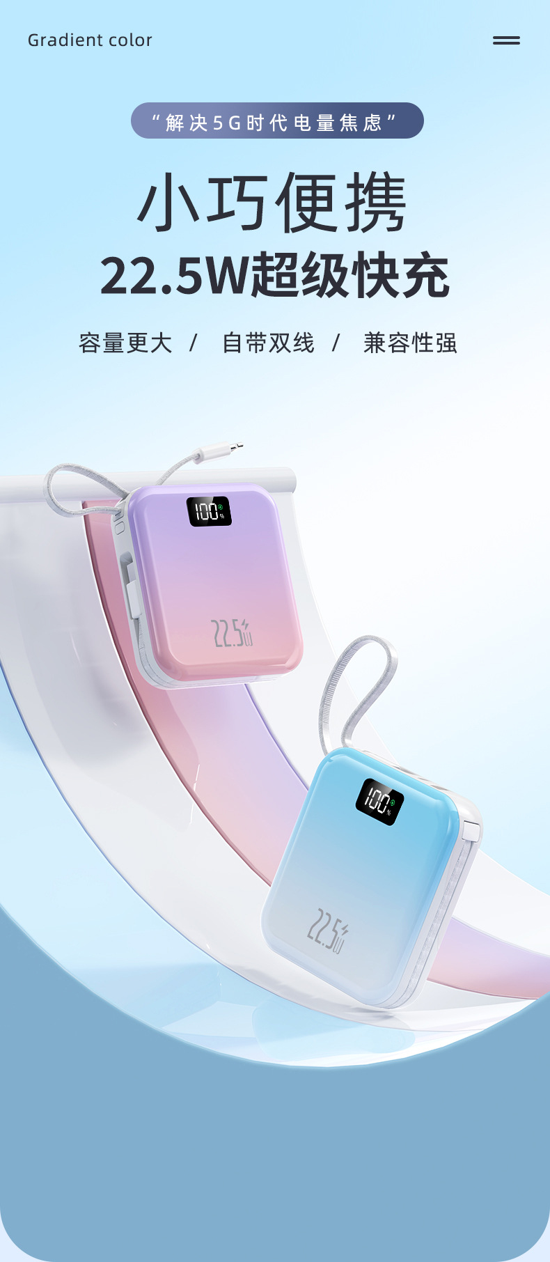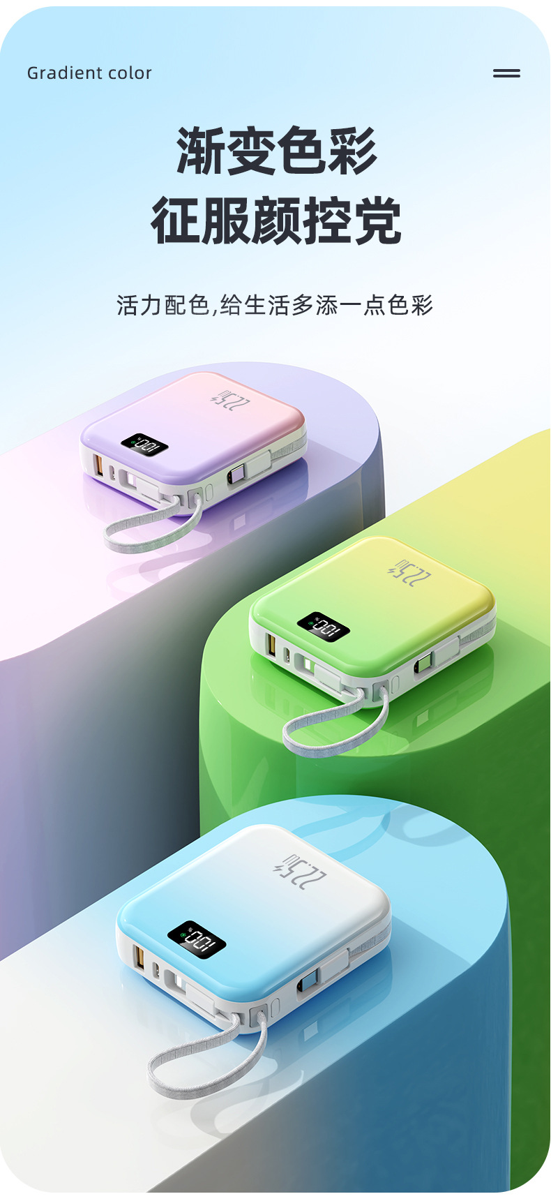 迷你可攜式超級快充3C國標認證行動電源自帶線3C行動電源起定