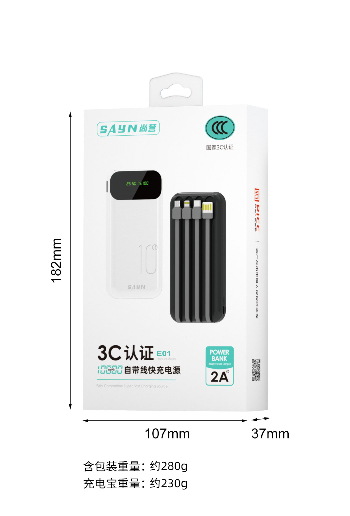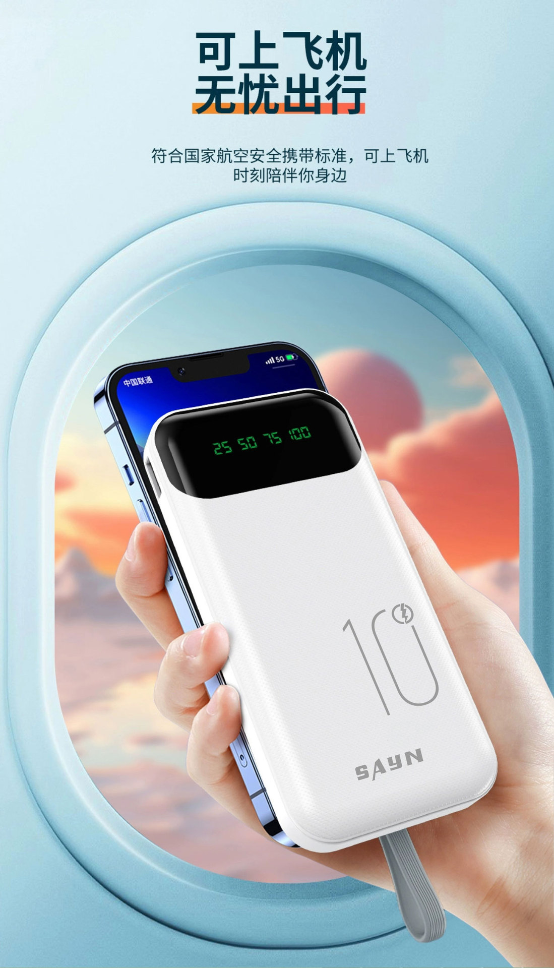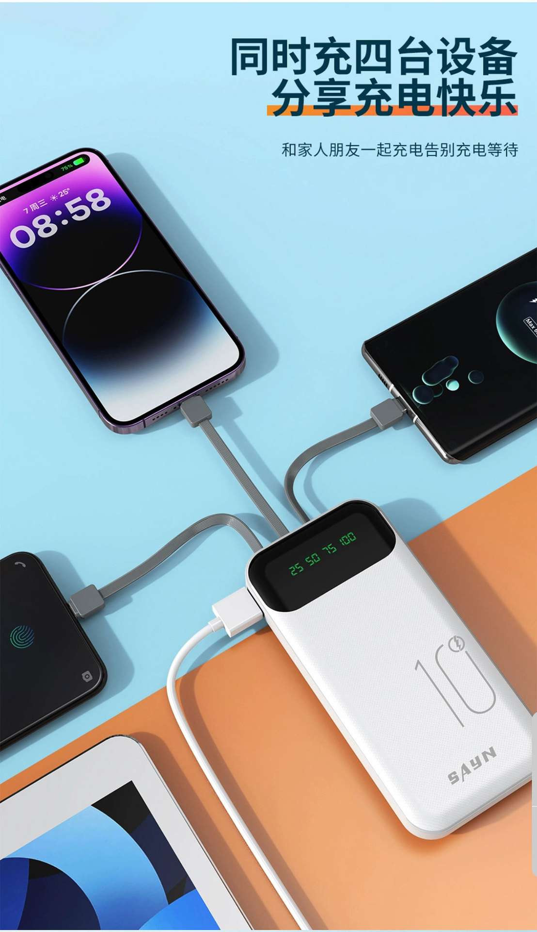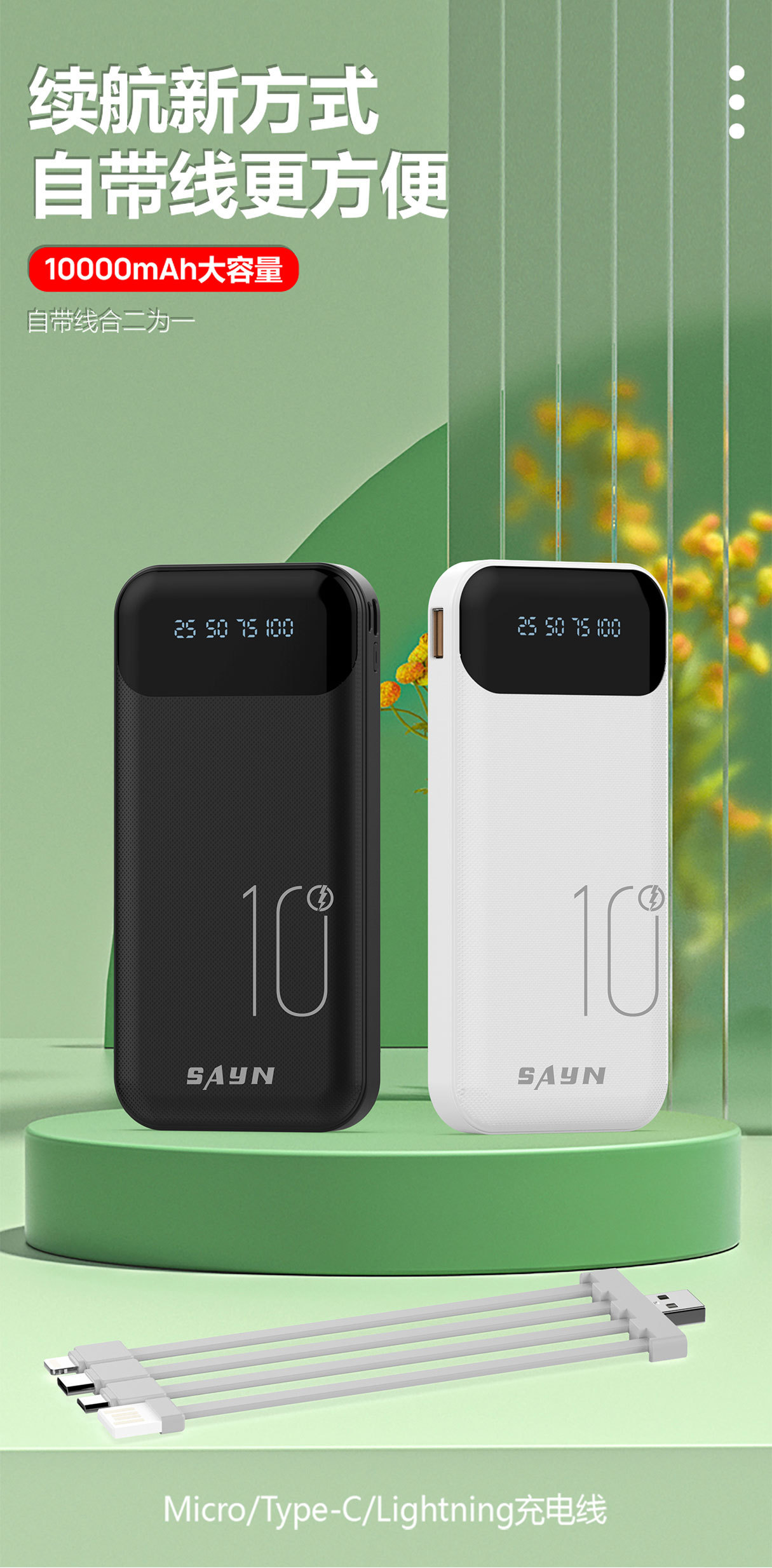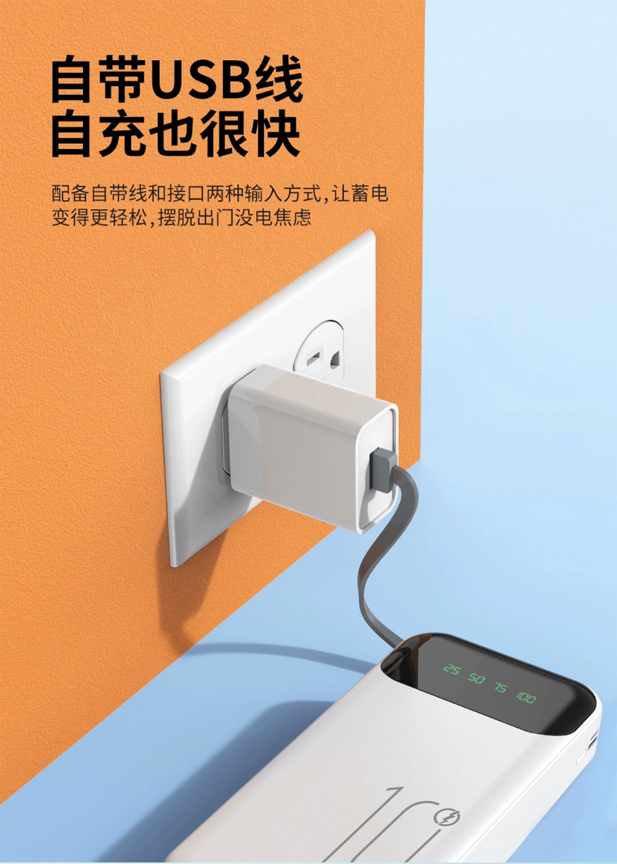 3C認證新品10000安培自帶4線 大容量數顯行動電源超級快充行動電源