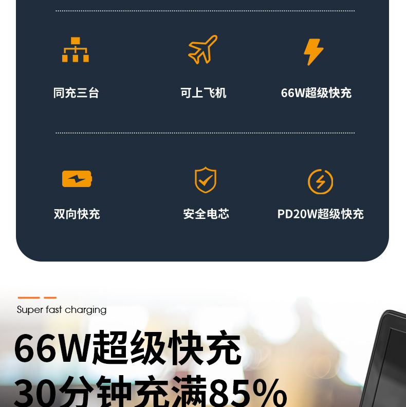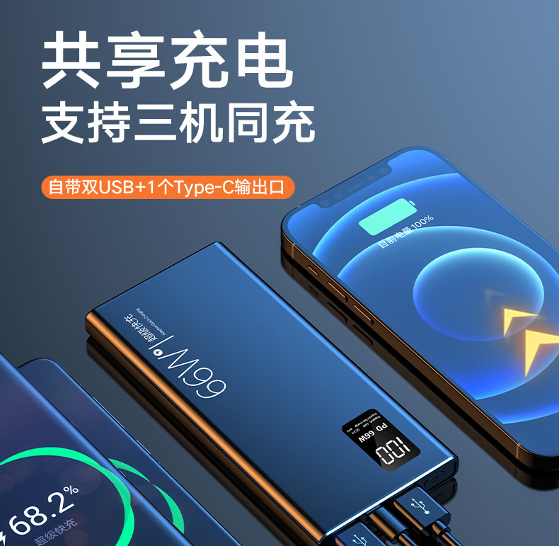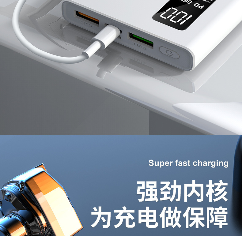 新款行動電源66W超級快充20000安培大容量小巧禮品行動電源K8