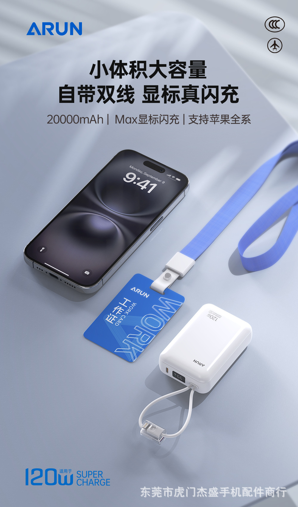海陸通S22迷你兩萬安培行動電源,小體積大容量,120w全兼容自帶雙線,超炫珠光防刮彩噴工藝,輕巧便捷超耐用。