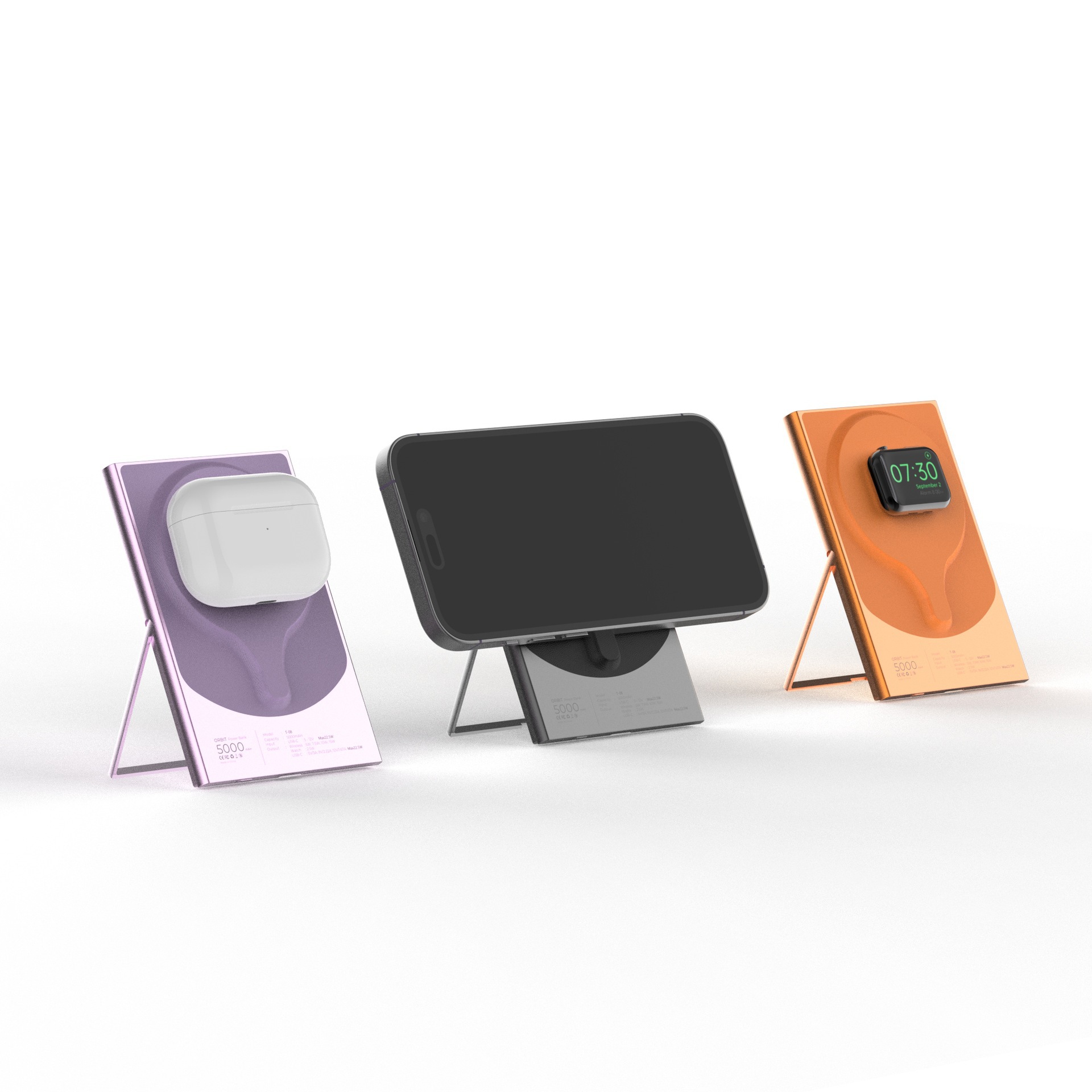 新款Magsafe磁吸無線行動電源超薄金屬折曡支架多功能無線充電器