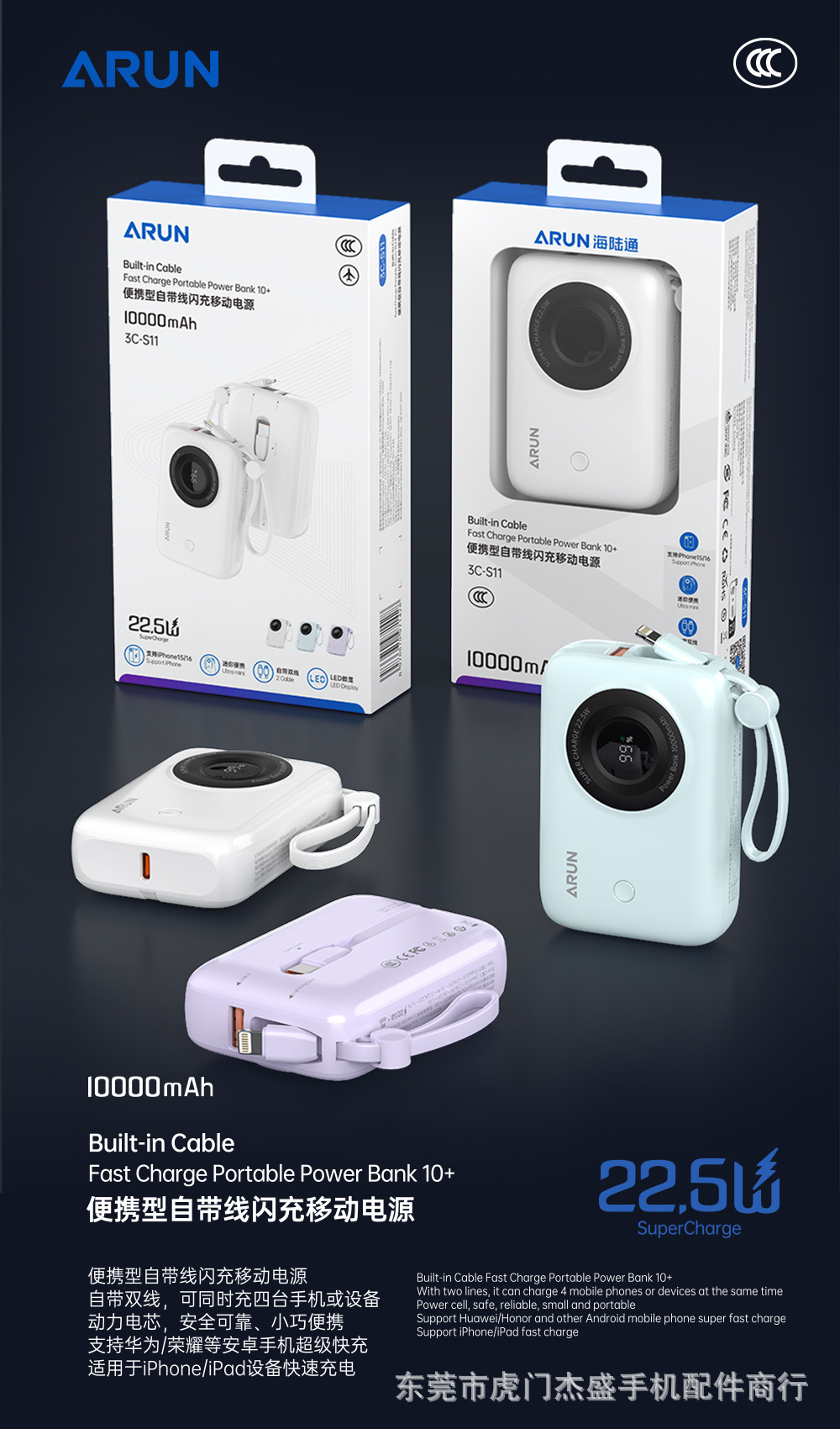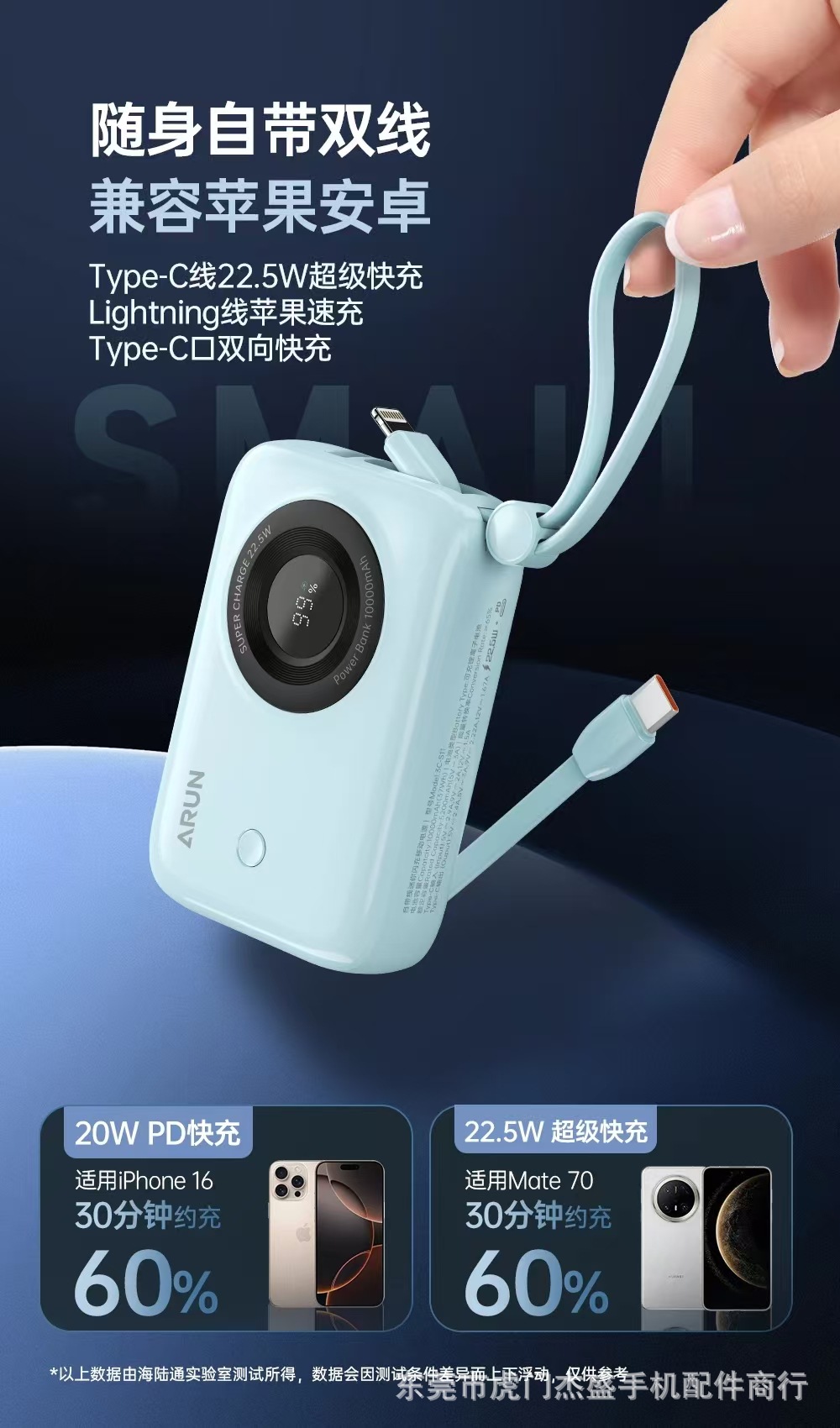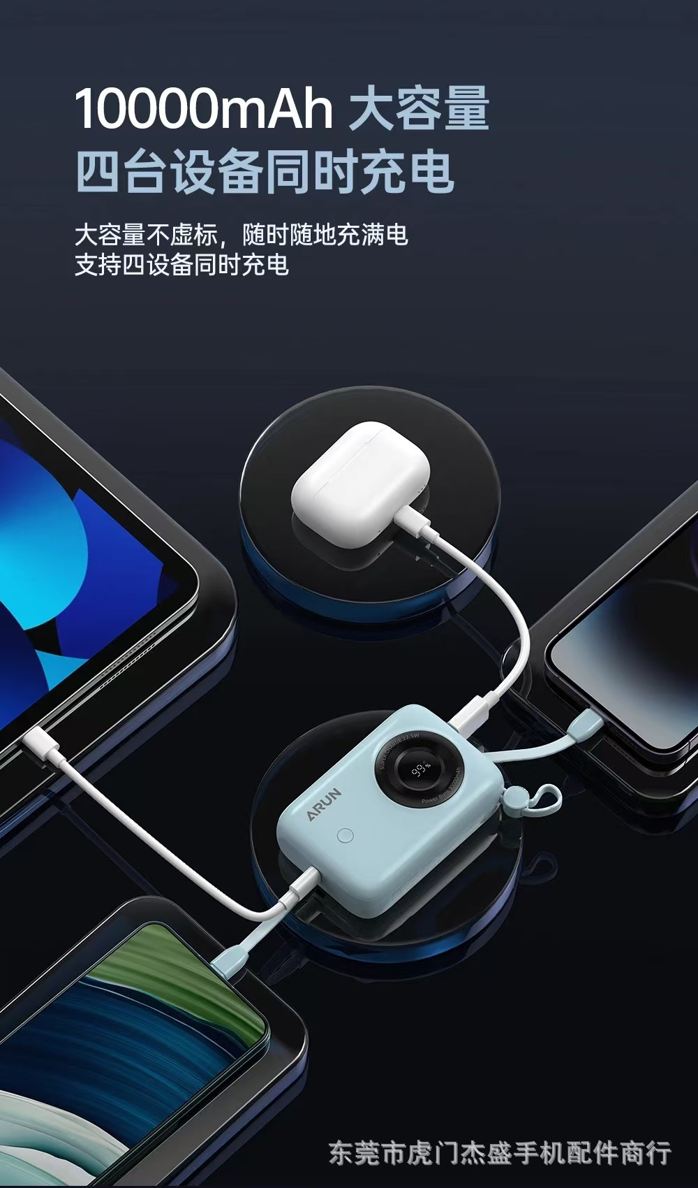 海陸通迷你行動電源S11上市啦,自帶Lightning和Type-C雙線,可爲4台手機同時充電;蘋果安卓超級快充;10000mAh大容量,小巧可攜式,出行必備!
