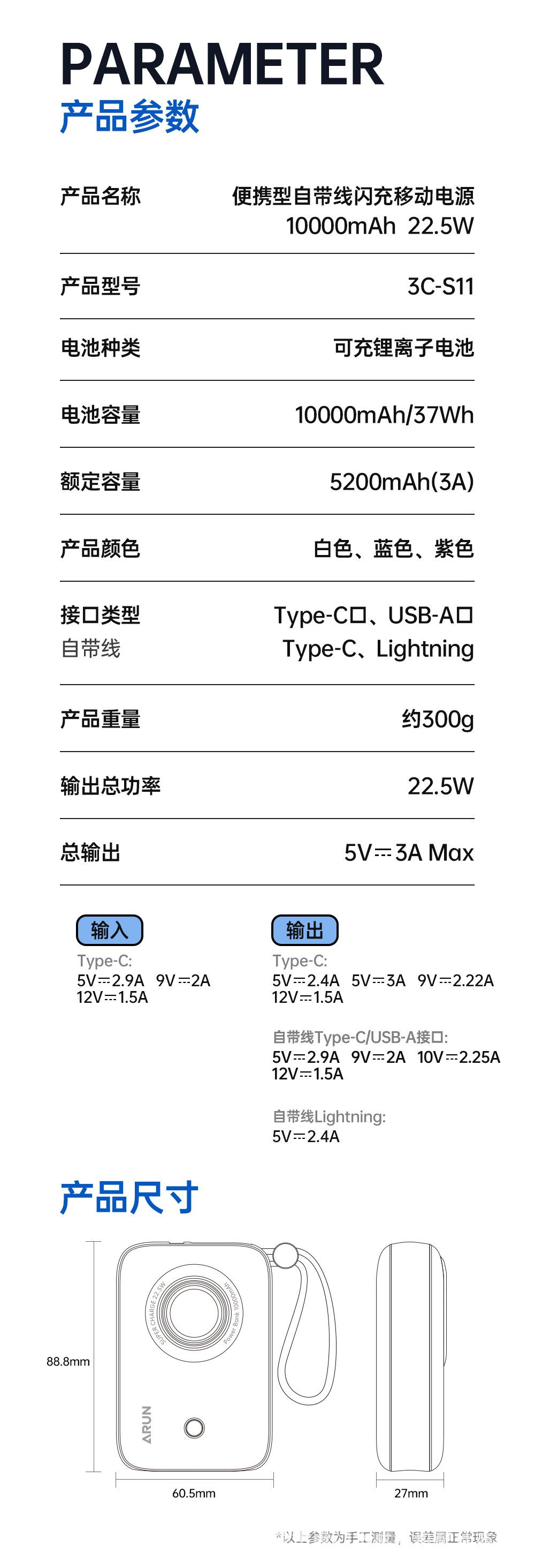 | 電池/容量 | 10000安培 |