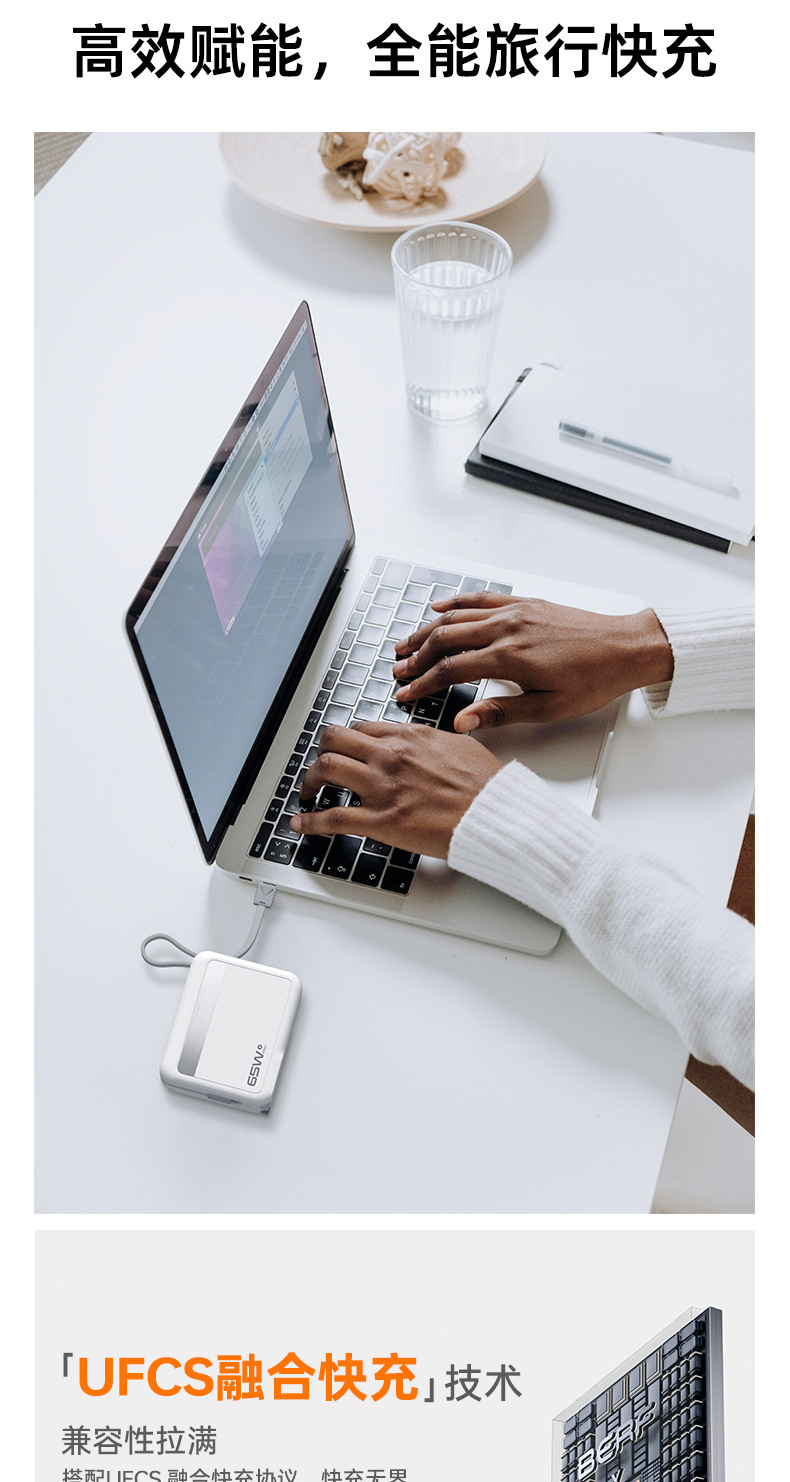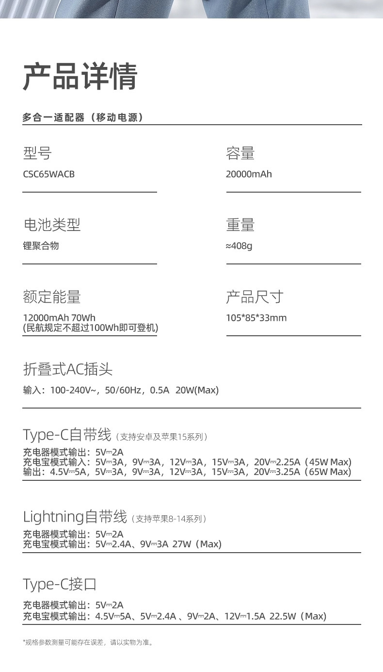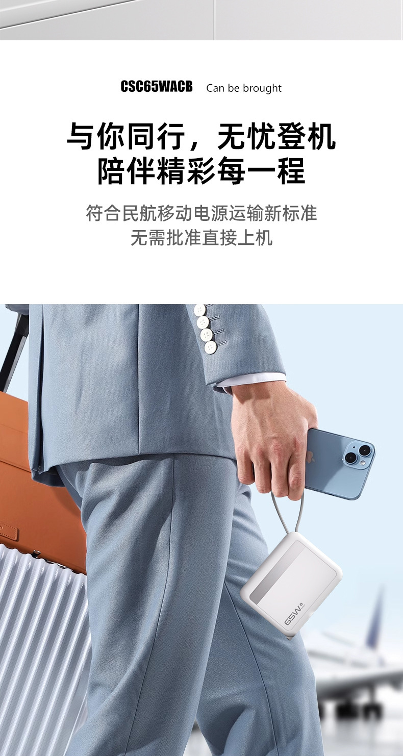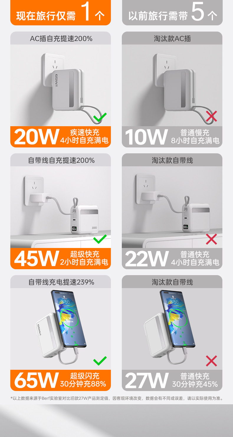 A65w超級快充戶外行動電源筆記型電腦行動電源自帶插頭數顯20000毫