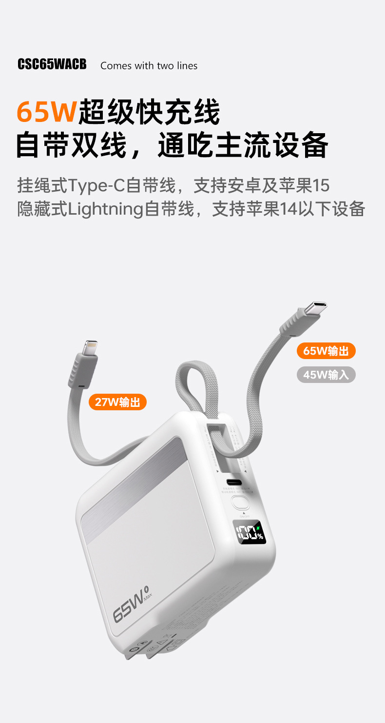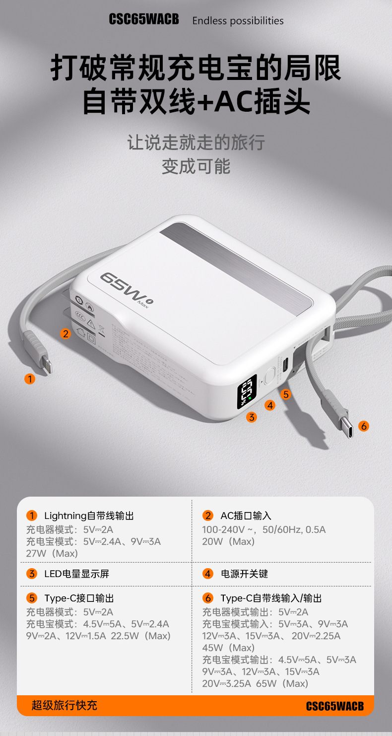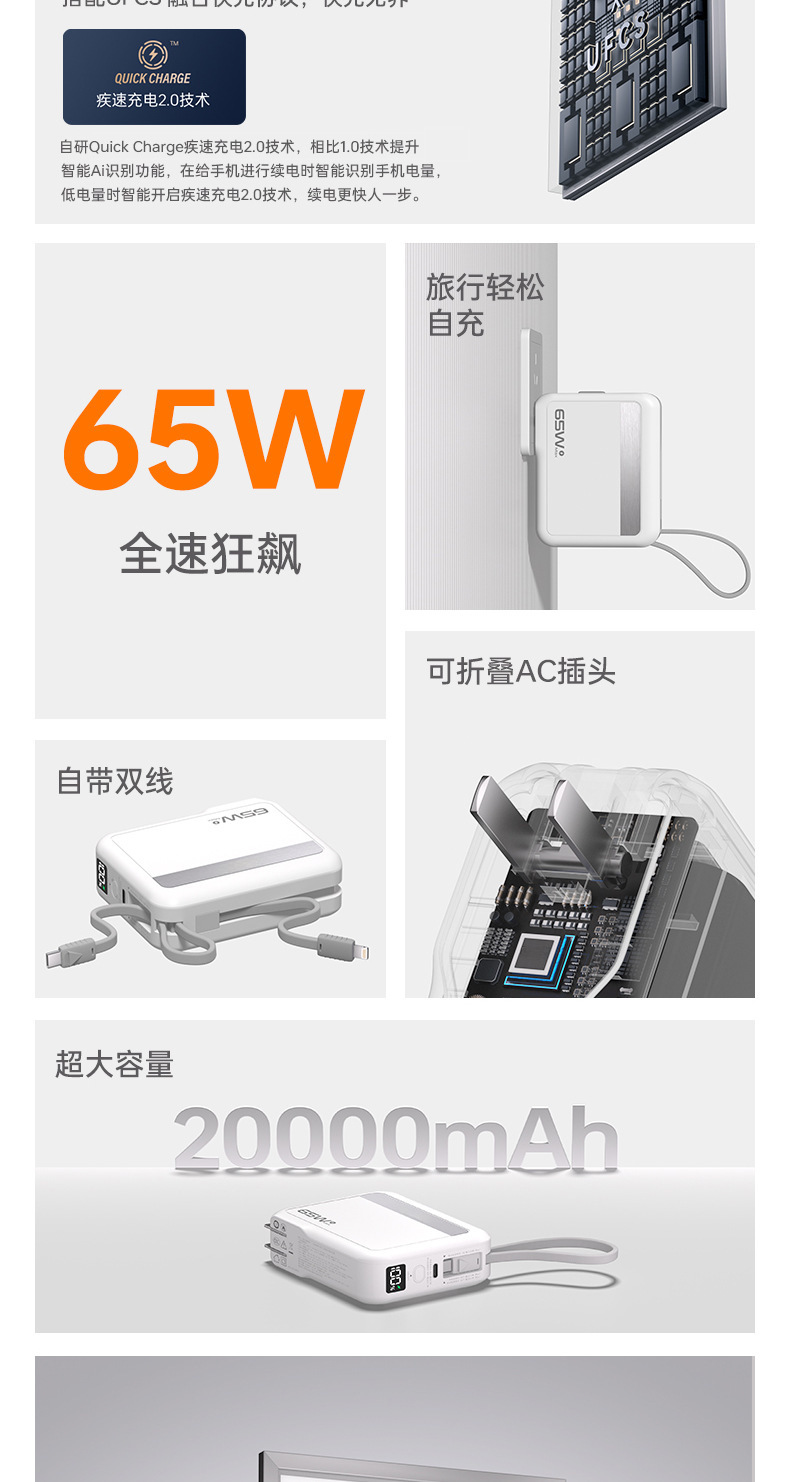 | 顔色 | 65W快充行動電源-機甲風【【雙向快充/自帶雙線/AC折曡插頭】 |