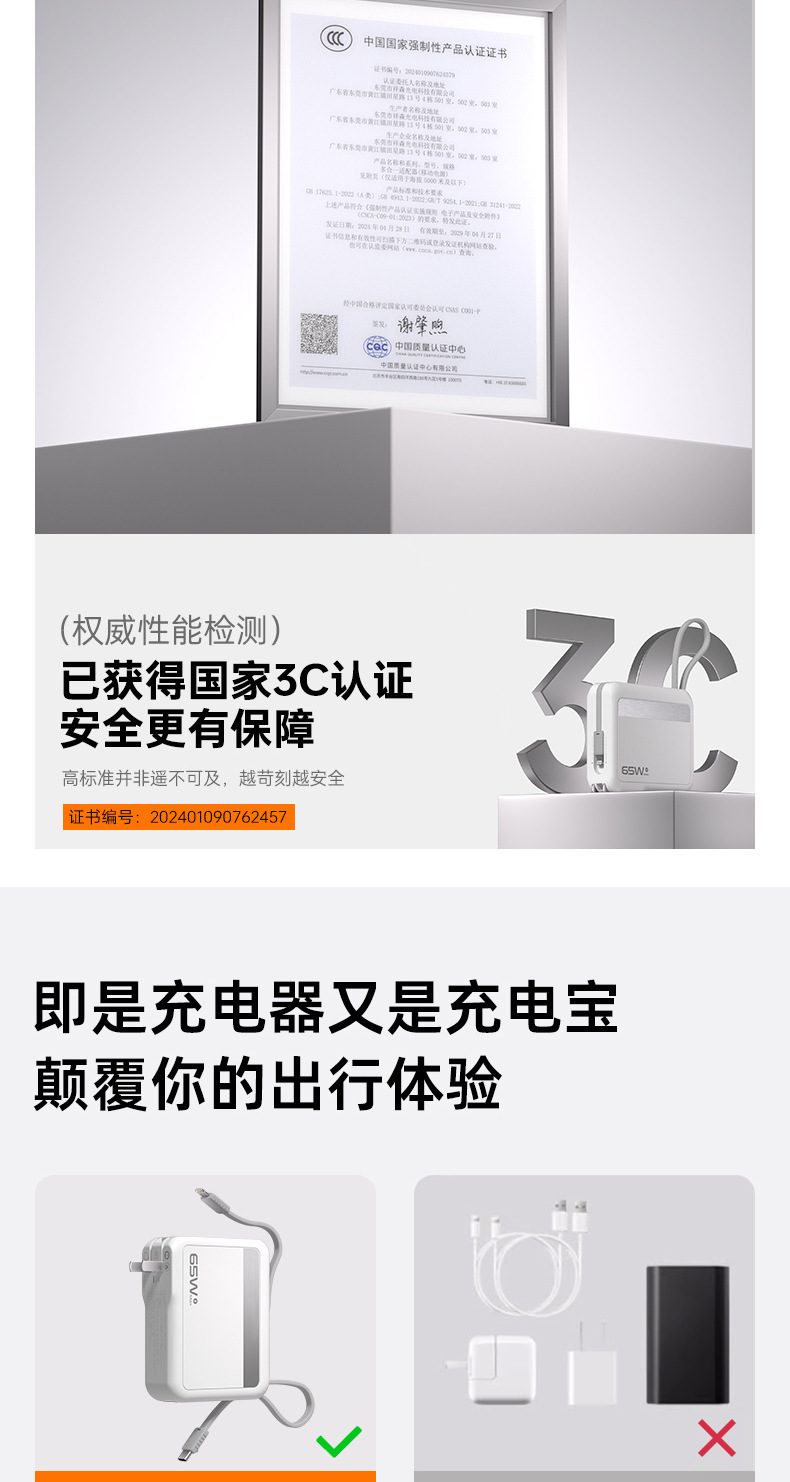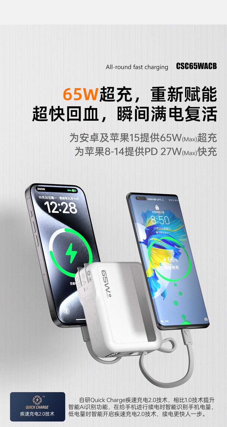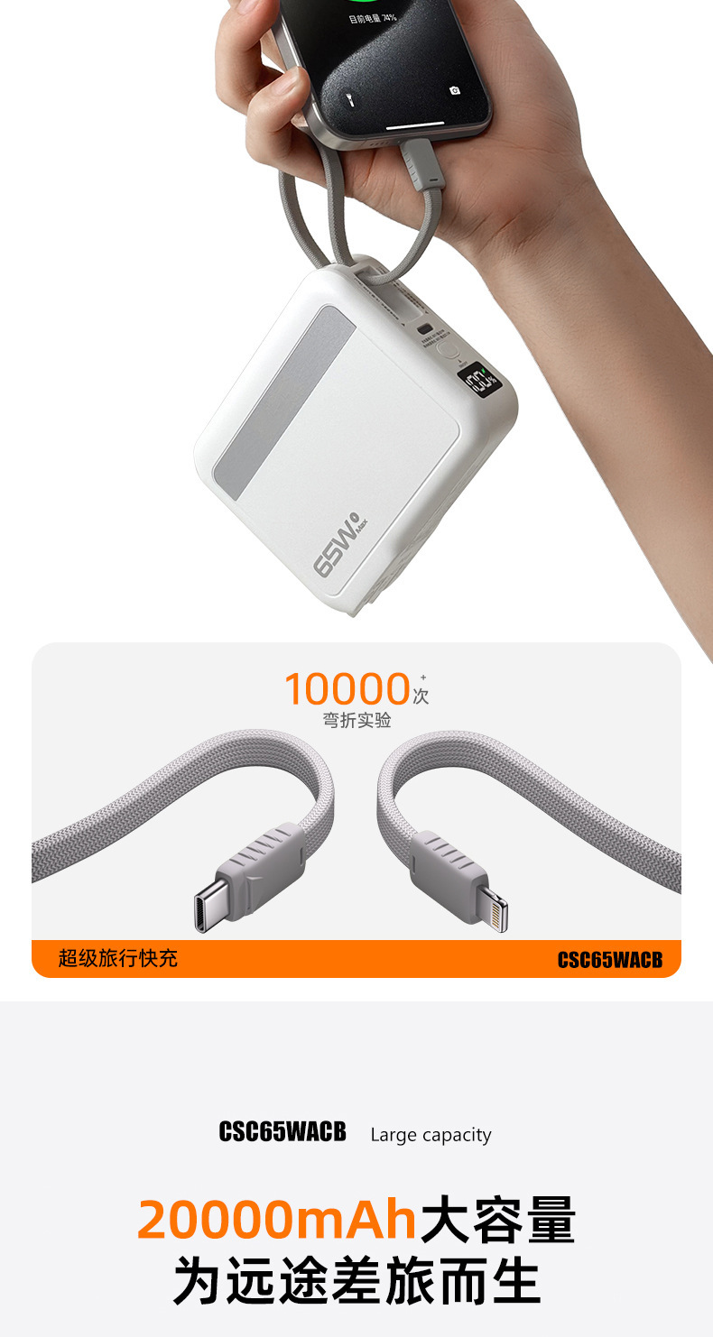 | 顔色 | 65W快充行動電源-機甲風【【雙向快充/自帶雙線/AC折曡插頭】 |