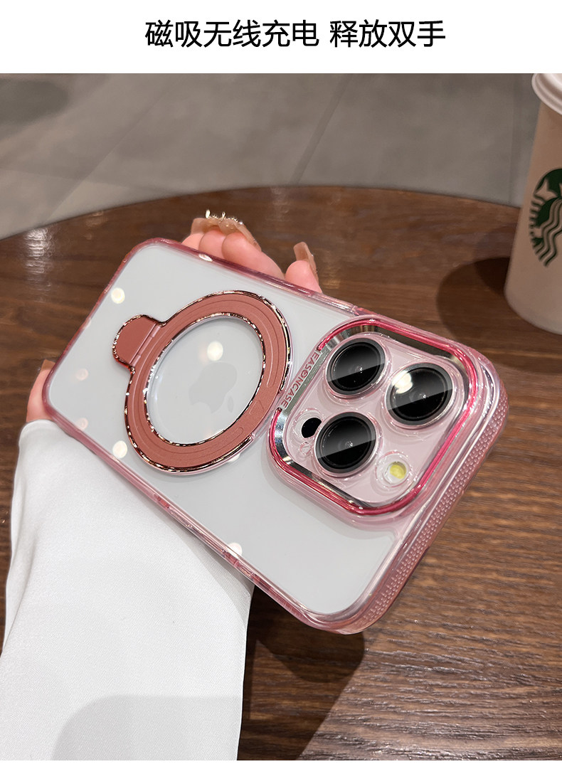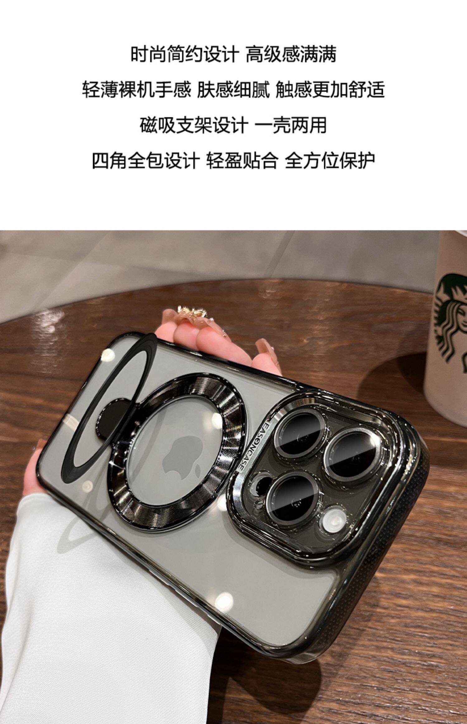 高透冰點支架適用iPhone16ProMax手機殼15Pro磁吸充電鏡頭保護套