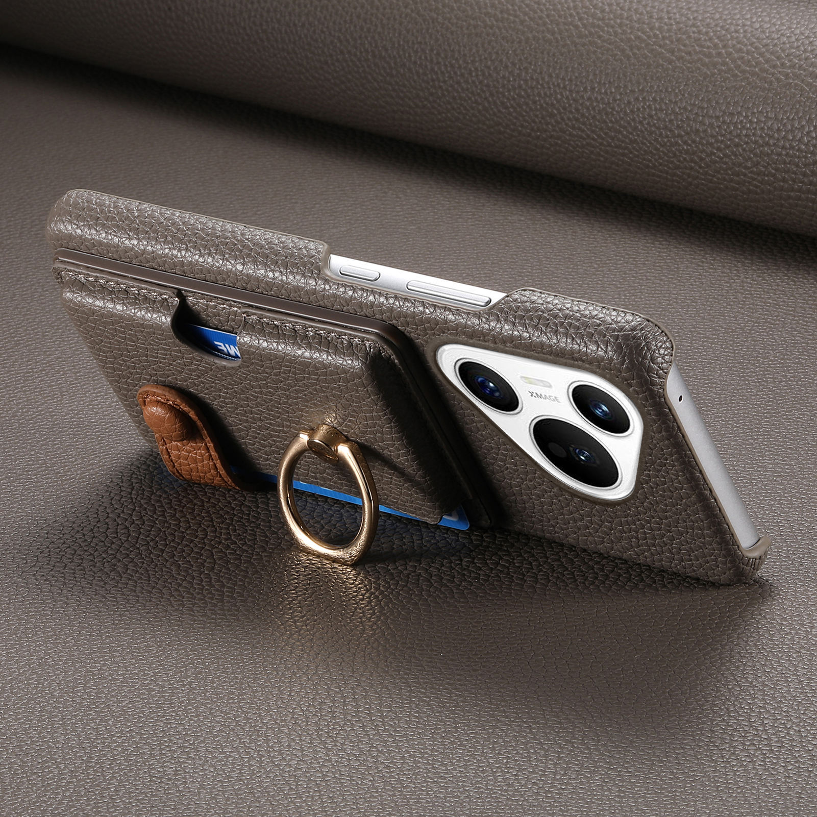 適用華爲Pura70荔枝紋手機殼Mate70pro插卡支架素皮親膚P70保護套
