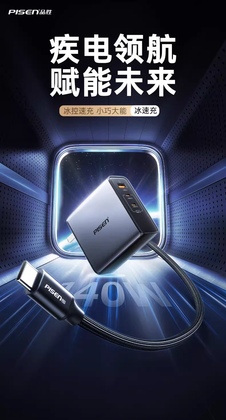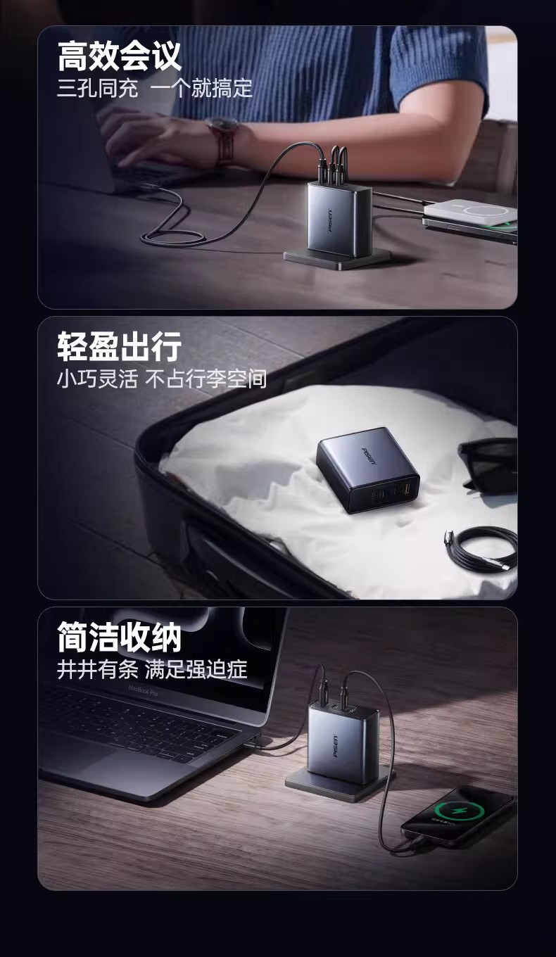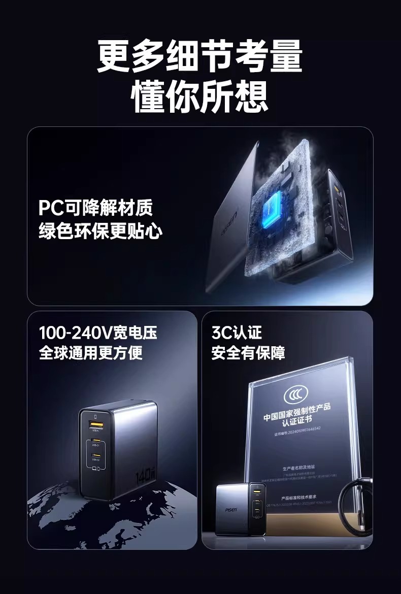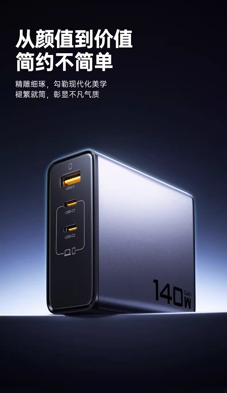 品勝GaN氮化鎵充電器140W快充套裝PDtypec四口沖手機平板大功率17