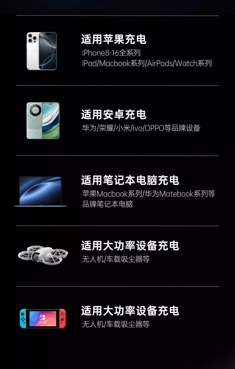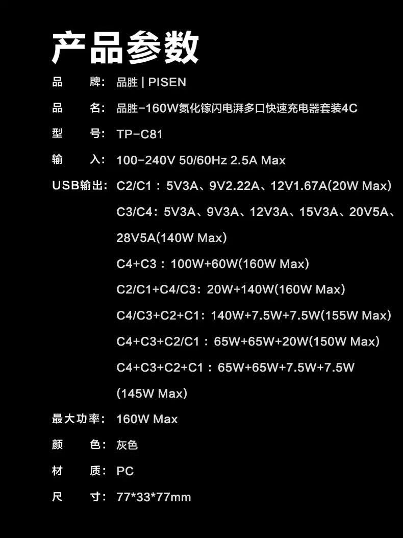 適用型號 【啞光灰】160W四口氮化鎵+1.8米240W雙C編織線