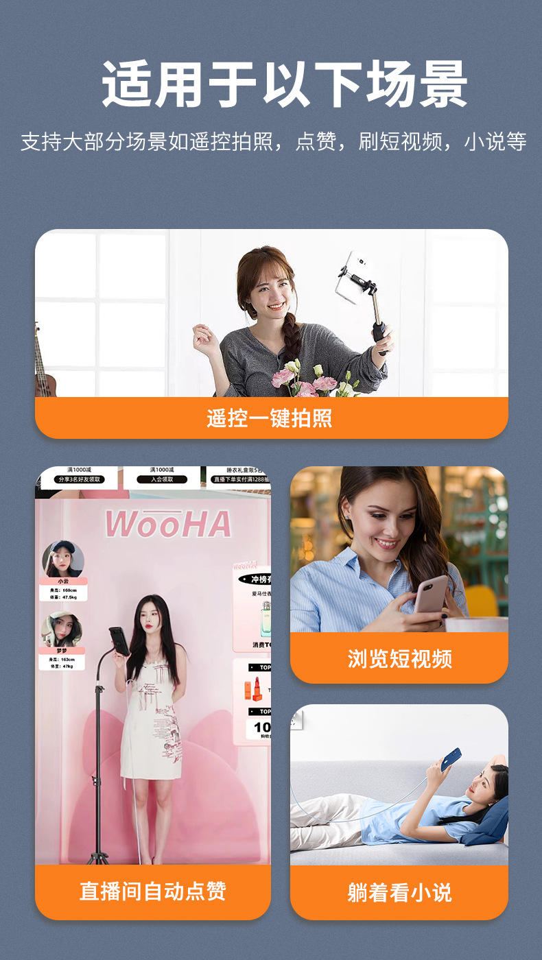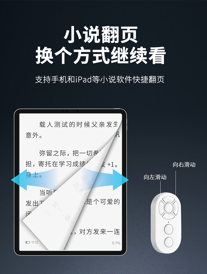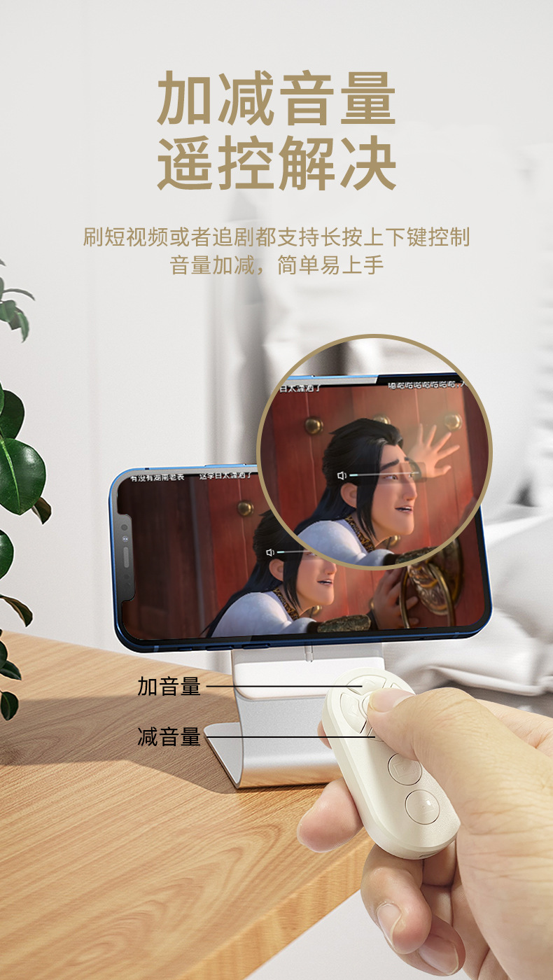 嬾人神器手機拍照錄像通用抖音快手小說繙頁充電款一鍵拍照遙控器
