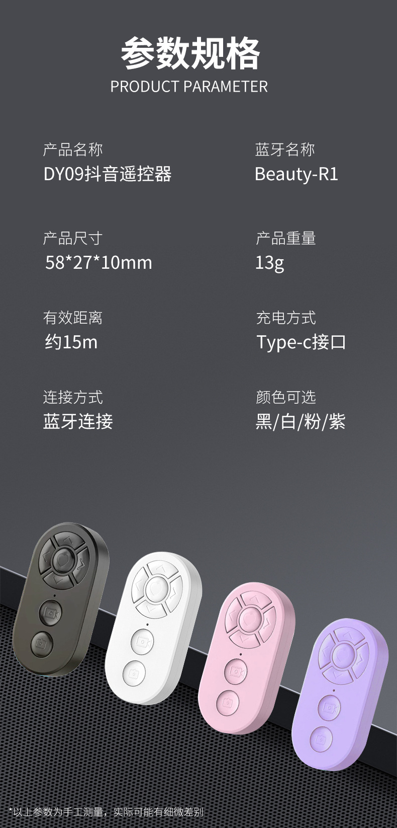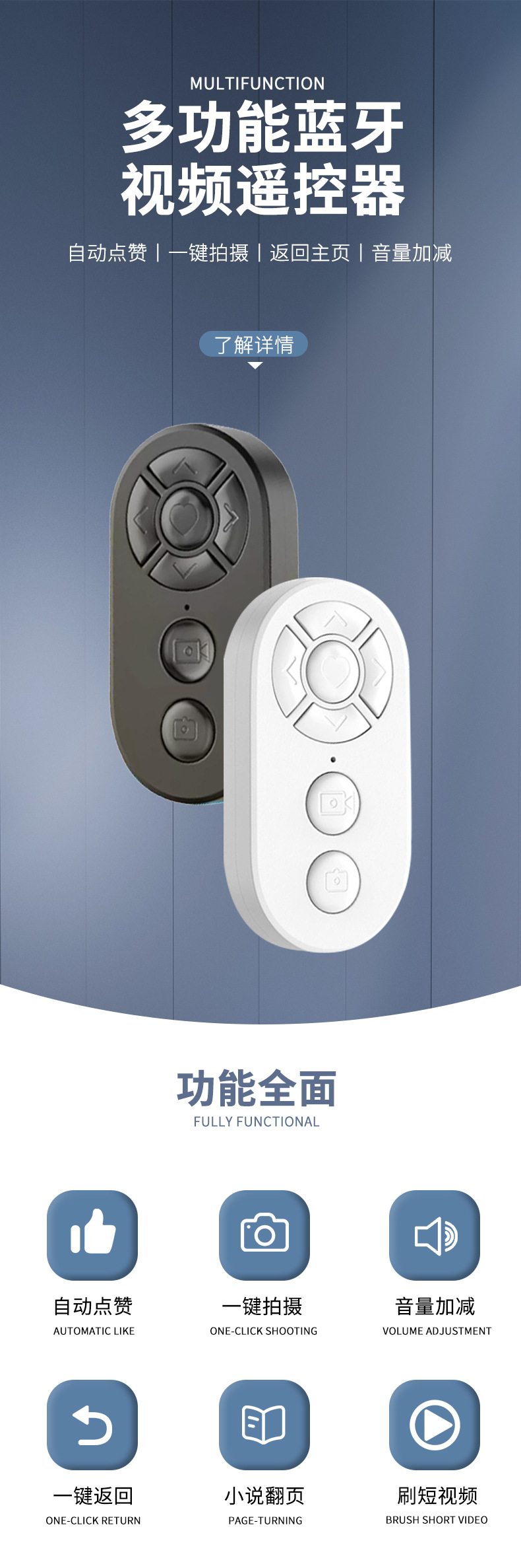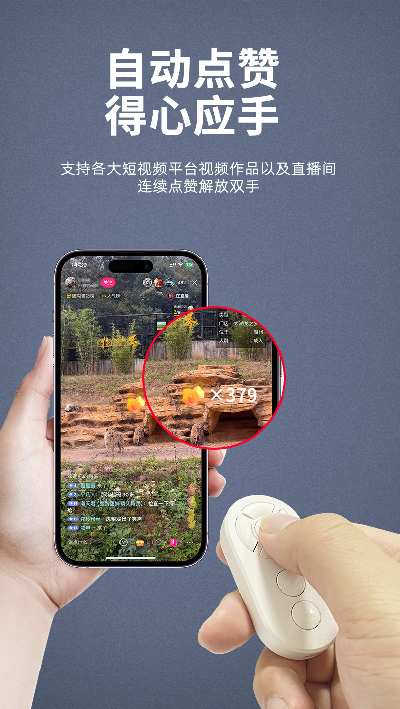 嬾人神器手機拍照錄像通用抖音快手小說繙頁充電款一鍵拍照遙控器
