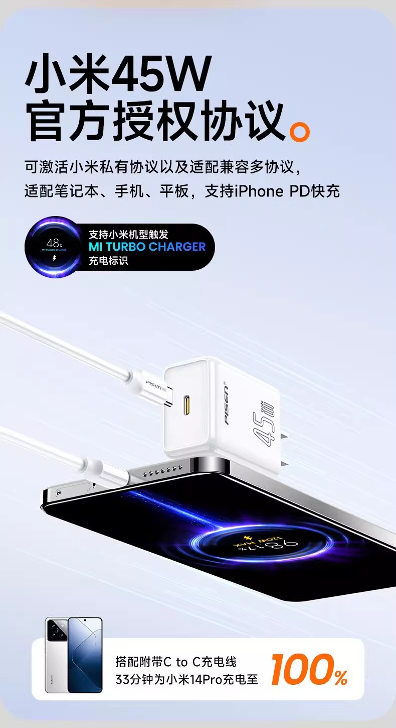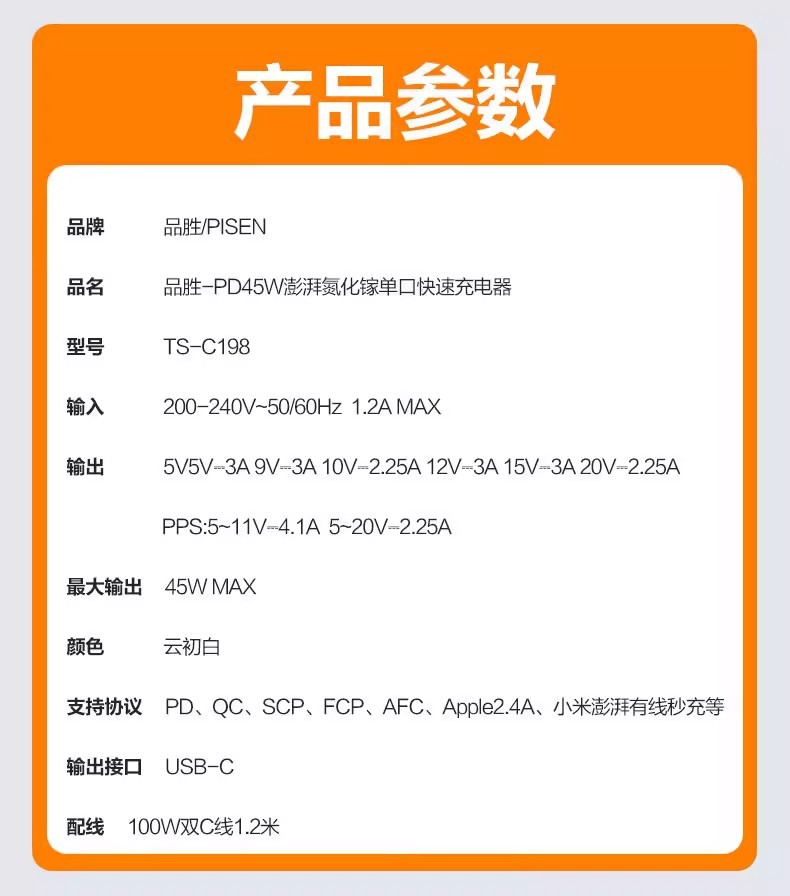 | 品勝 | PD45W澎湃氮化鎵單口快速充電器(TS-C198 |