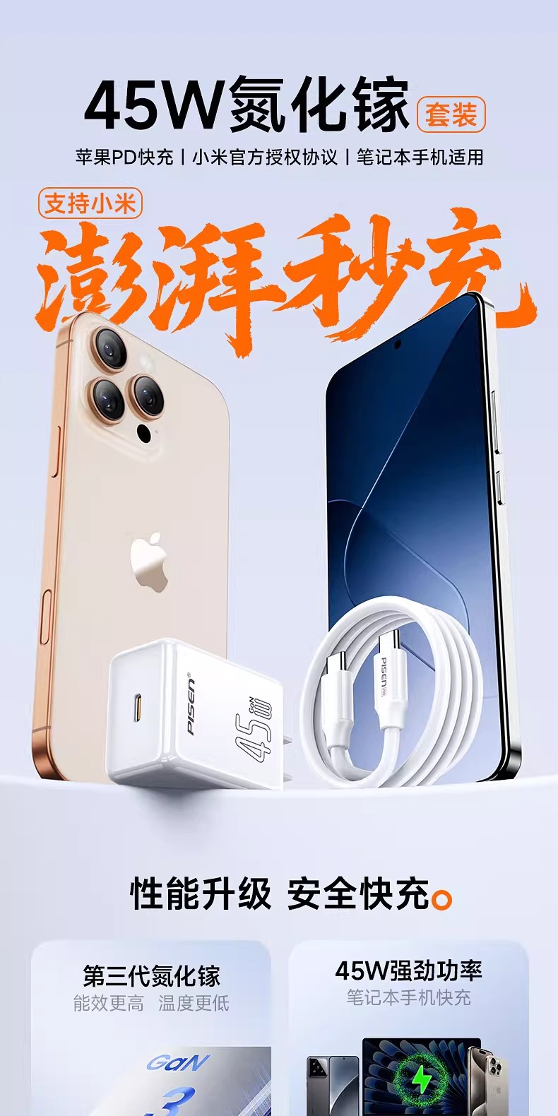 品勝45W氮化鎵充電器適用蘋果16promax快充頭iPhone15/14華爲小米