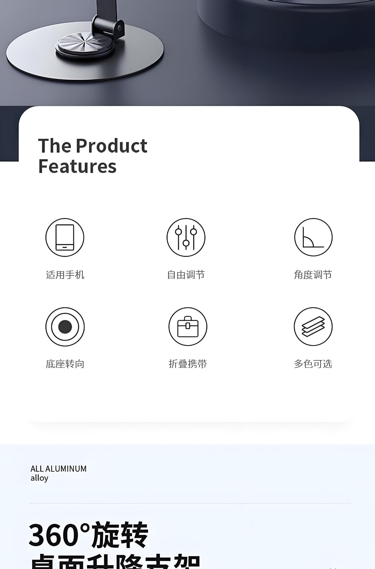 全金屬旋轉手機支架懶人追劇可攜式可折疊旋轉平板支撐架桌面支架