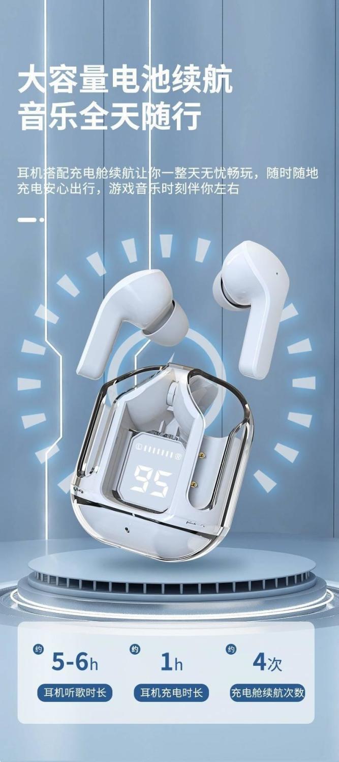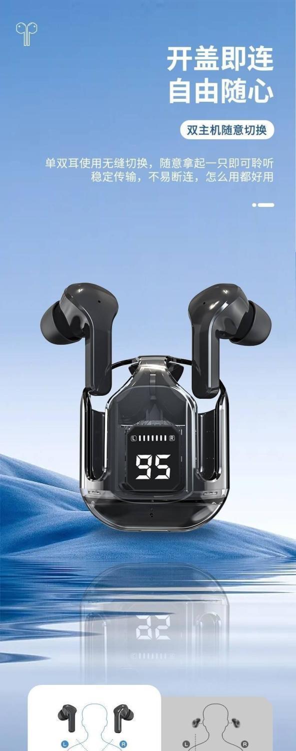 新款運動藍牙耳機XT16入耳數顯長續航透明藍牙耳機