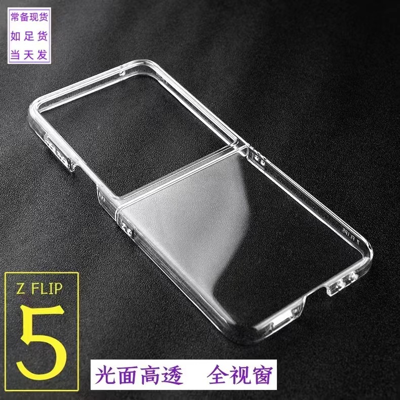 適用三星ZFlip6手機殼PC全包透明硬殼ZFlip5折曡大視窗超薄保護套