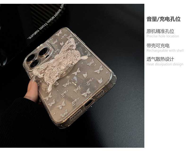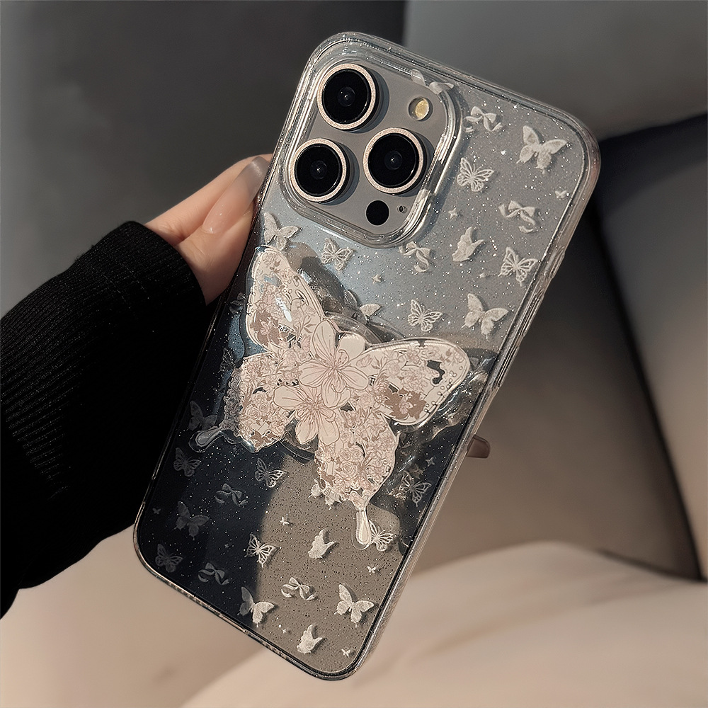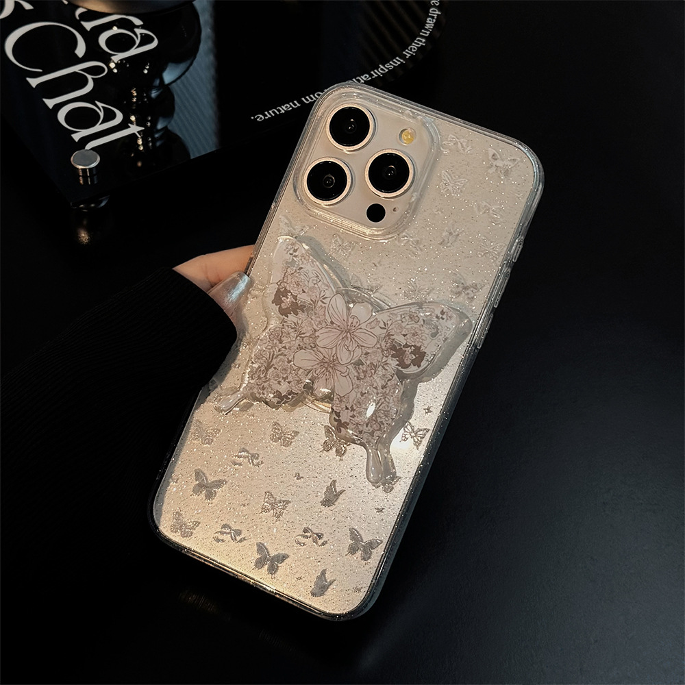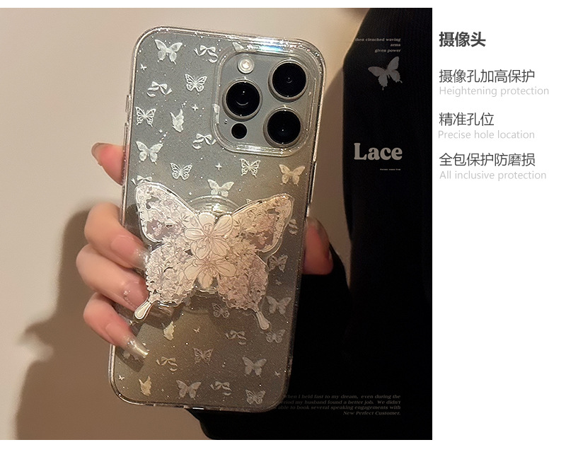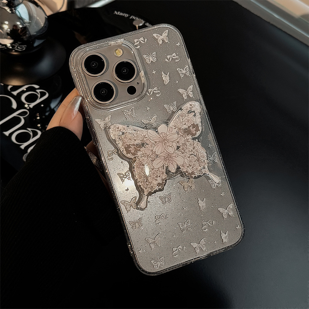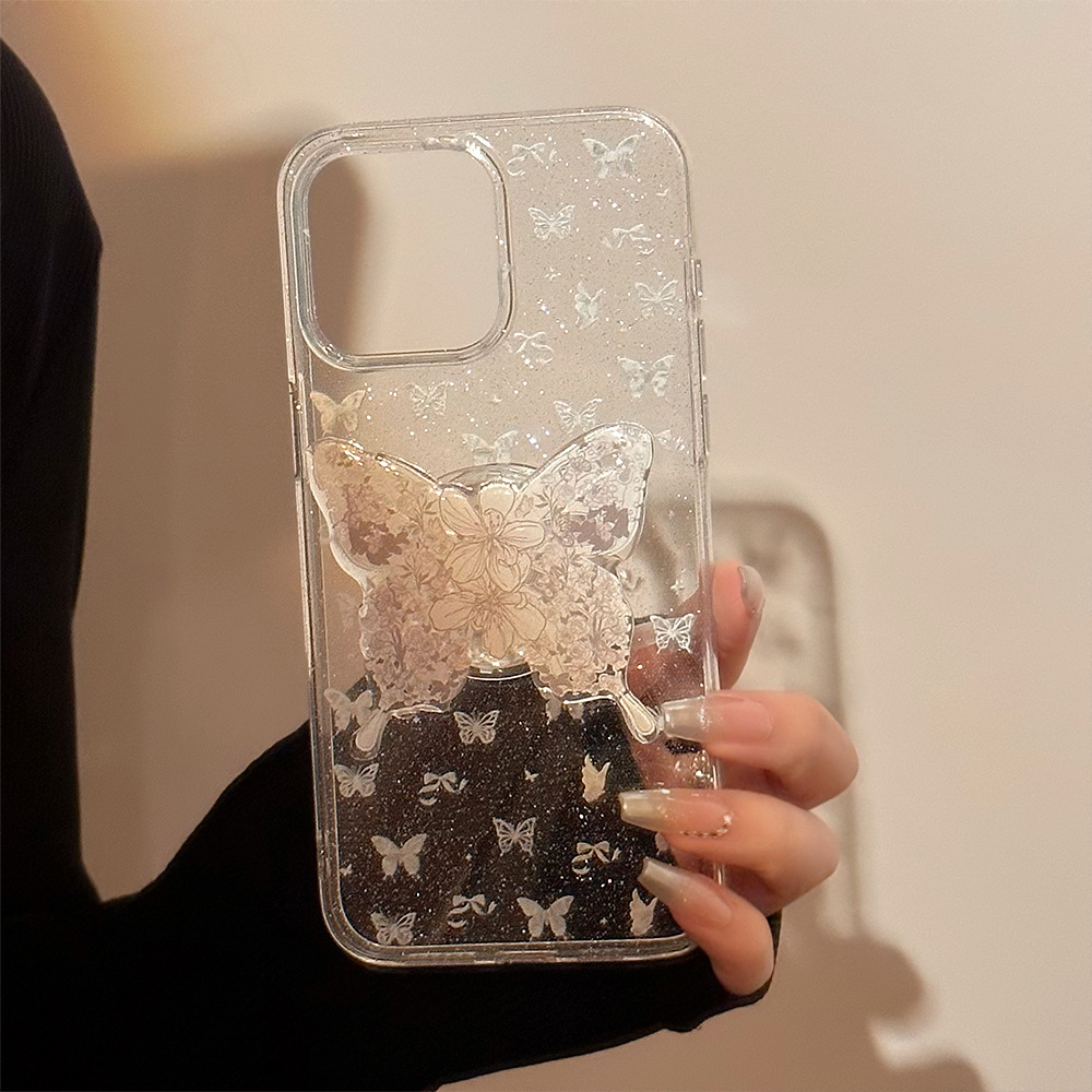氣質ins白蝴蝶支架蘋果16手機殼15閃粉iphone17pro max適用11仙女