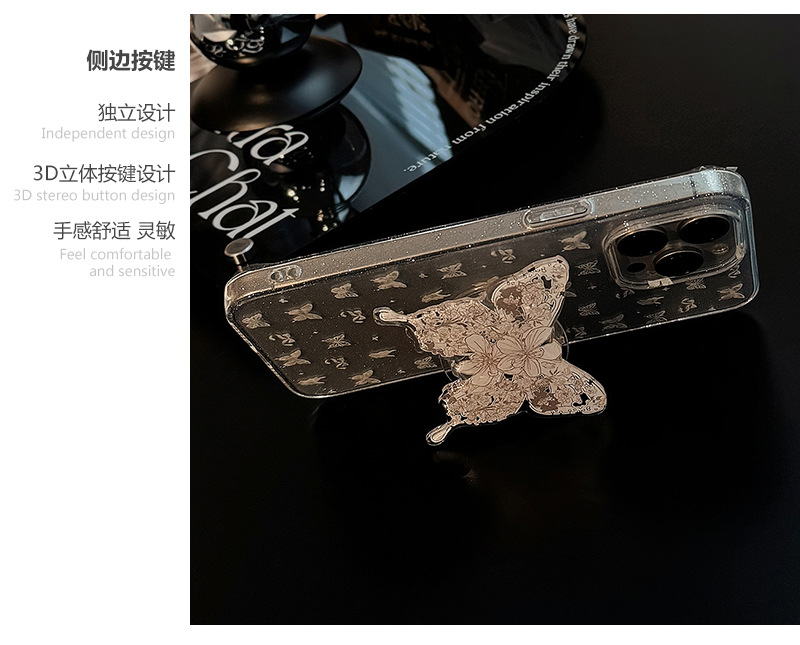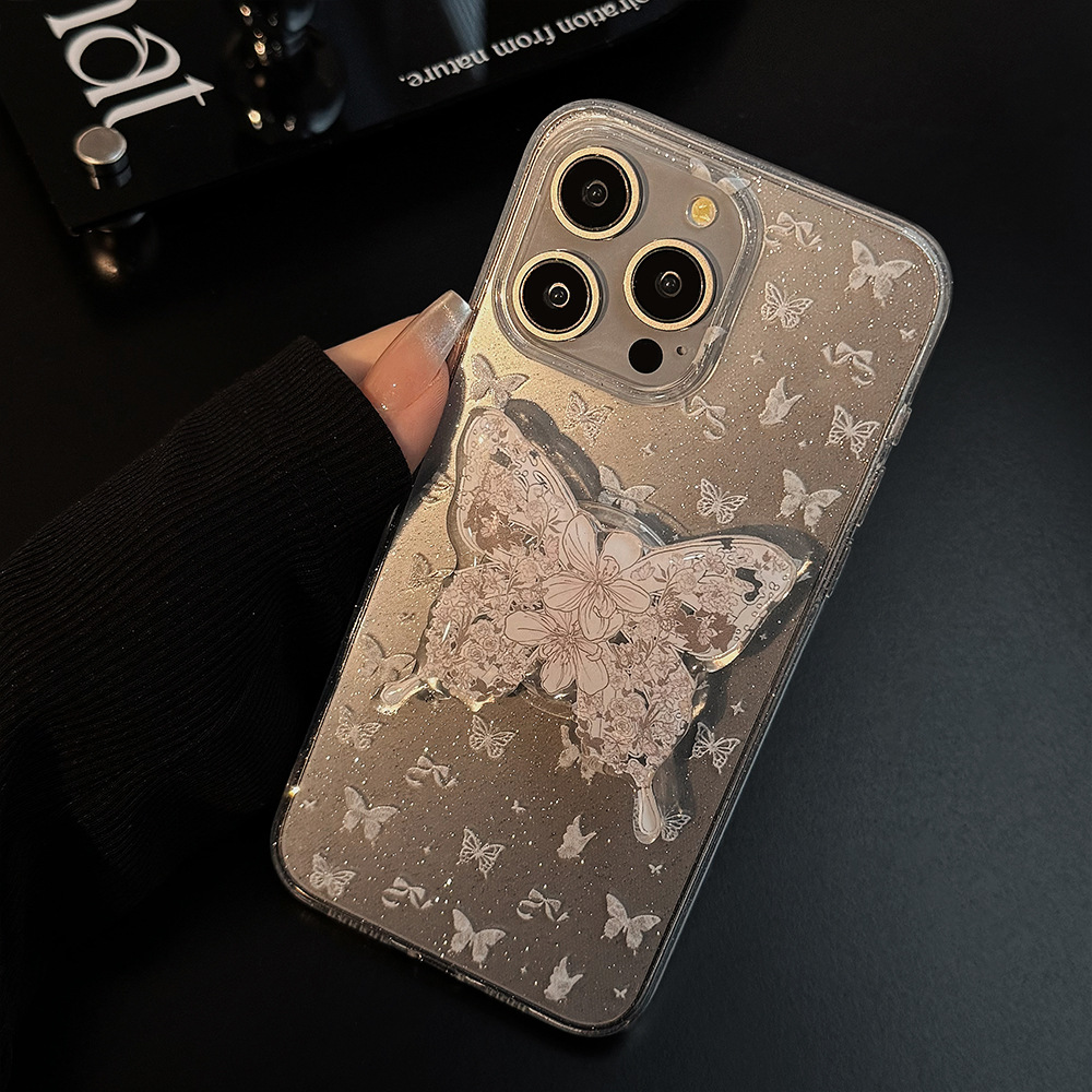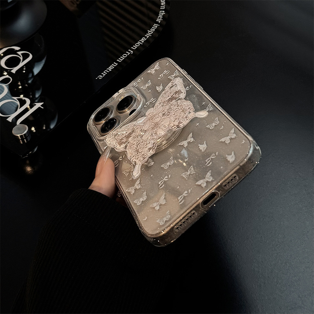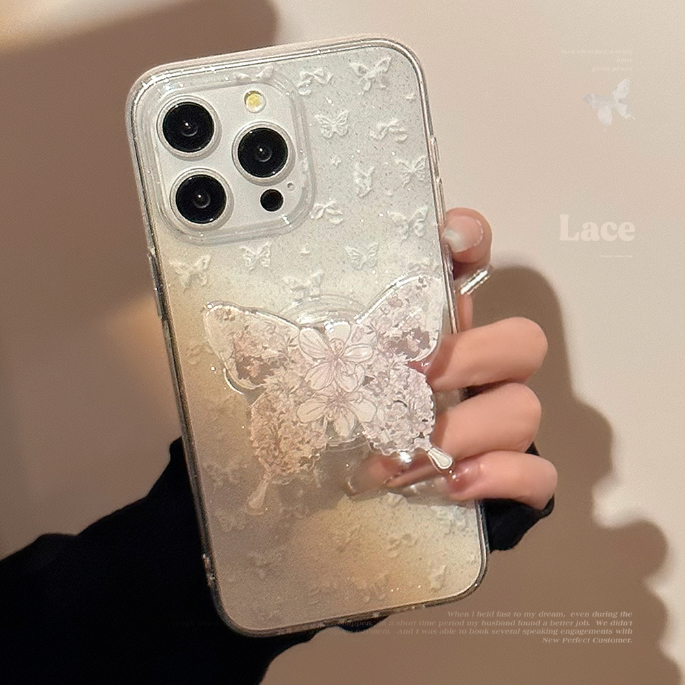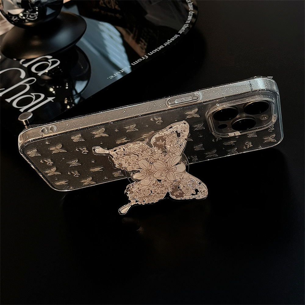 氣質ins白蝴蝶支架蘋果16手機殼15閃粉iphone17pro max適用11仙女