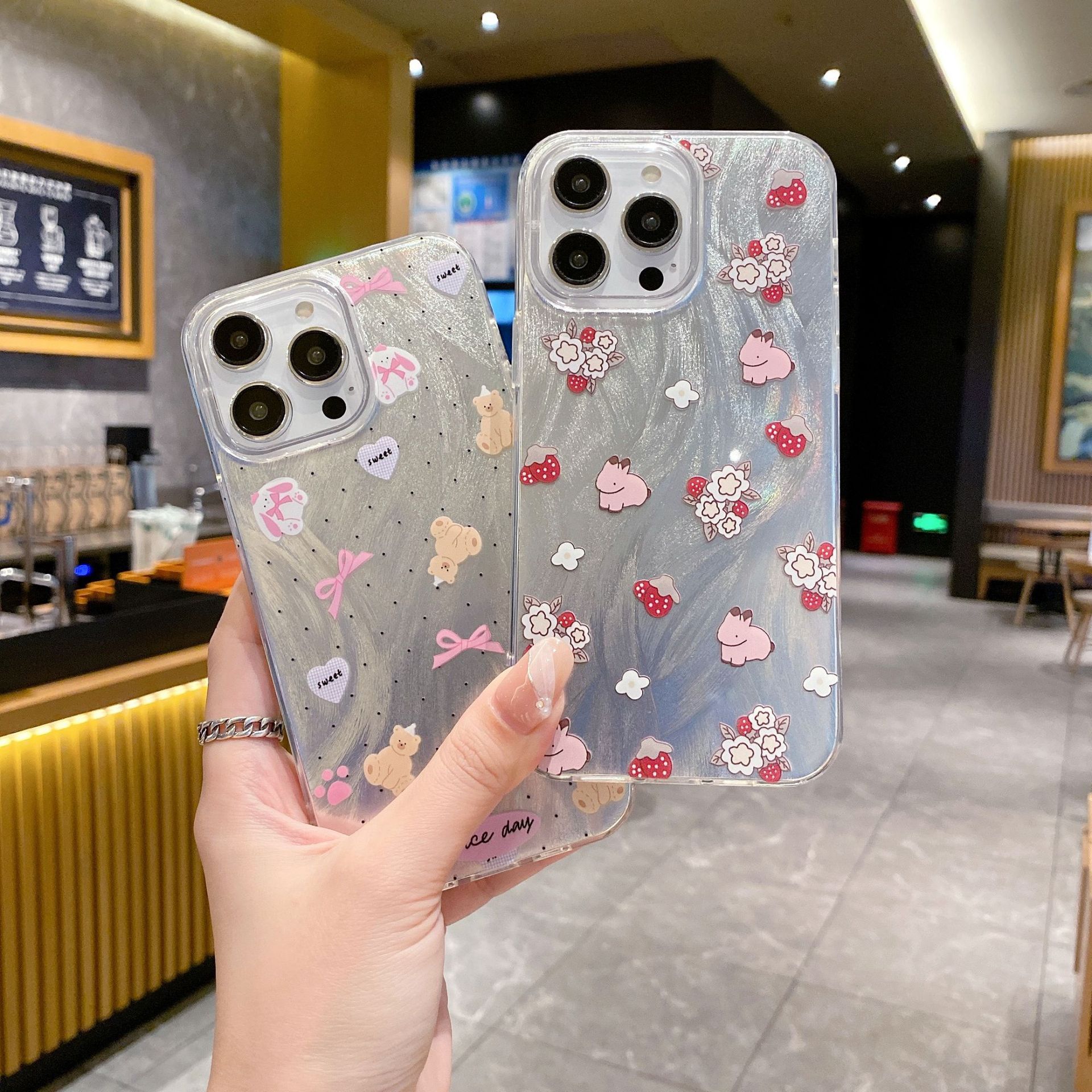 ins風日系羽紗殼花朵適用蘋果16手機殼韓風iPhone14promax透明 15