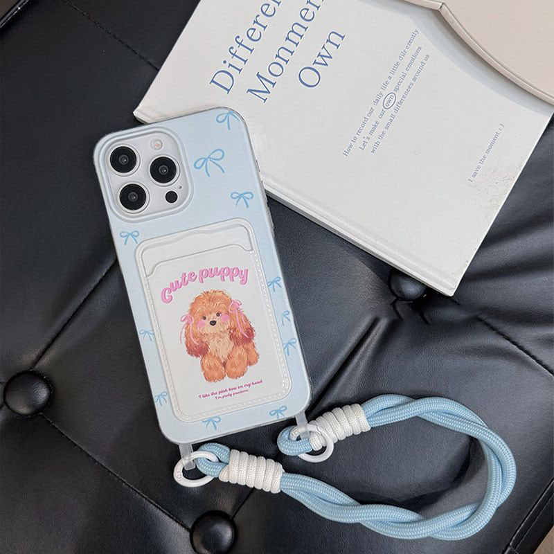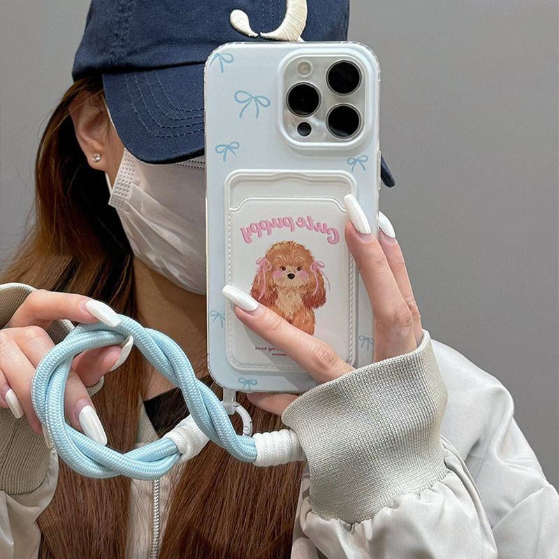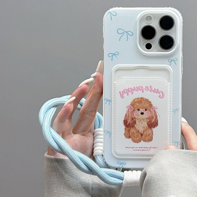卡通蝴蝶結小狗蘋果16手機殼iPhone13/14/15promax卡包12/11掛繩x