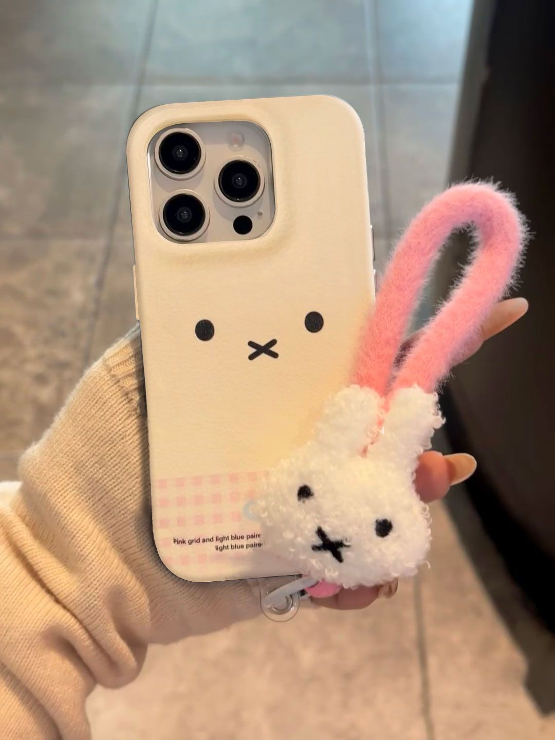 | 顔色 | 大孔仿皮-白-W9粉格表情+兔子手繩 |