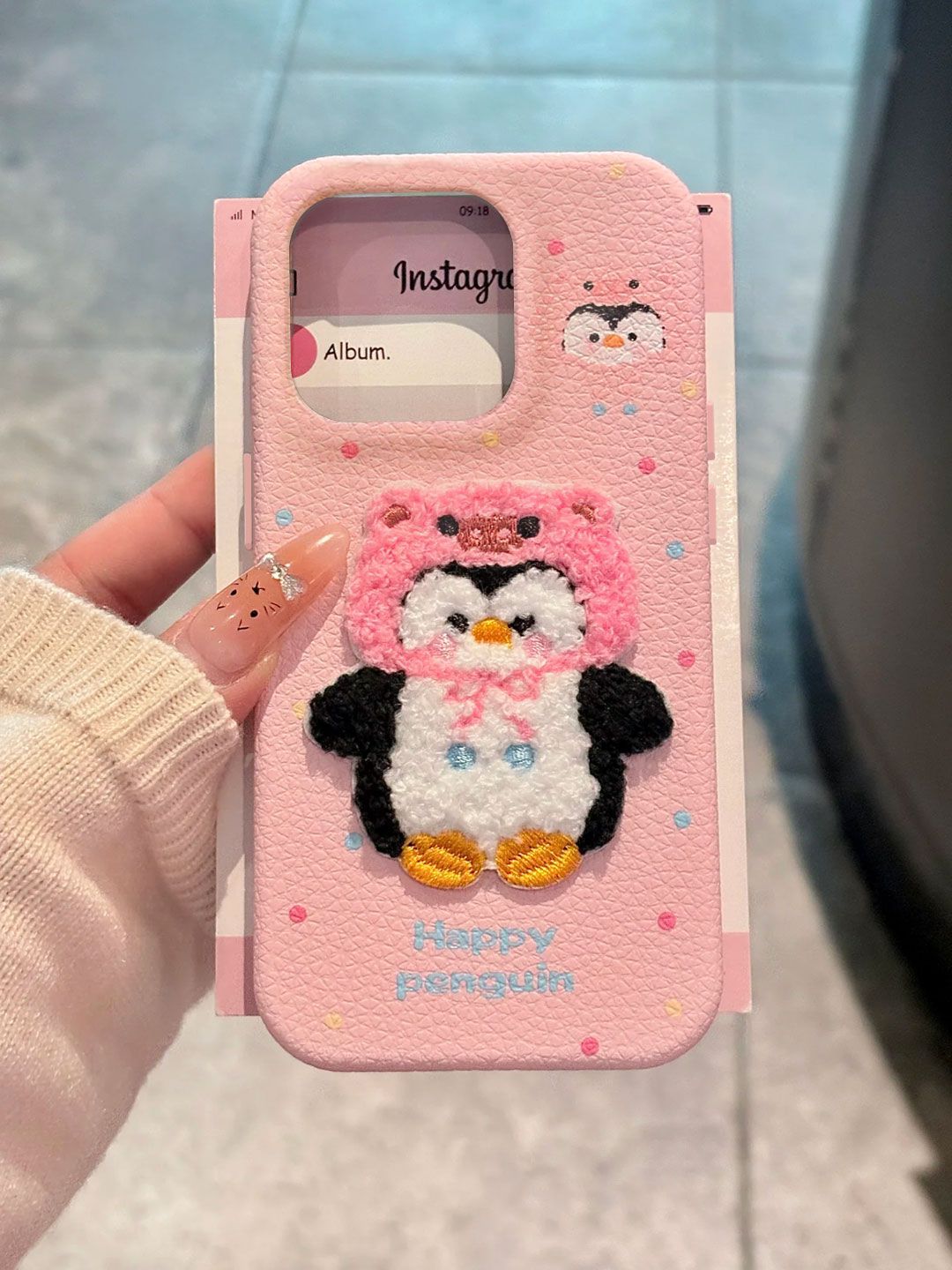 | 顔色 | 大孔仿皮-淺粉-W16企鵞3號+刺綉企鵞-單殼 |