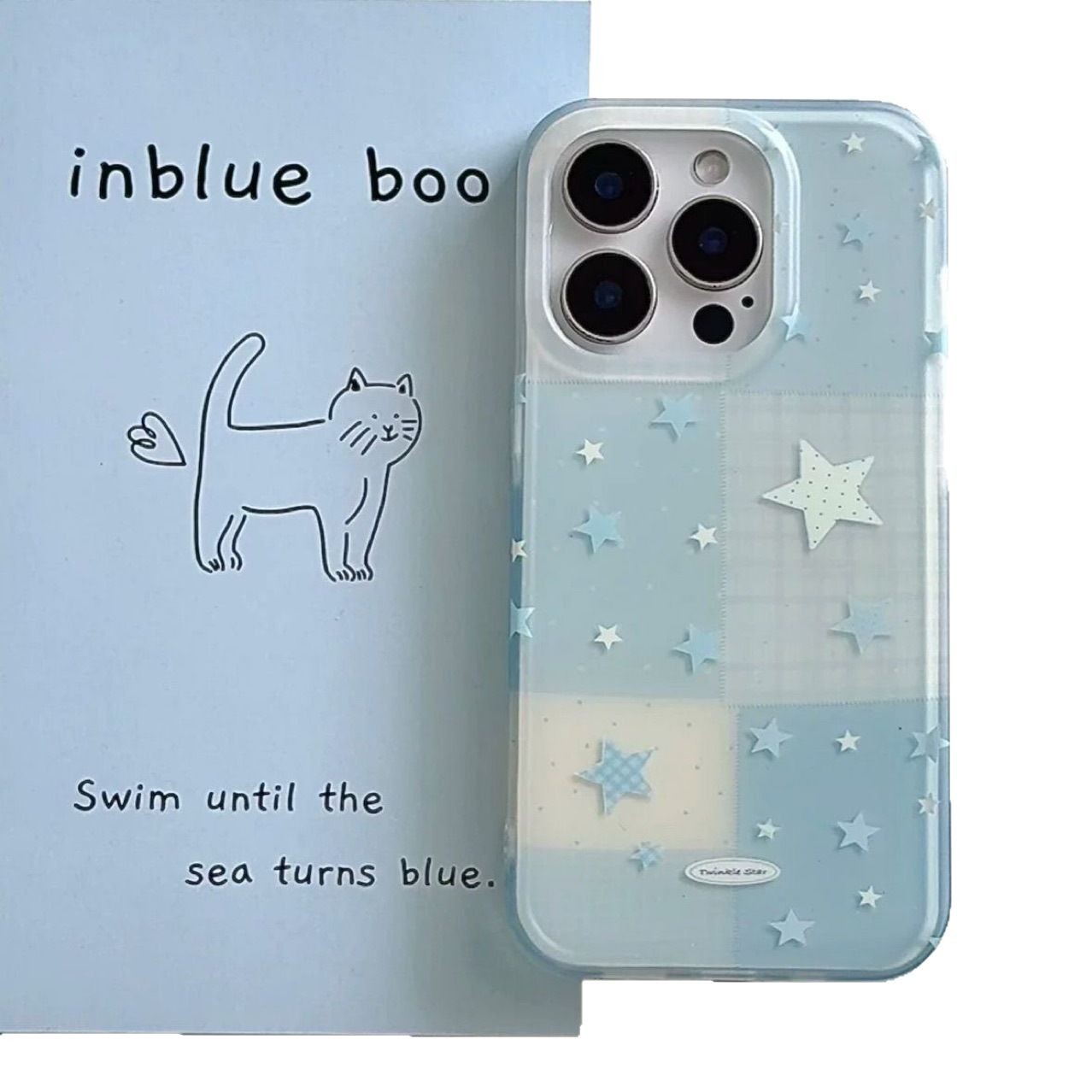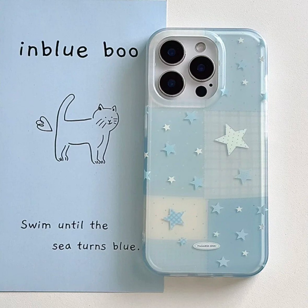 藍拼接星星蘋果16promax手機殼小清新藍色iPhone13保護套適用1415