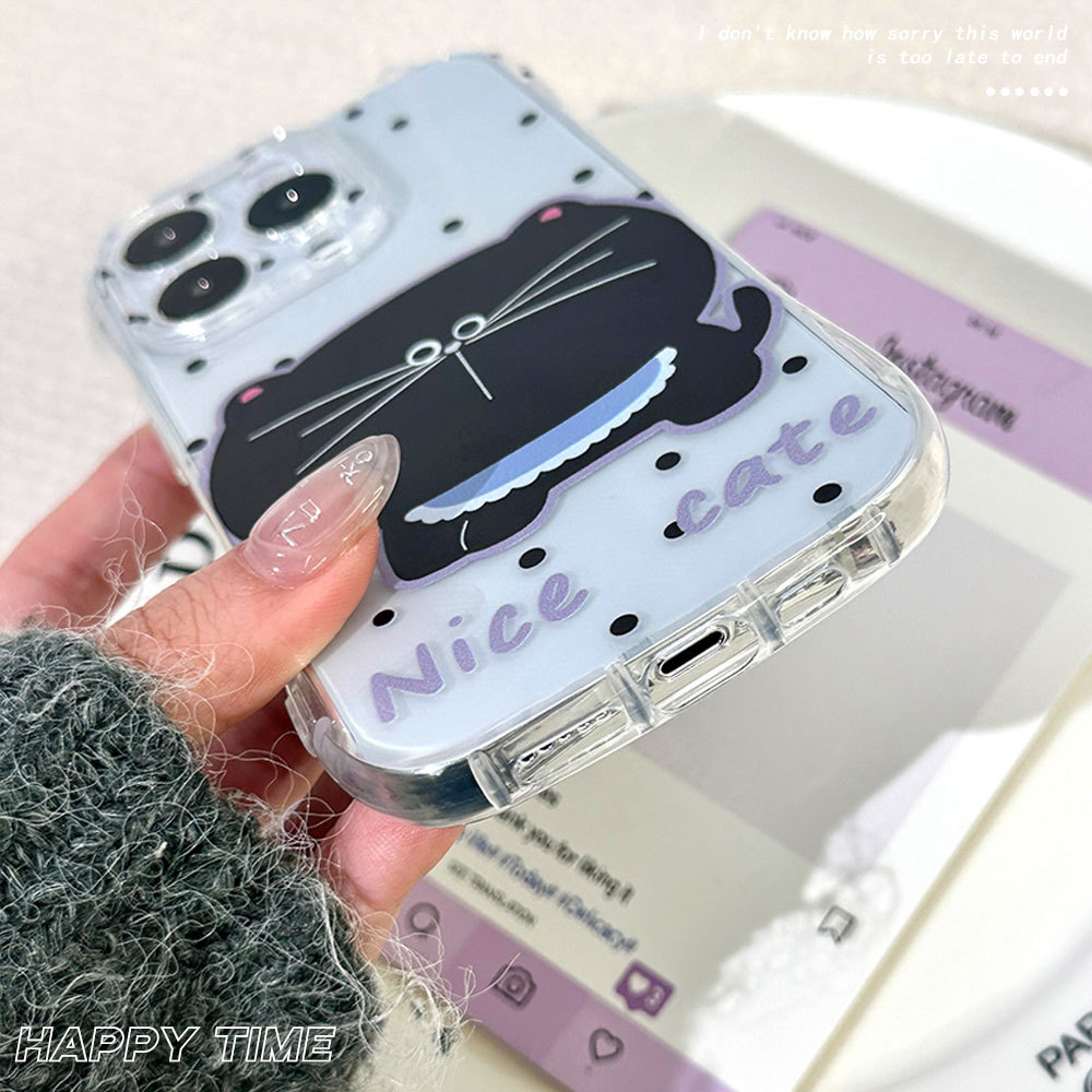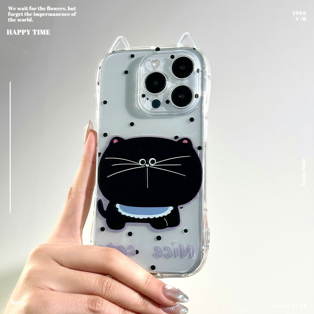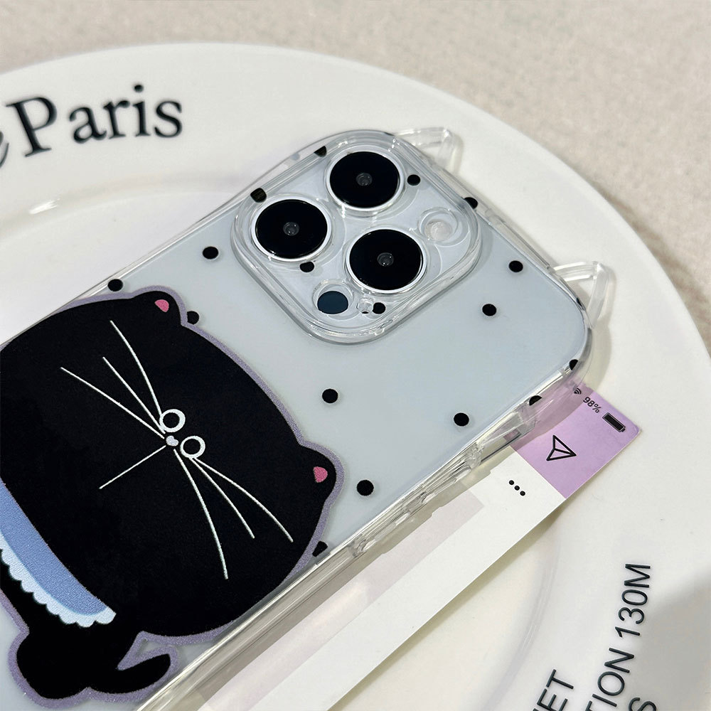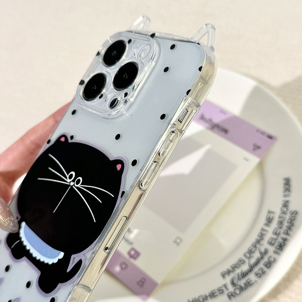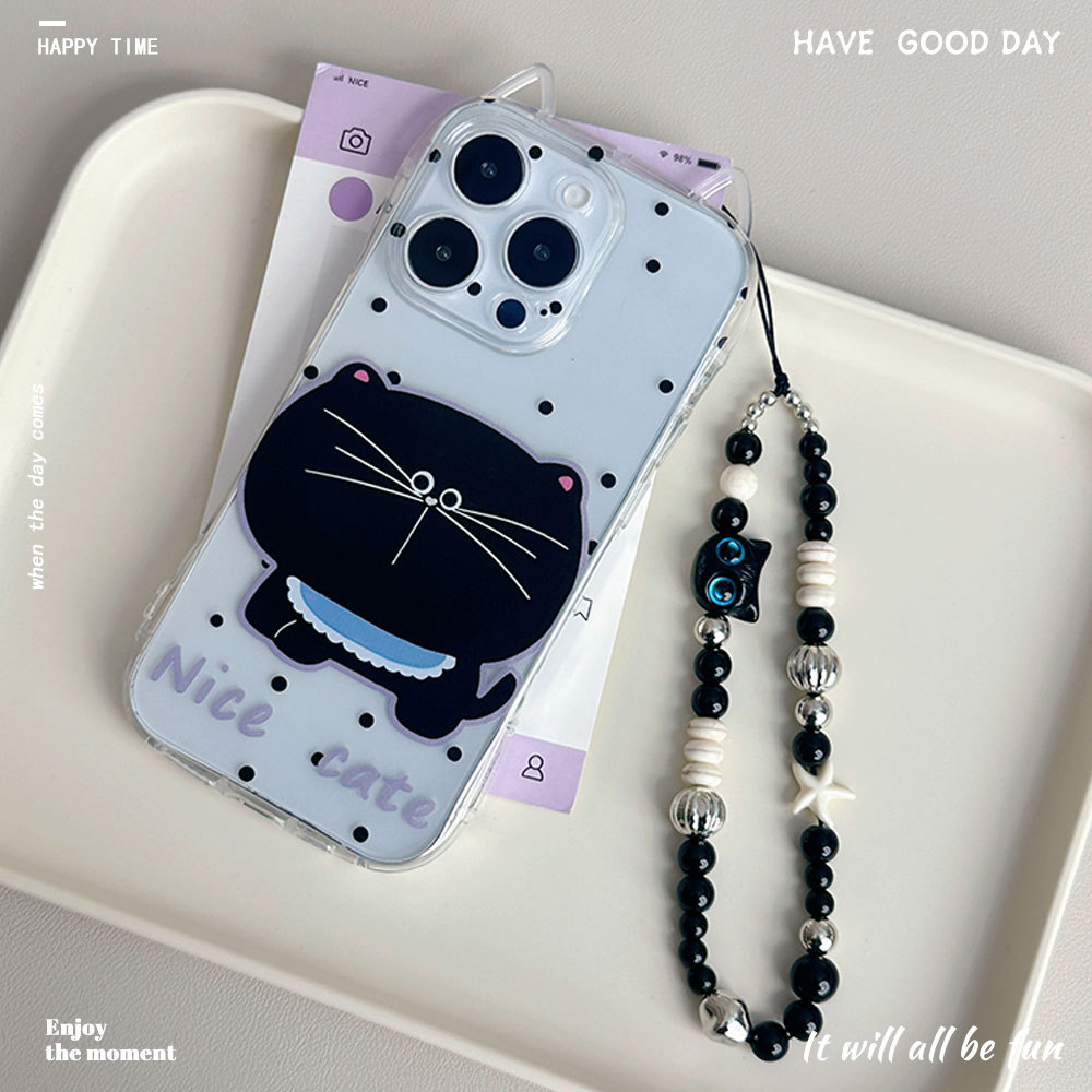 新款波點黑貓帶手鏈貓耳朵手機殼適用iphone16promax蘋果15保護套