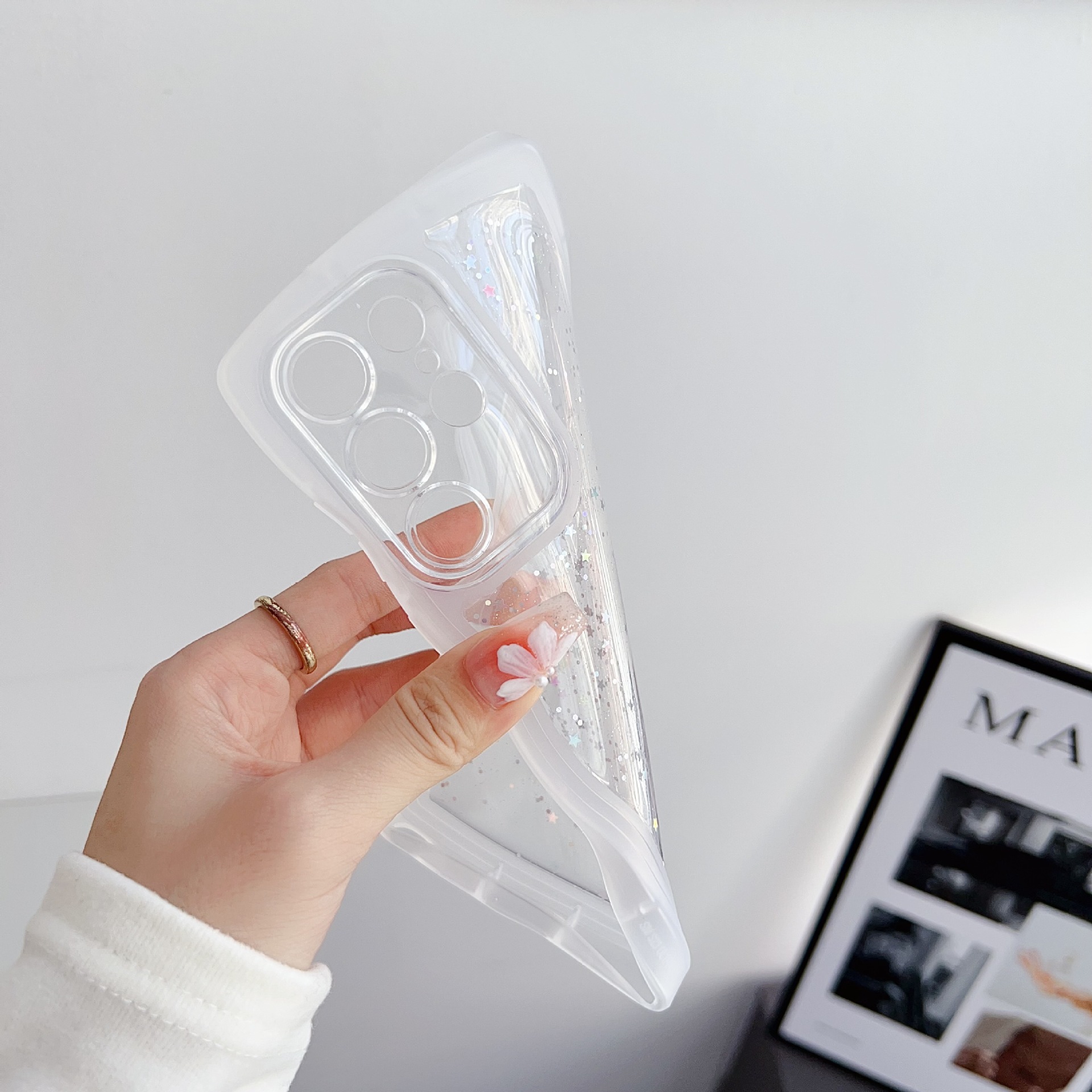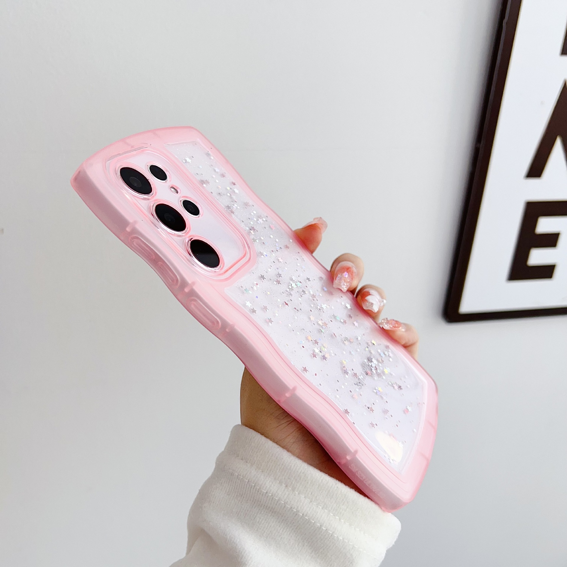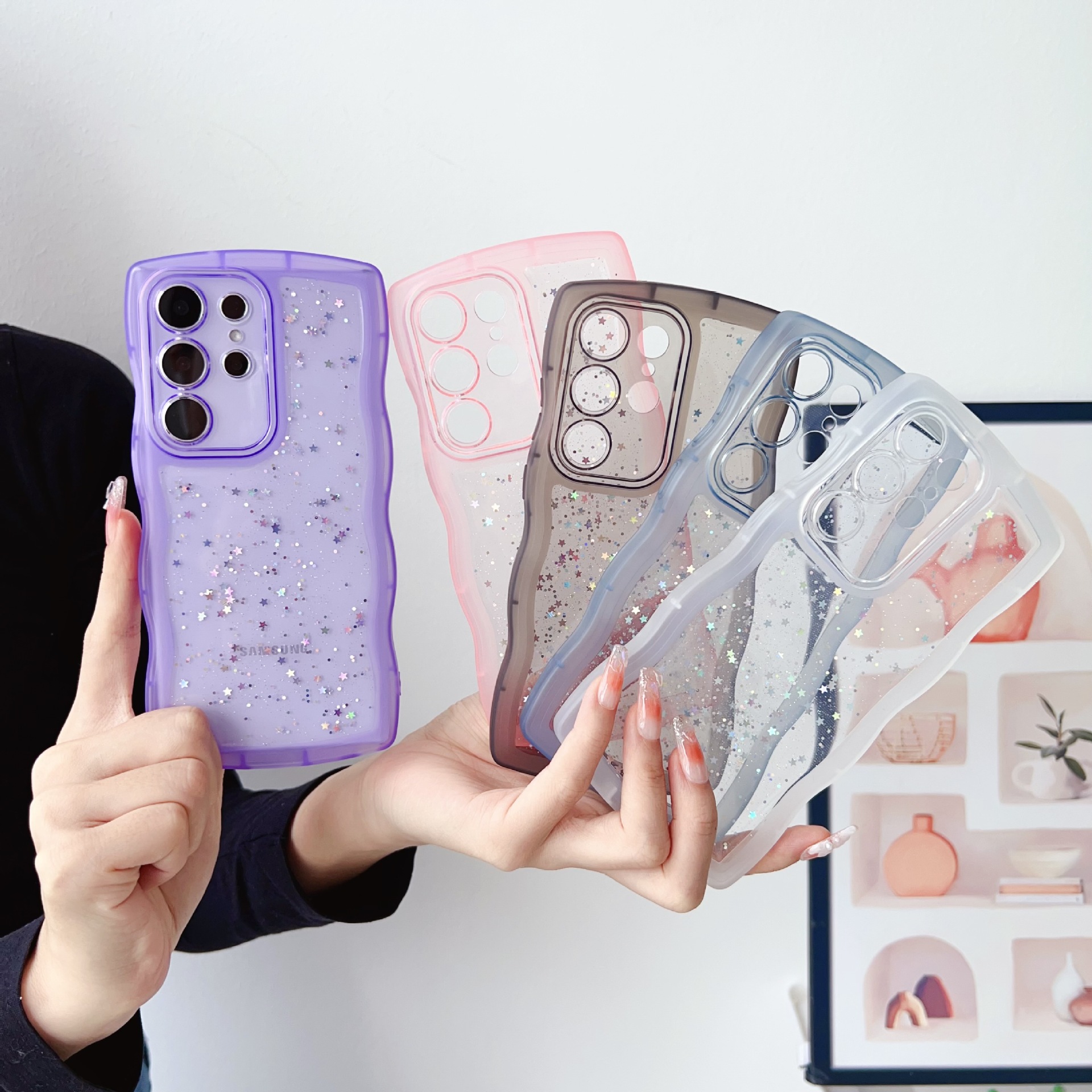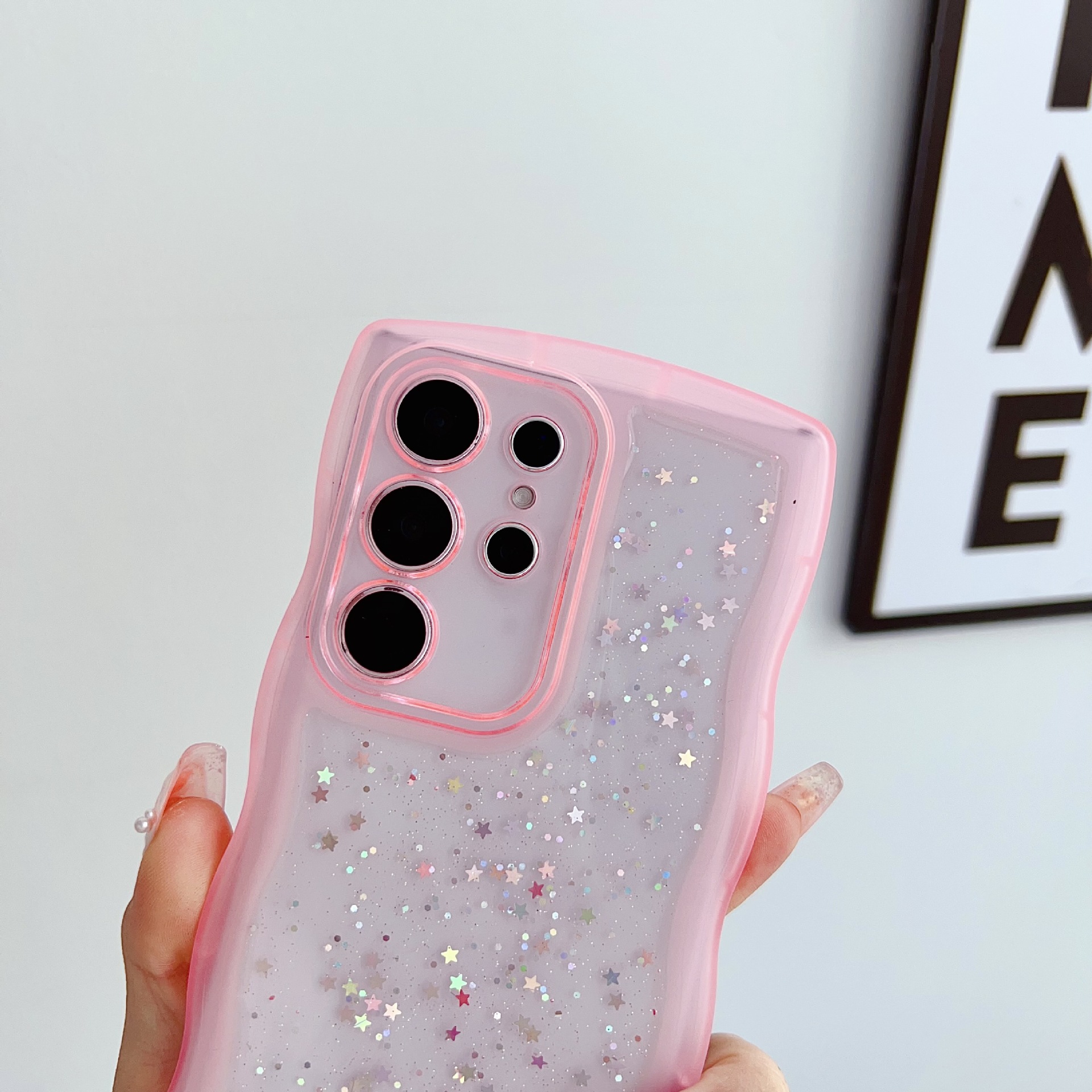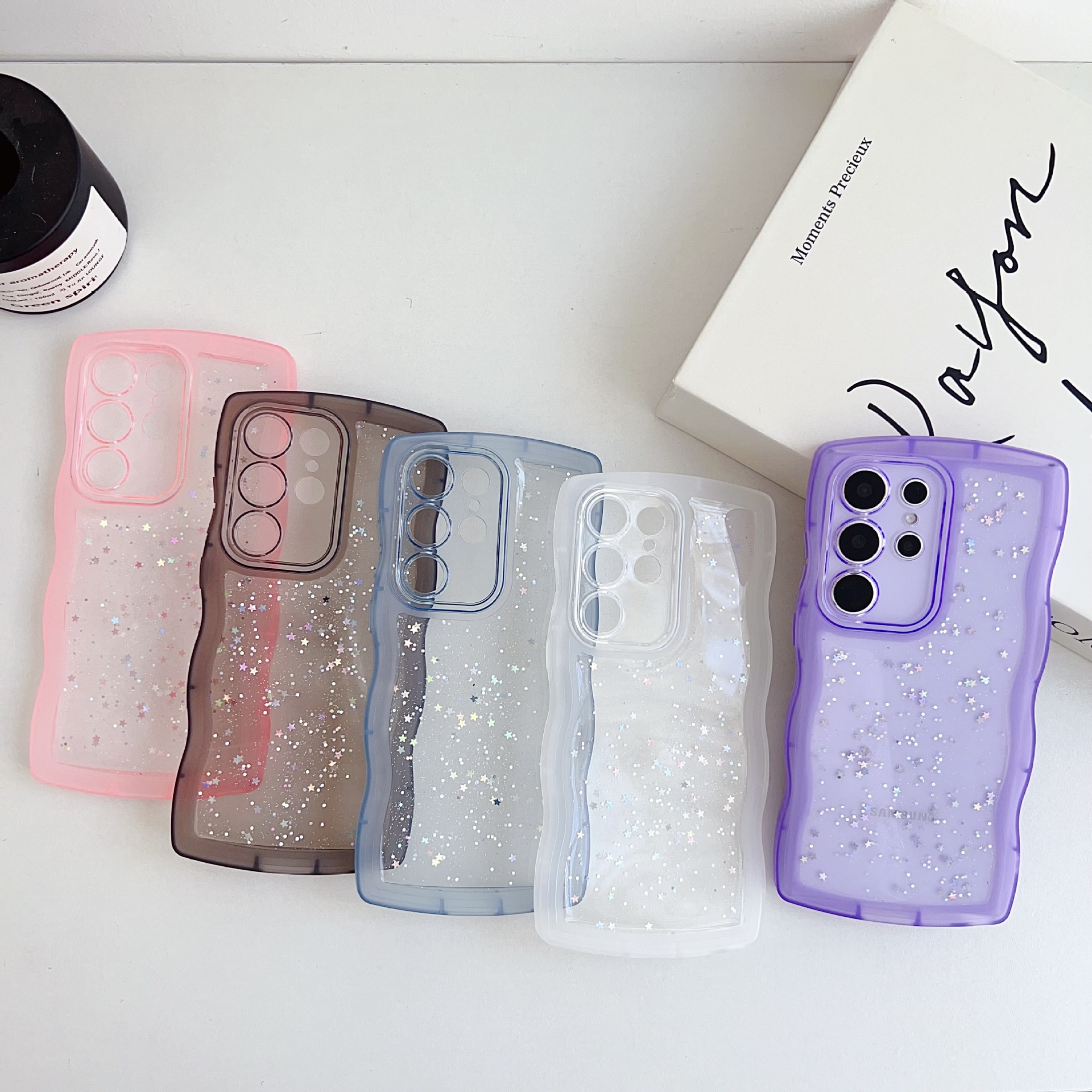 適用三星S24手機殼A16滴膠星星閃粉A55透明波浪紋S25Ultra保護軟