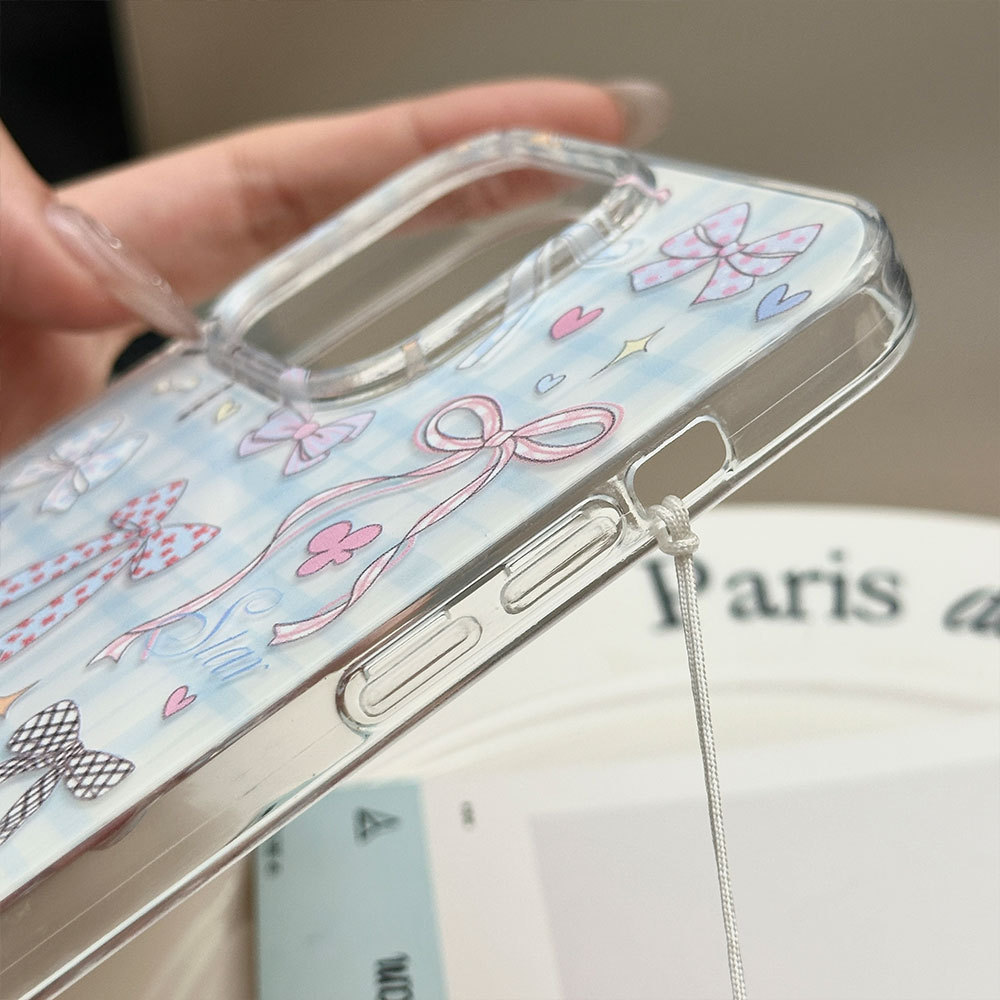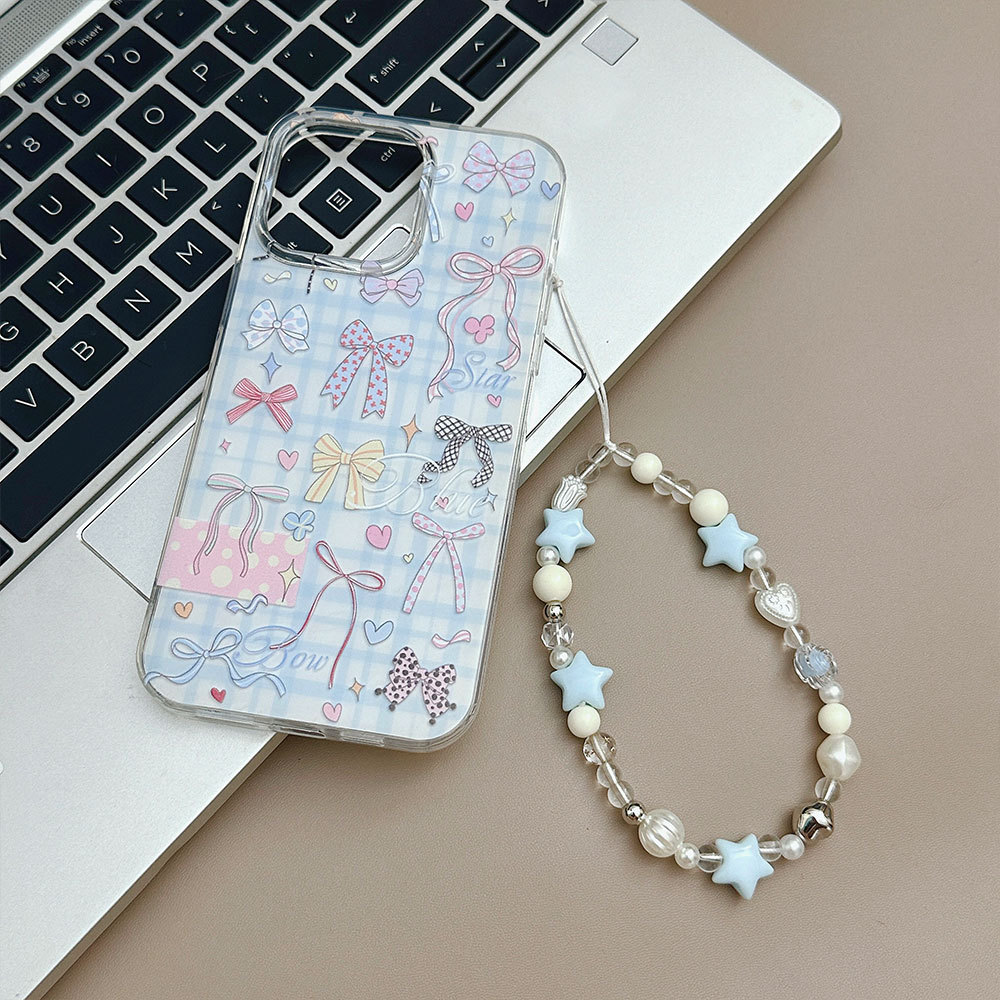 夏日蝴蝶結適用蘋果16promax手機殼掛繩15pro串珠diy小清新保護套