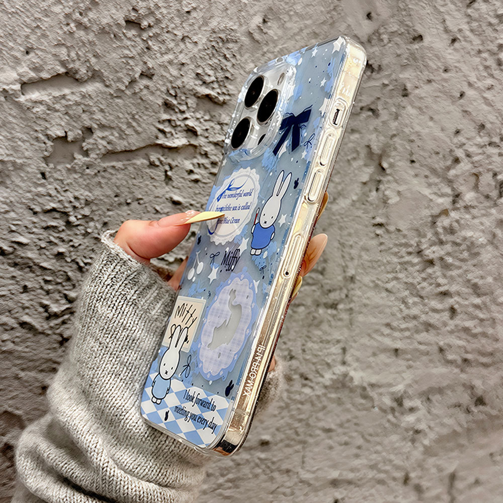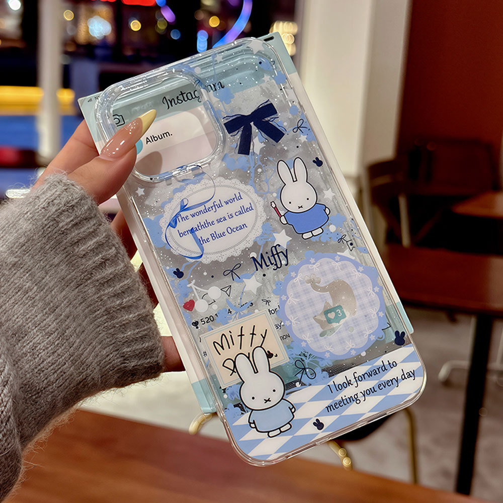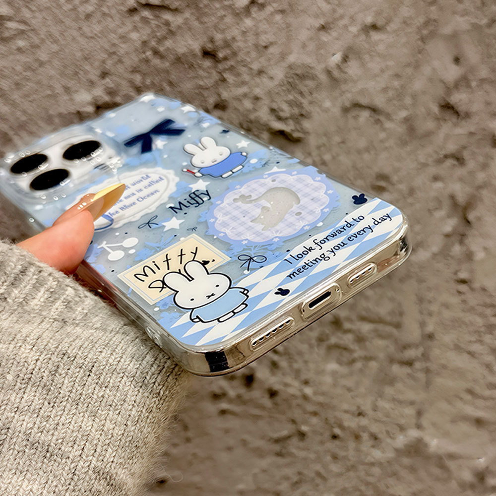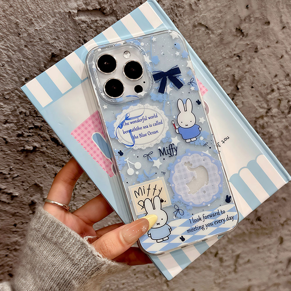 適用蘋果16pro可愛米菲13卡通手機殼大孔透明iphone15閃粉保護套