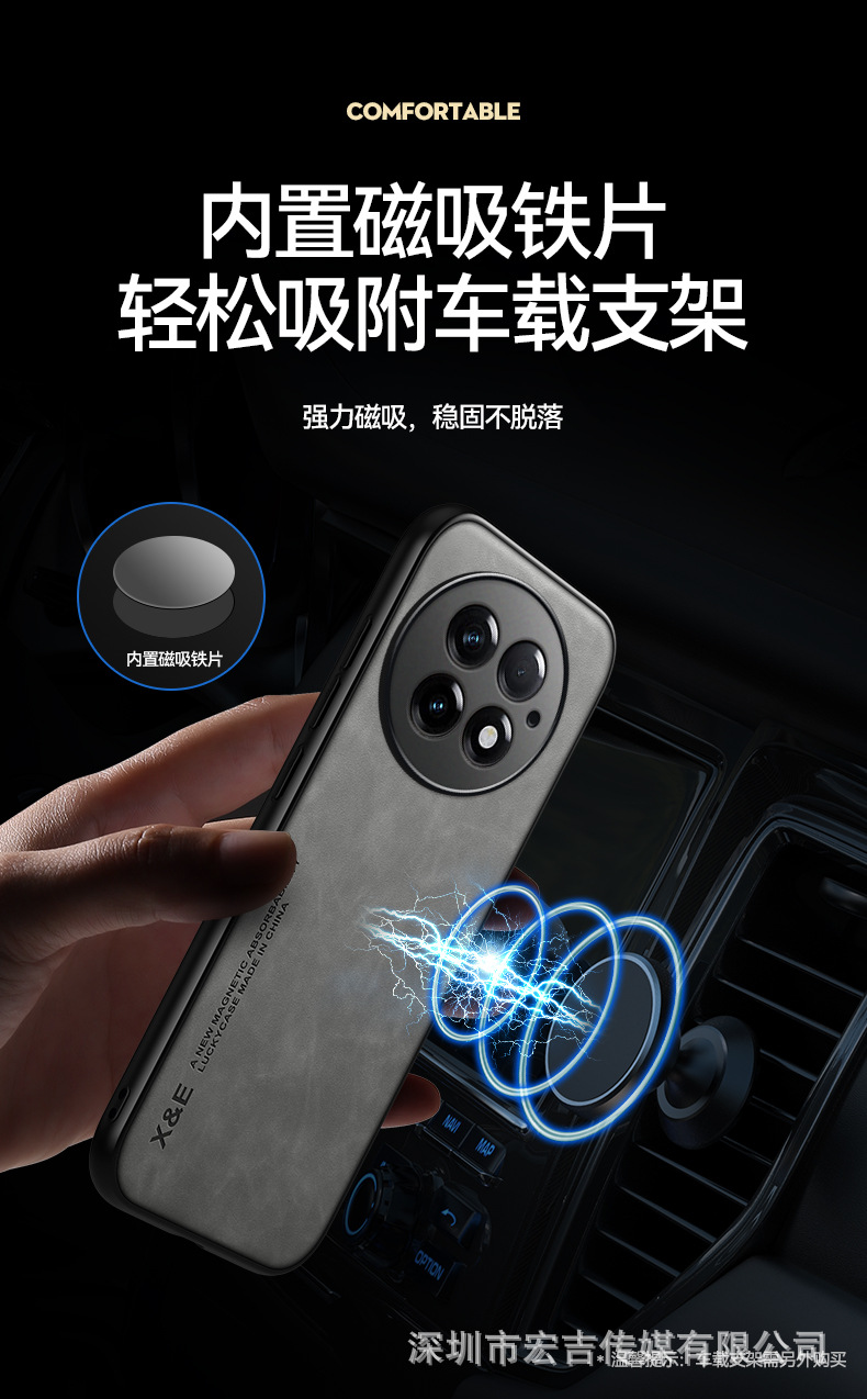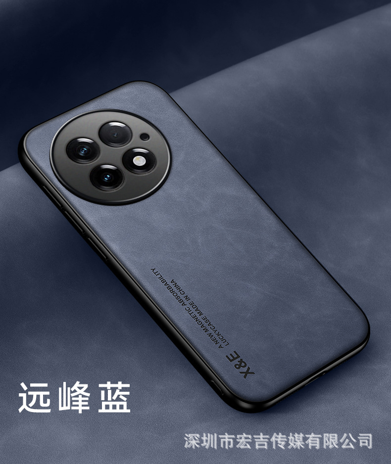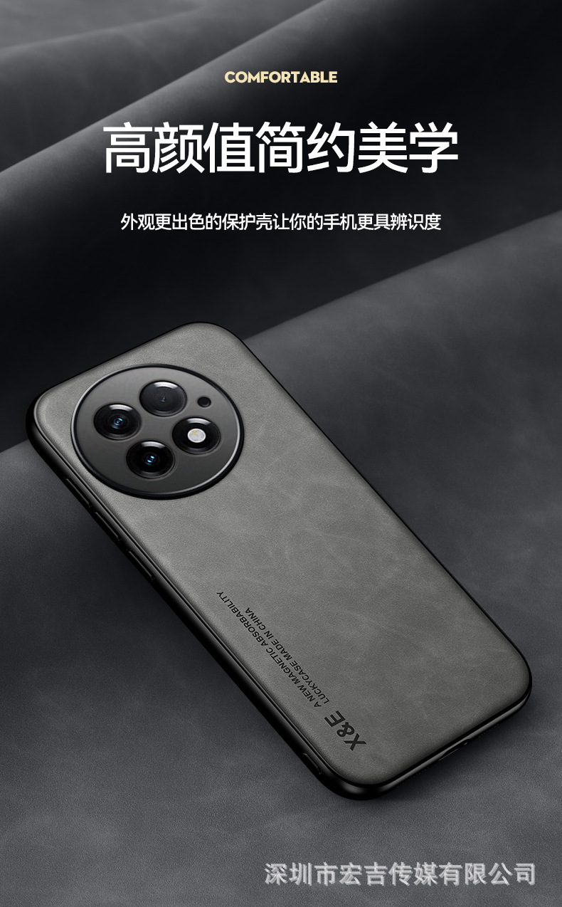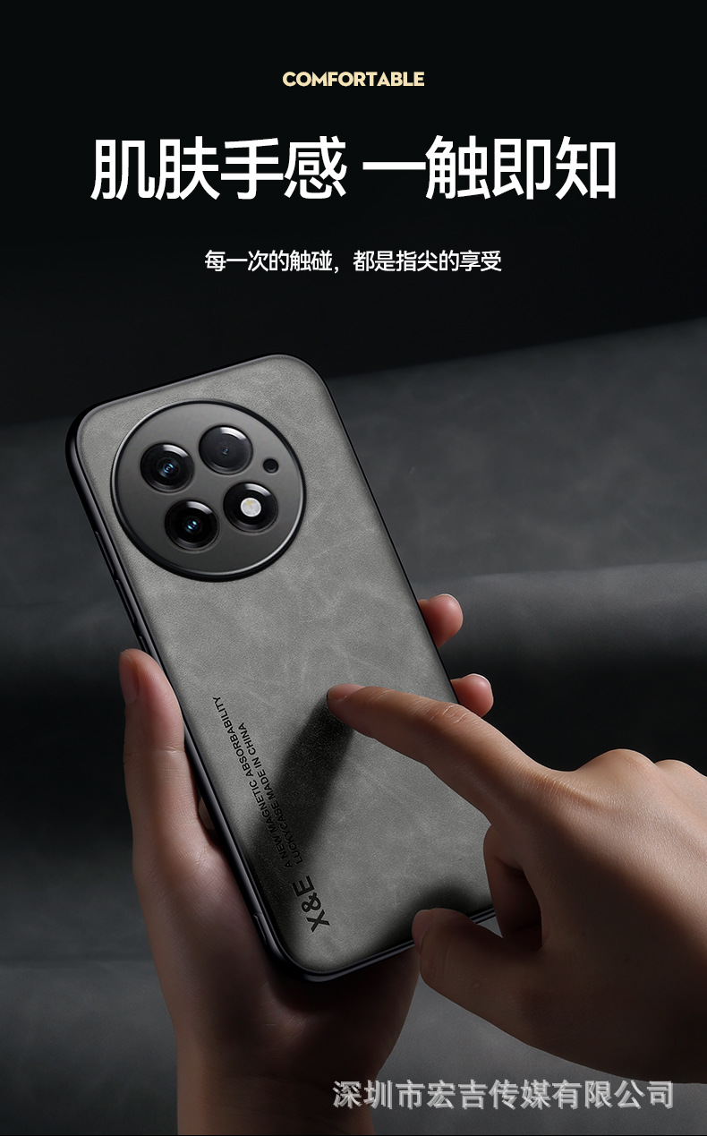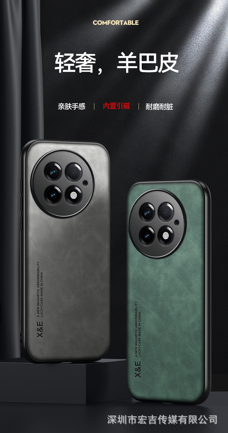 適用1+15輕奢膚感羊巴皮手機殼一加ACE6鏡頭全包13車用磁吸保護套
